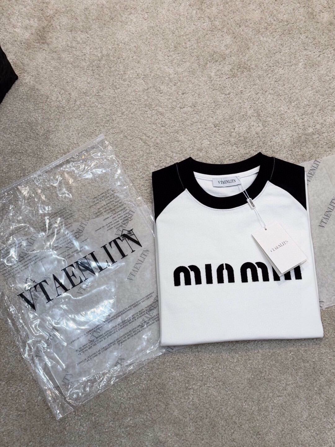 這款衣服是AAAAA 1:1 質量(非常棒). 使用了和原版一模一樣的材料. 商標部分也保持了和繆繆/Miu Miu一樣. 圖片拍攝是實物衣服拍攝, 您所收到的實物保證和我們圖片一模一樣.