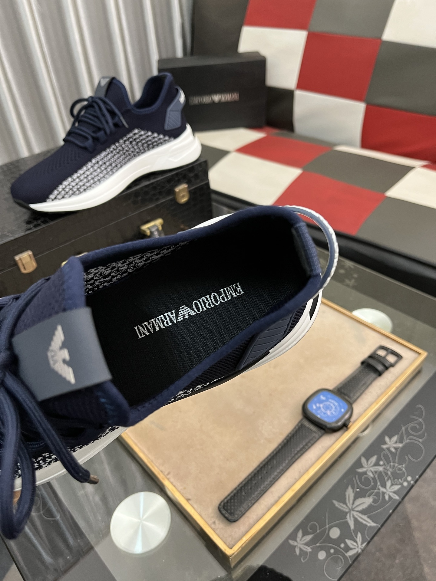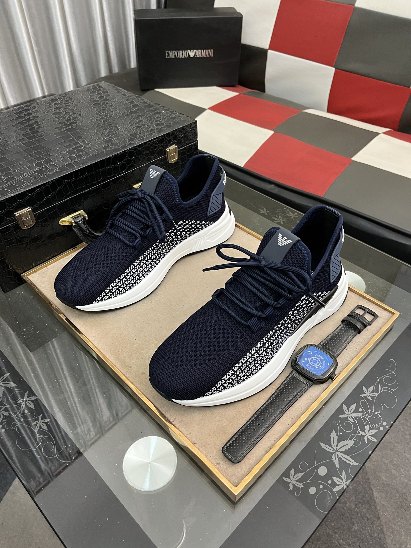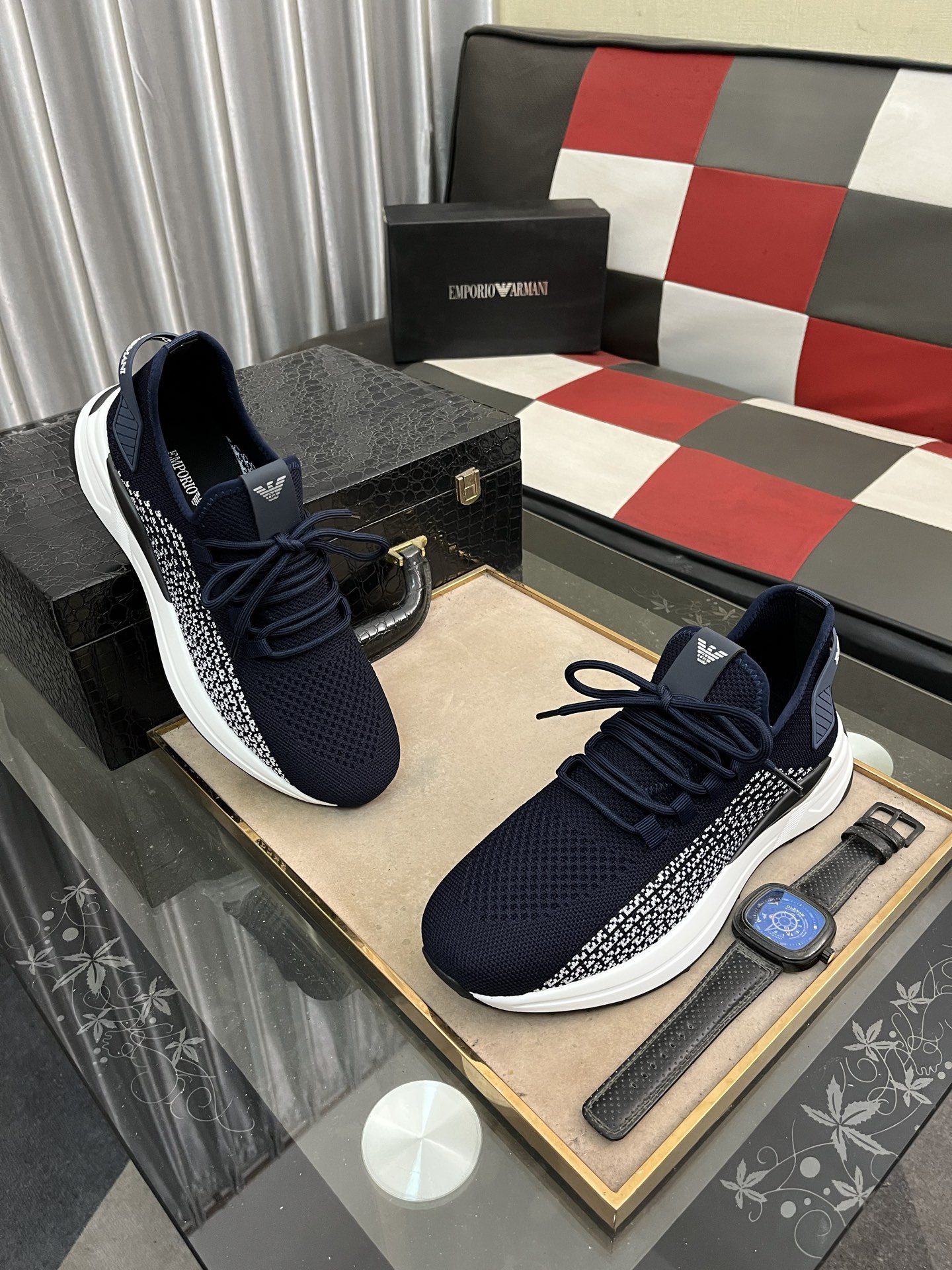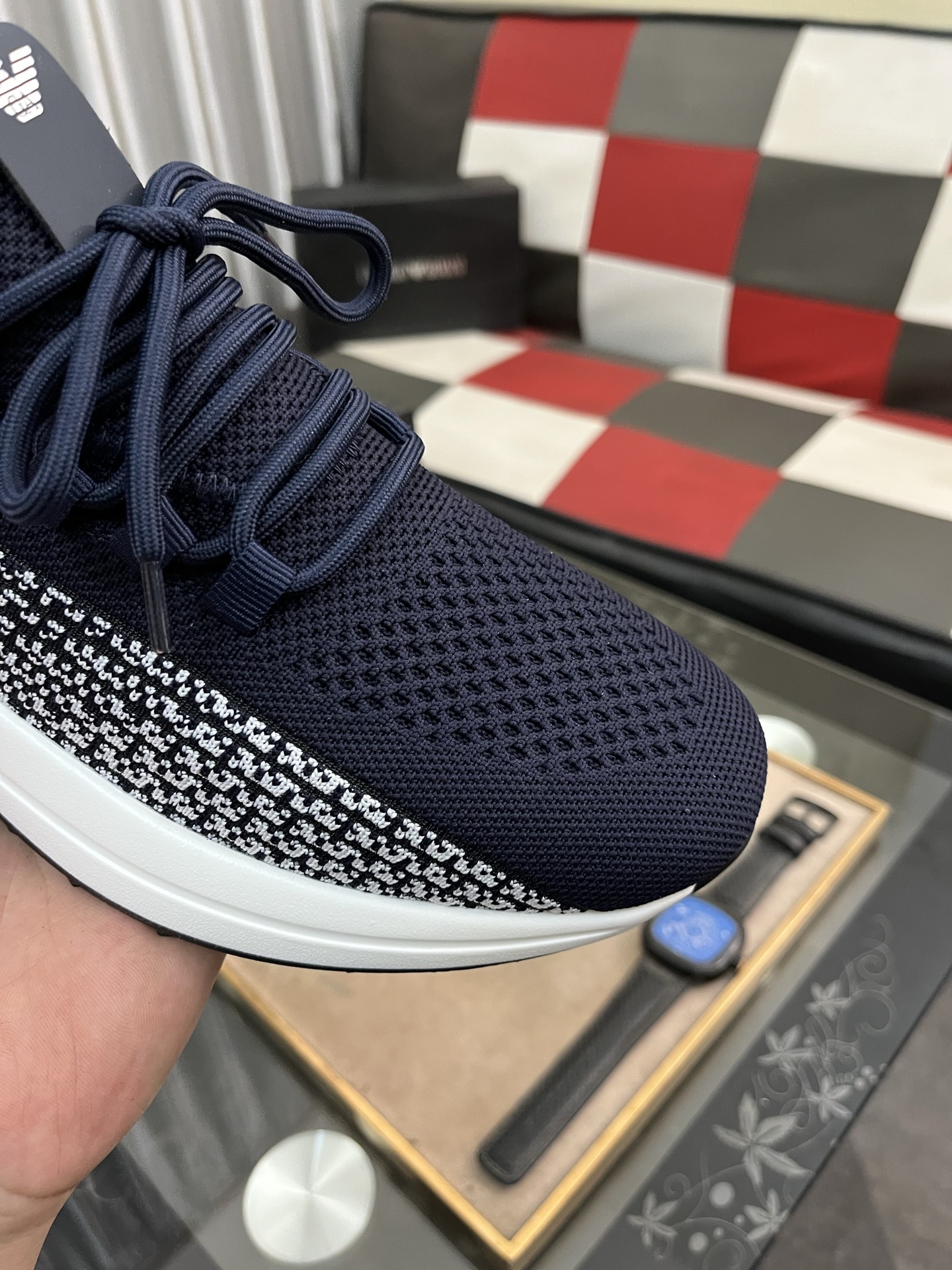 這款鞋子是AAAAA 1:1 質量(非常棒). 使用了和原版一模一樣的材料. 商標部分也保持了和阿瑪尼/Armani一樣. 圖片拍攝是實物鞋子拍攝, 您所收到的實物保證和我們圖片一模一樣.