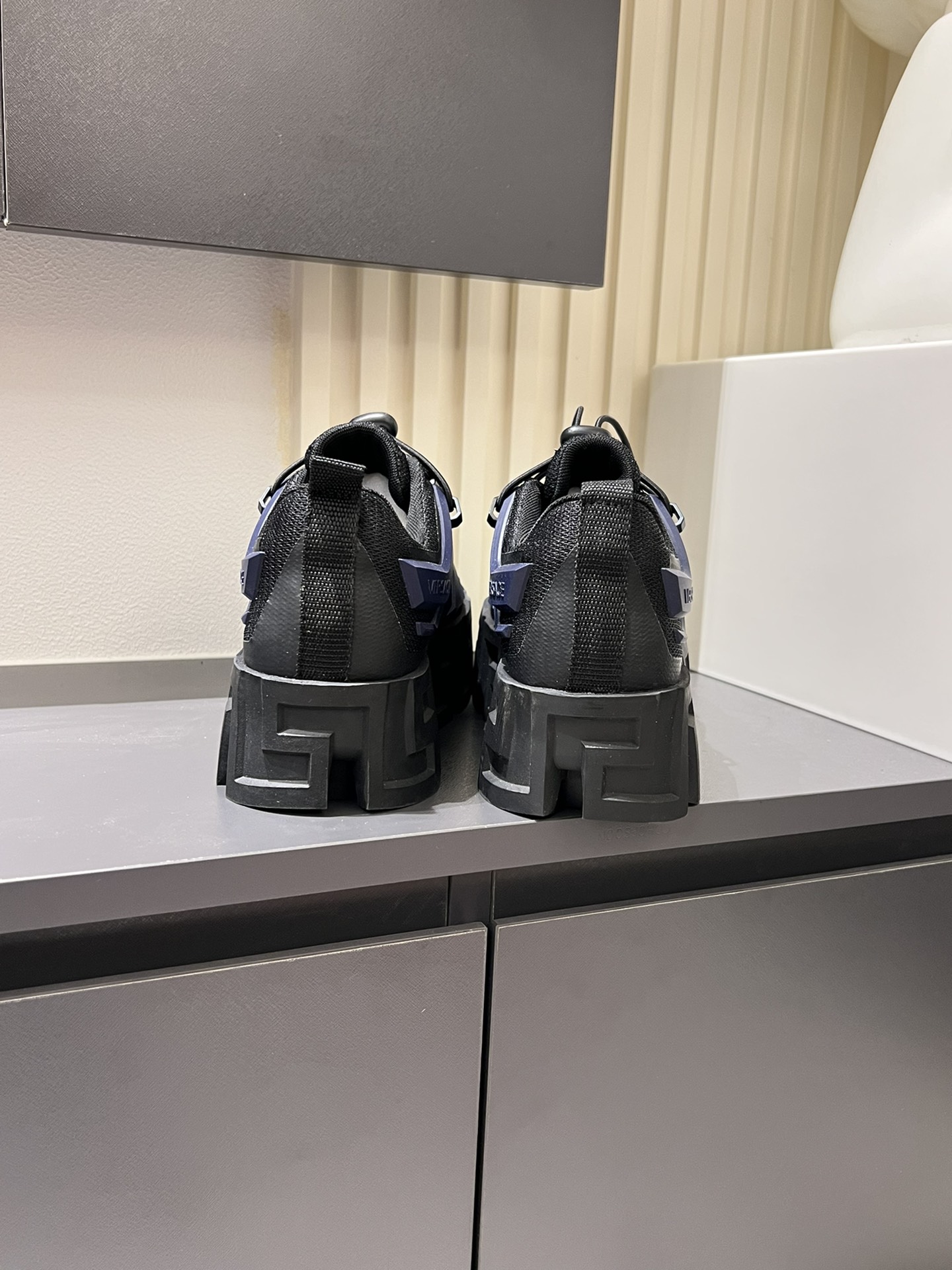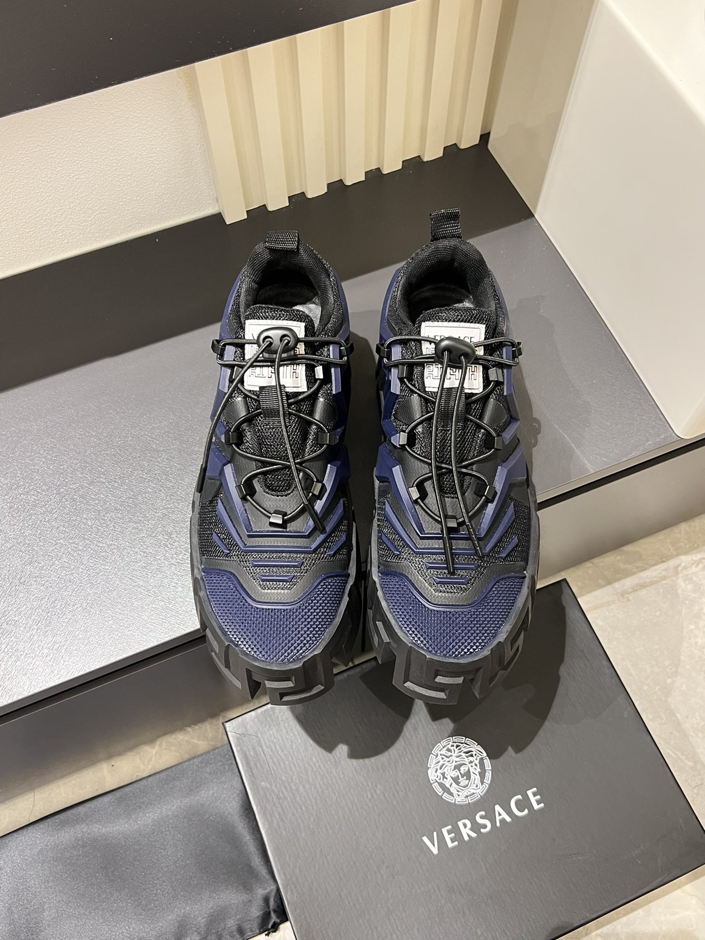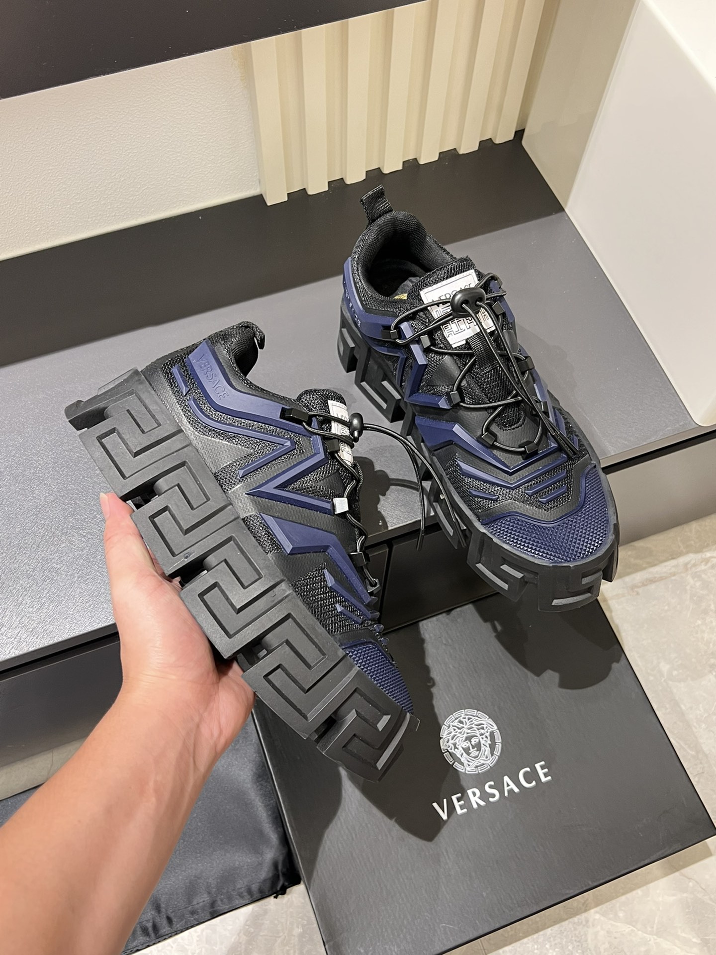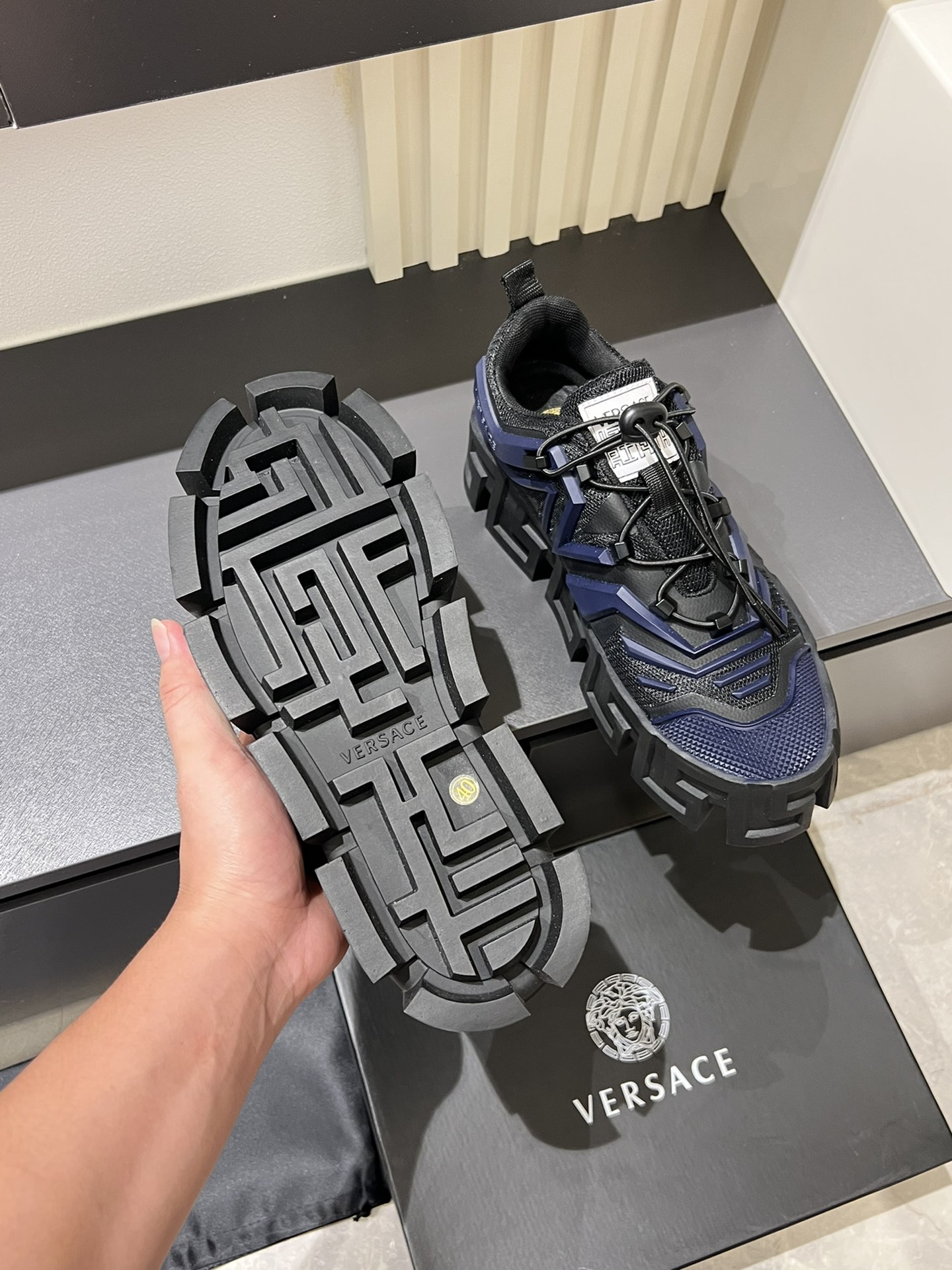這款鞋子是AAAAA 1:1 質量(非常棒). 使用了和原版一模一樣的材料. 商標部分也保持了和范思哲/Versace一樣. 圖片拍攝是實物鞋子拍攝, 您所收到的實物保證和我們圖片一模一樣.