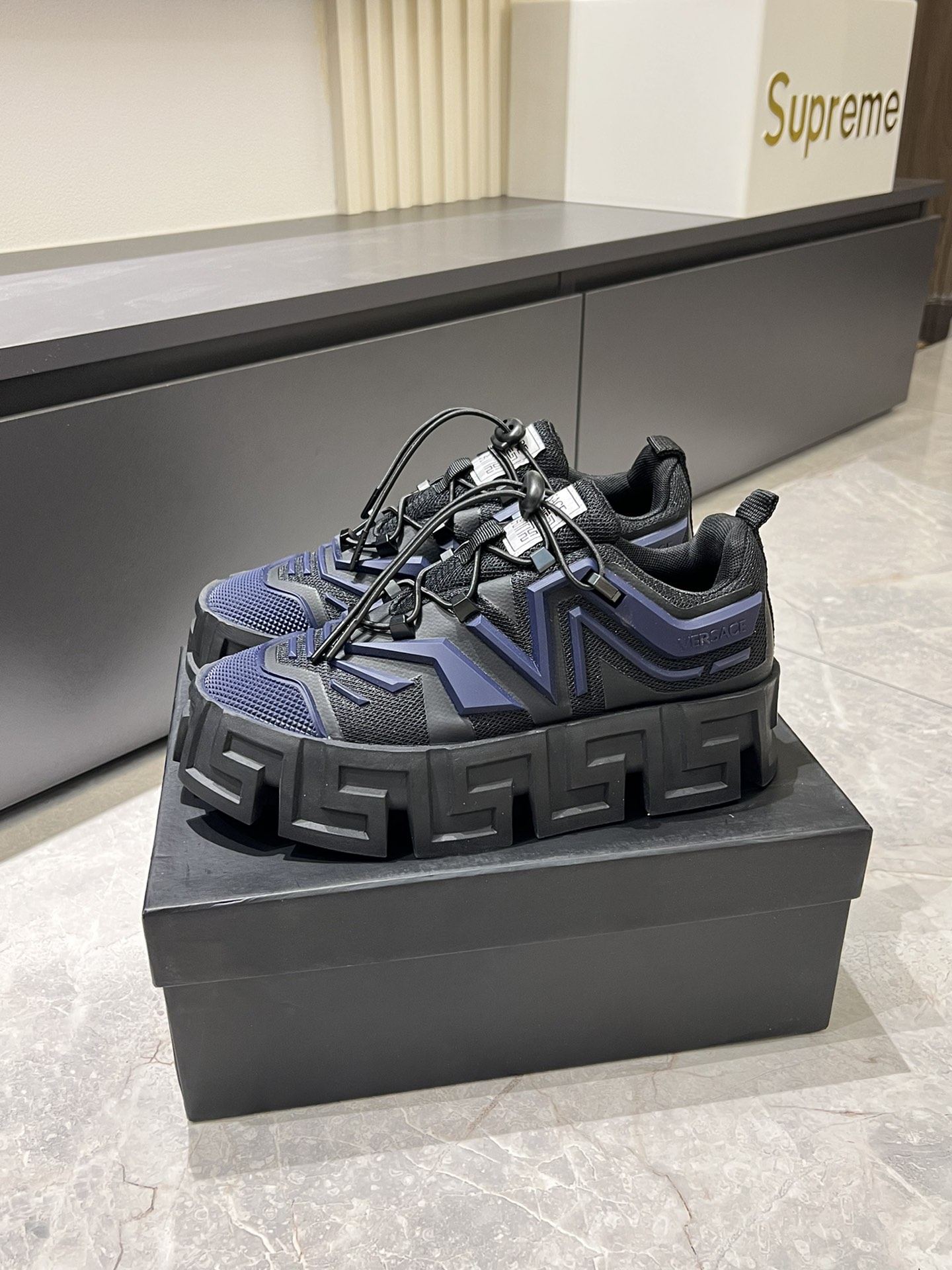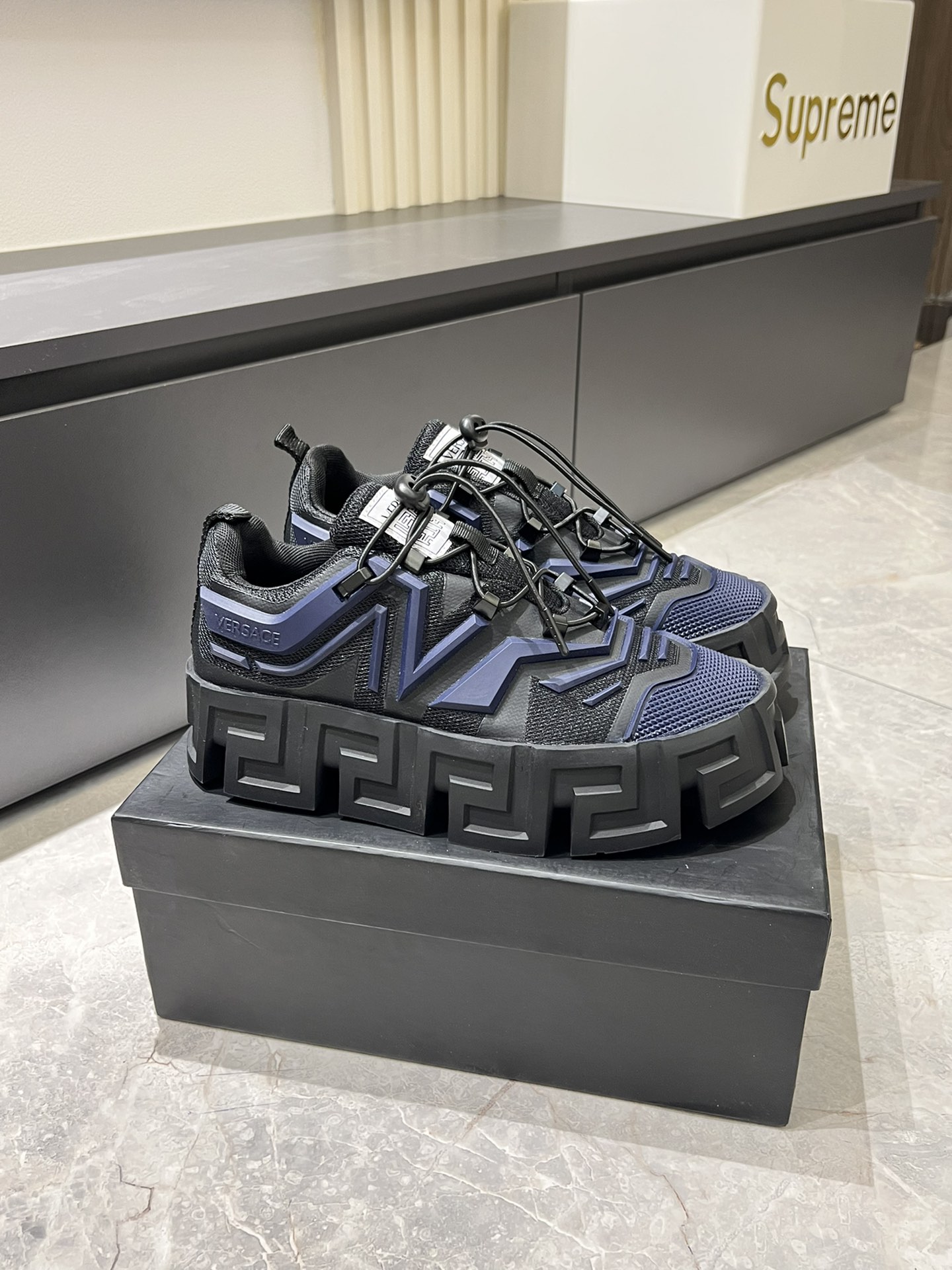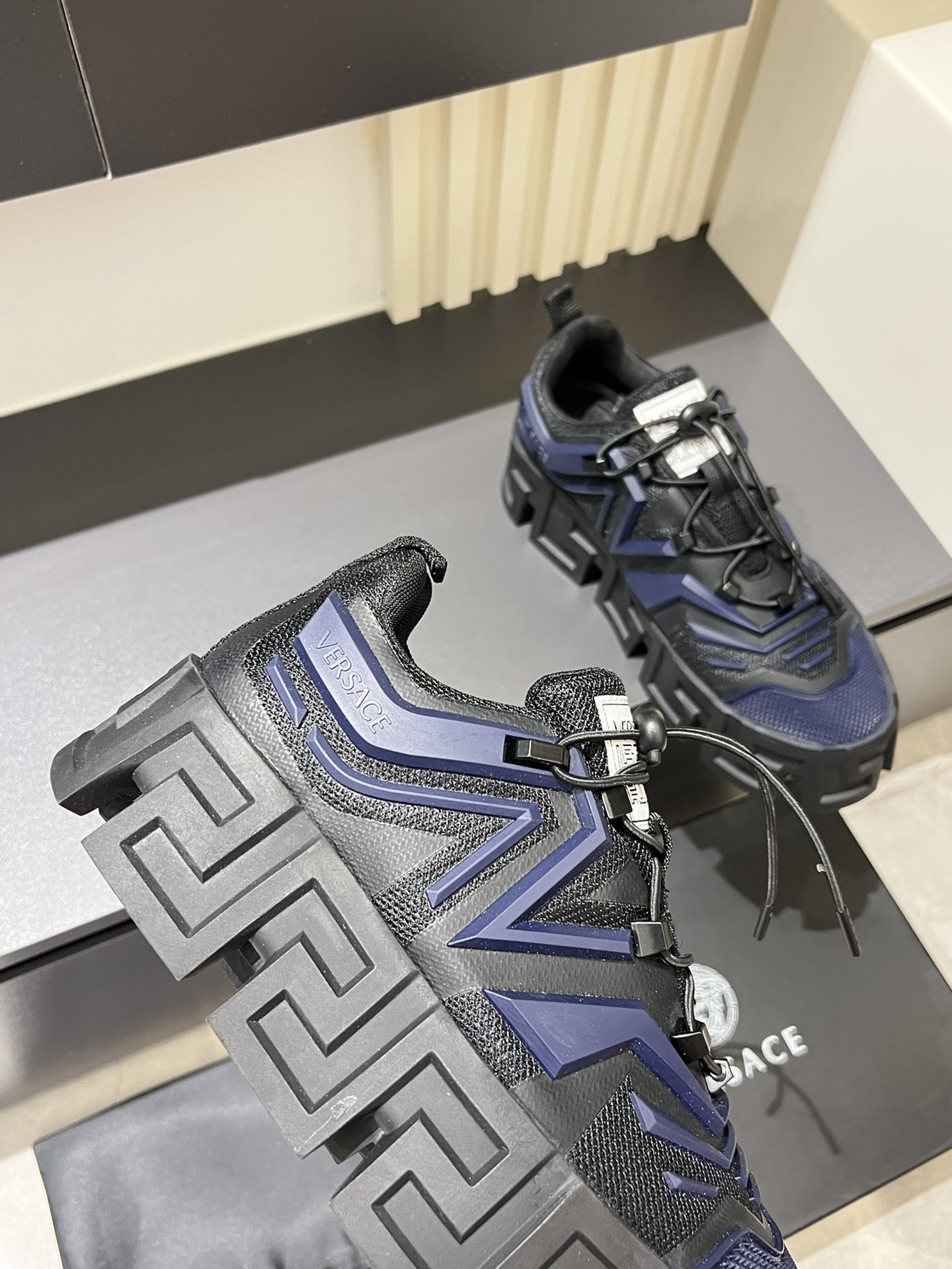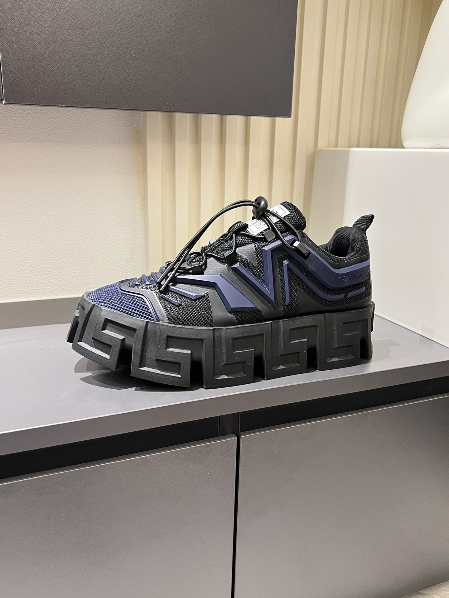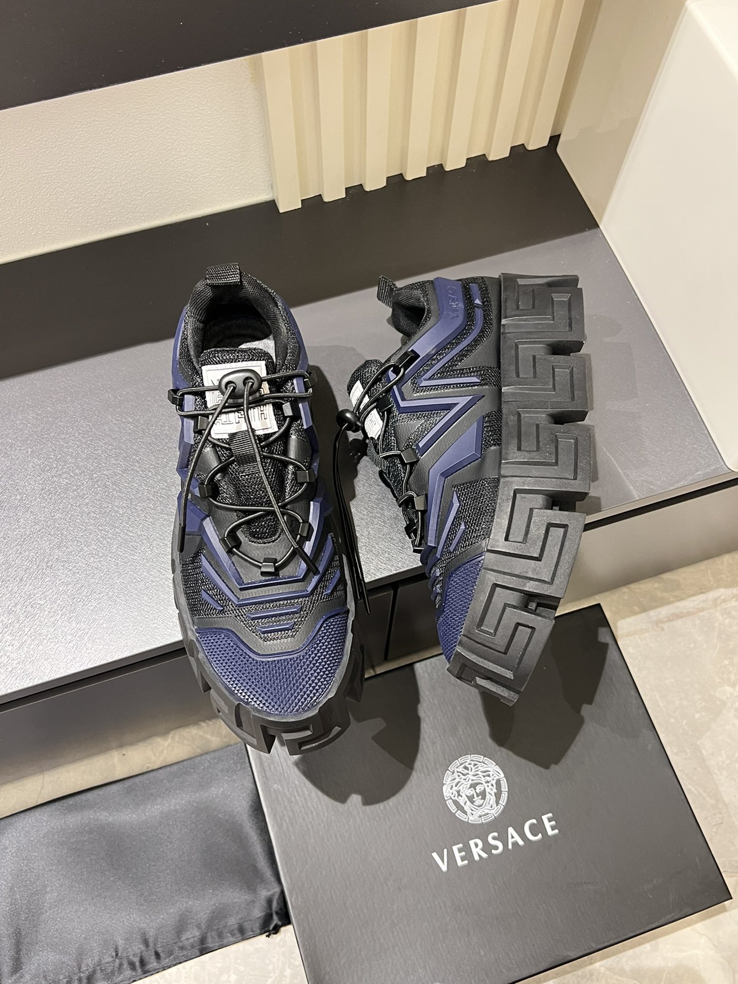 這款鞋子是AAAAA 1:1 質量(非常棒). 使用了和原版一模一樣的材料. 商標部分也保持了和范思哲/Versace一樣. 圖片拍攝是實物鞋子拍攝, 您所收到的實物保證和我們圖片一模一樣.