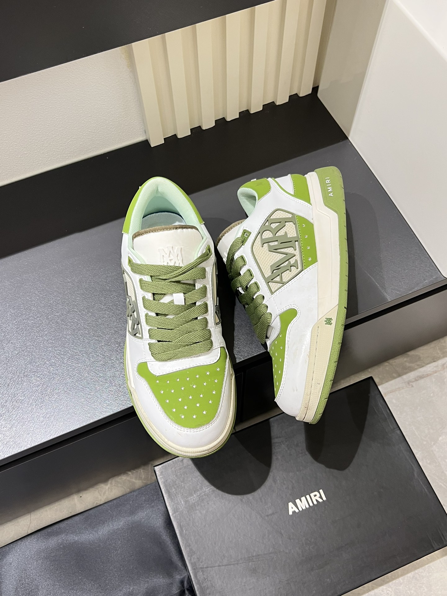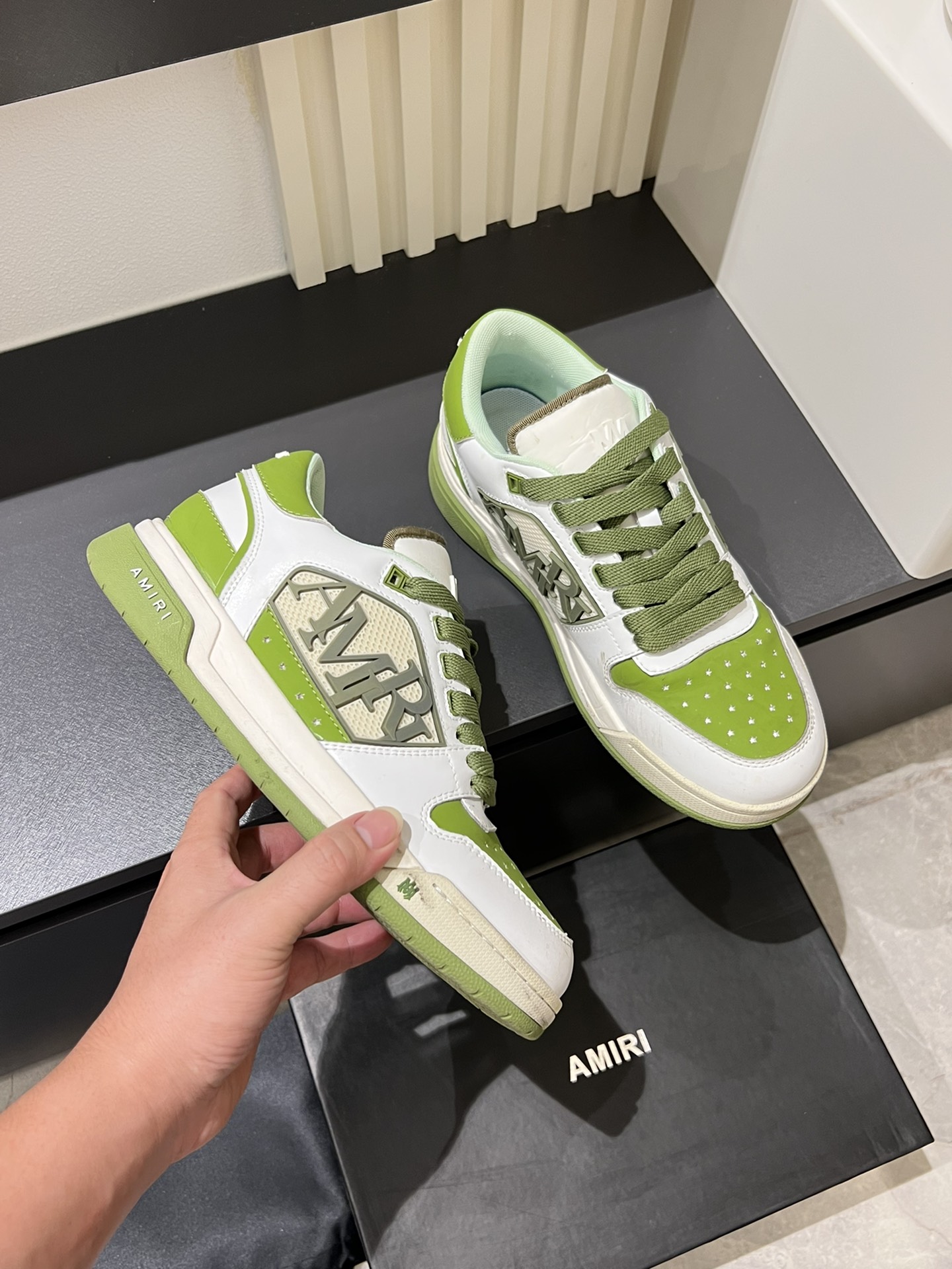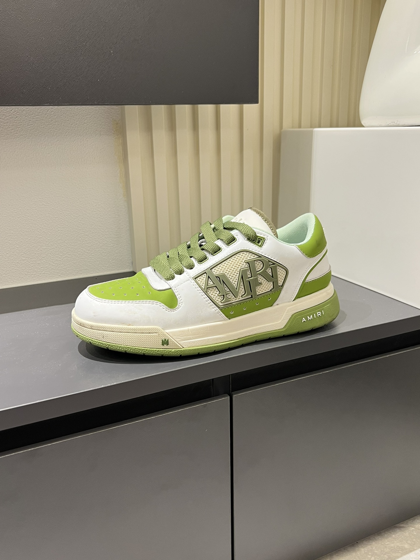 這款鞋子是AAAAA 1:1 質量(非常棒). 使用了和原版一模一樣的材料. 商標部分也保持了和AMIRI一樣. 圖片拍攝是實物鞋子拍攝, 您所收到的實物保證和我們圖片一模一樣.