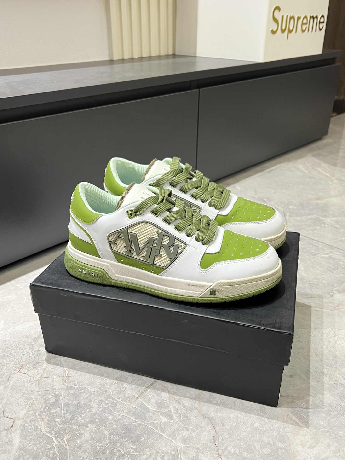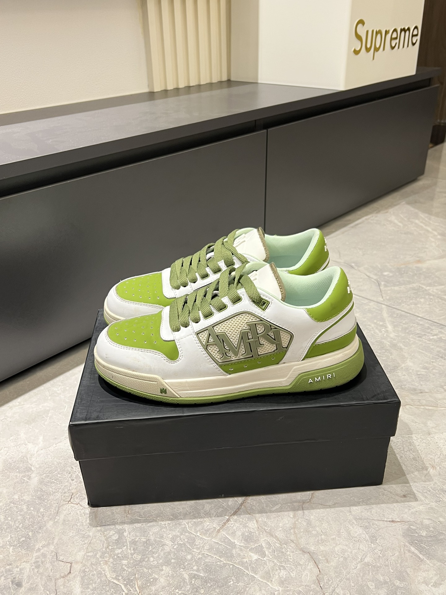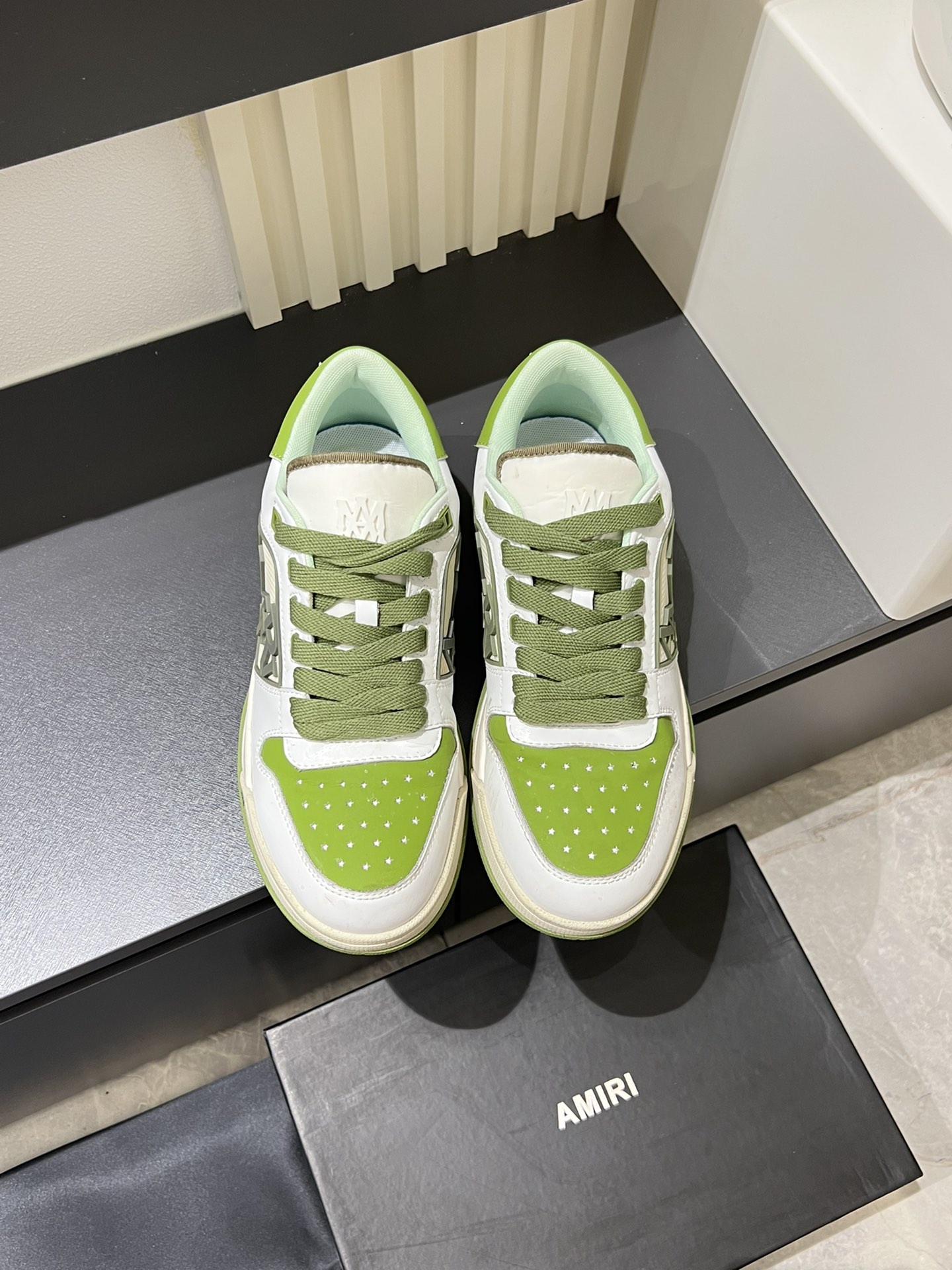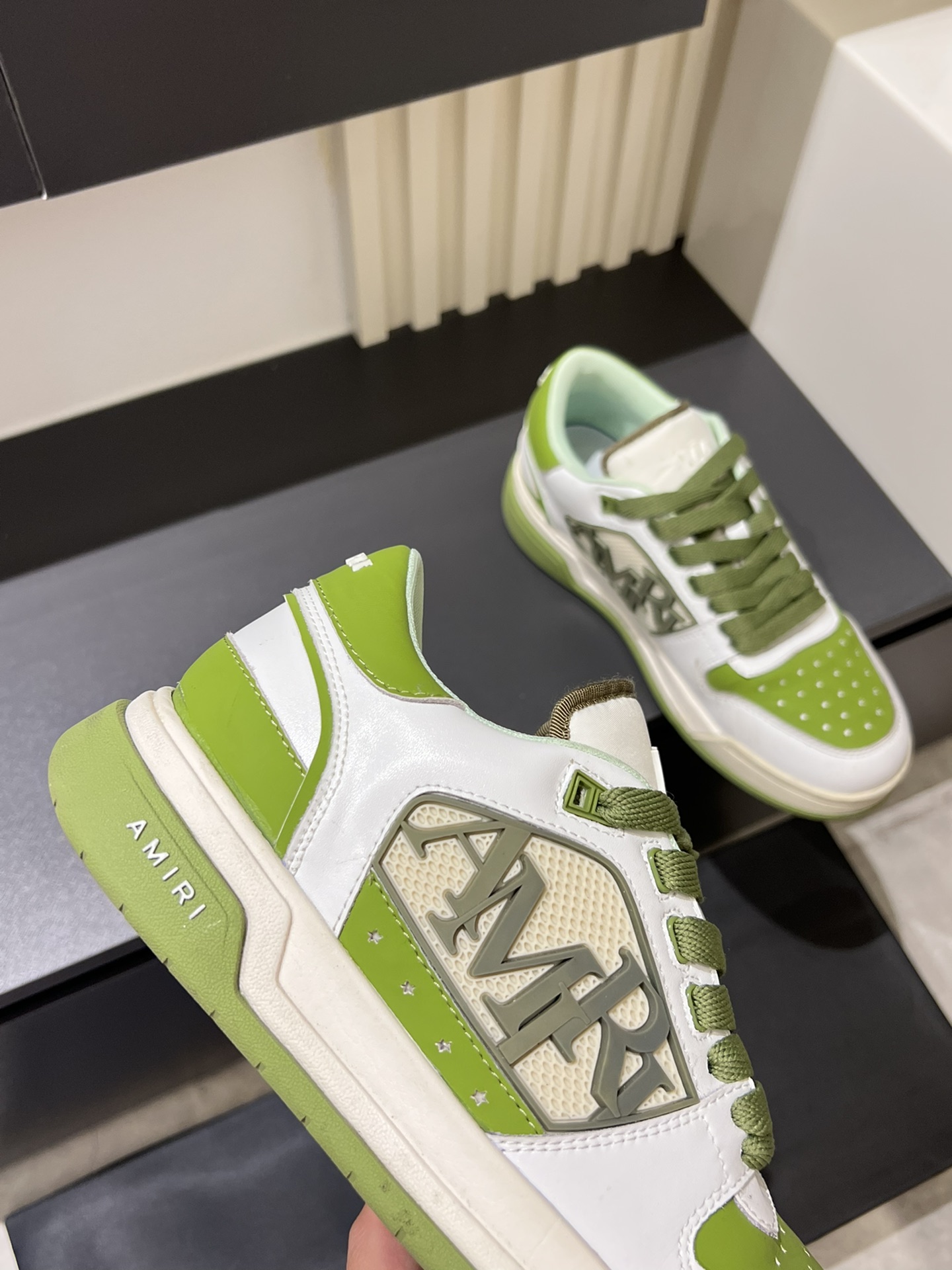 這款鞋子是AAAAA 1:1 質量(非常棒). 使用了和原版一模一樣的材料. 商標部分也保持了和AMIRI一樣. 圖片拍攝是實物鞋子拍攝, 您所收到的實物保證和我們圖片一模一樣.