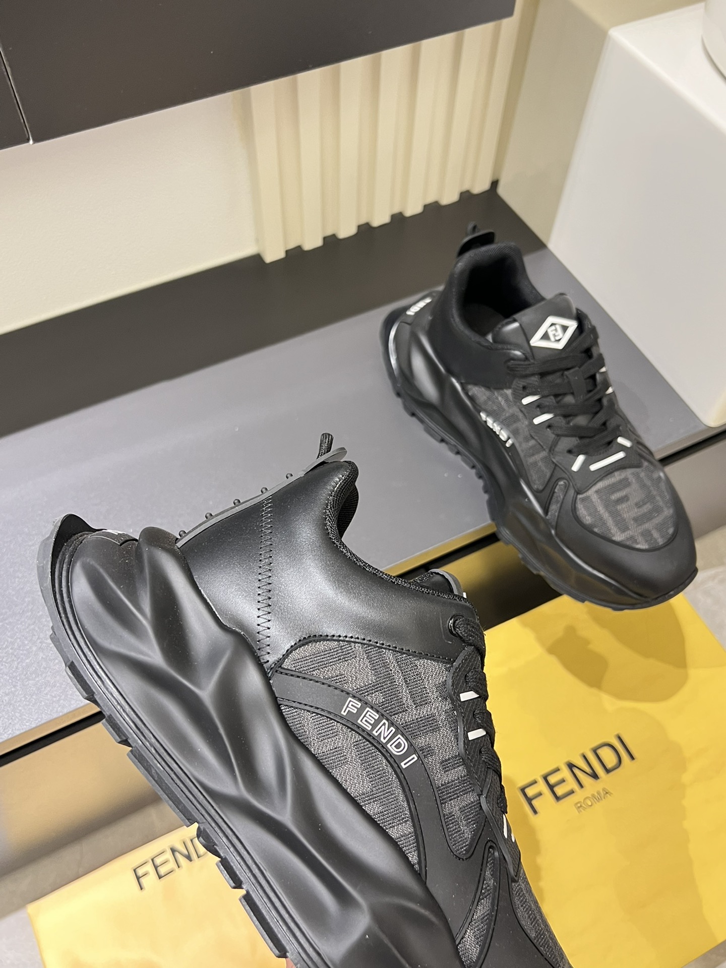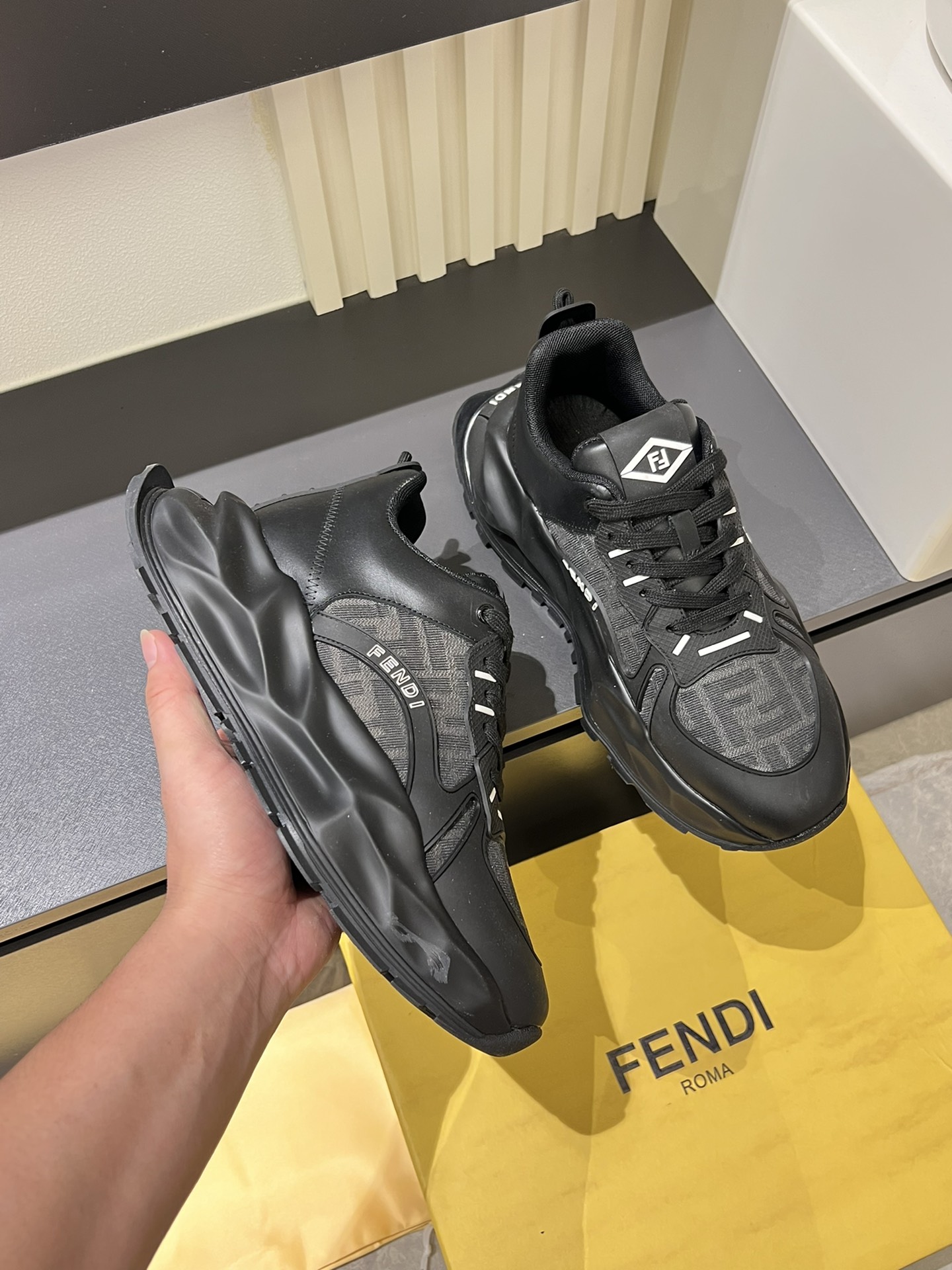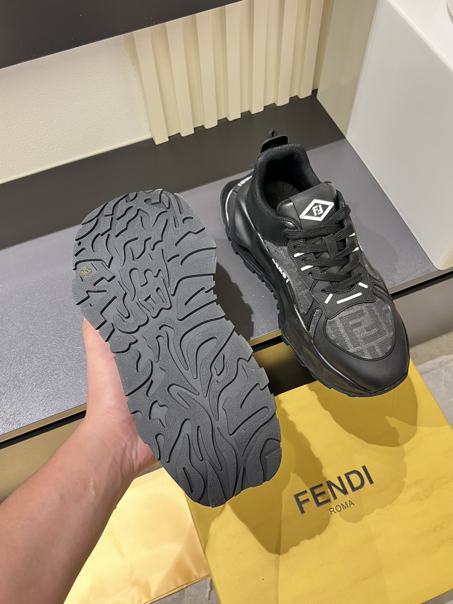 這款鞋子是AAAAA 1:1 質量(非常棒). 使用了和原版一模一樣的材料. 商標部分也保持了和芬迪/Fendi一樣. 圖片拍攝是實物鞋子拍攝, 您所收到的實物保證和我們圖片一模一樣.