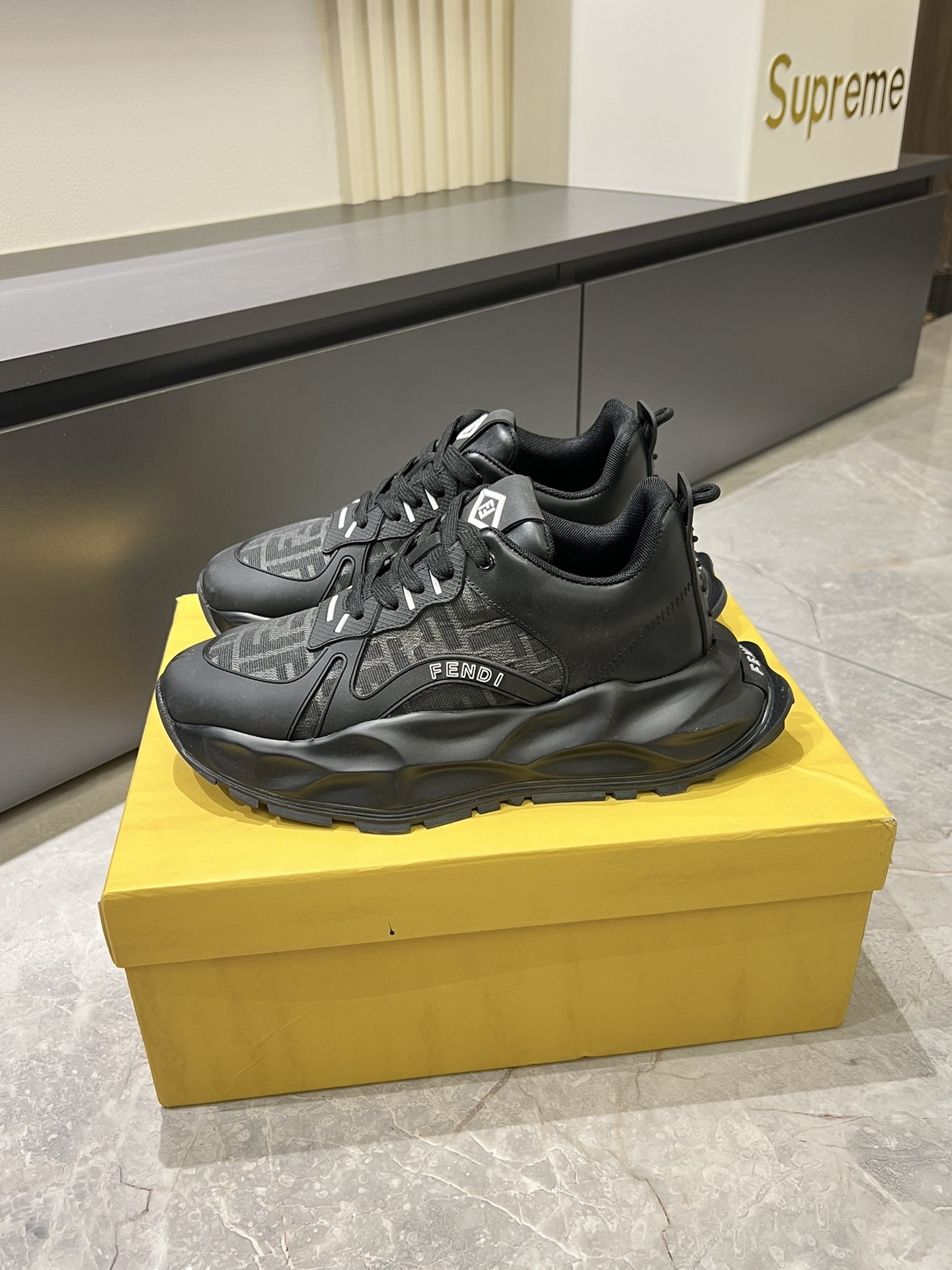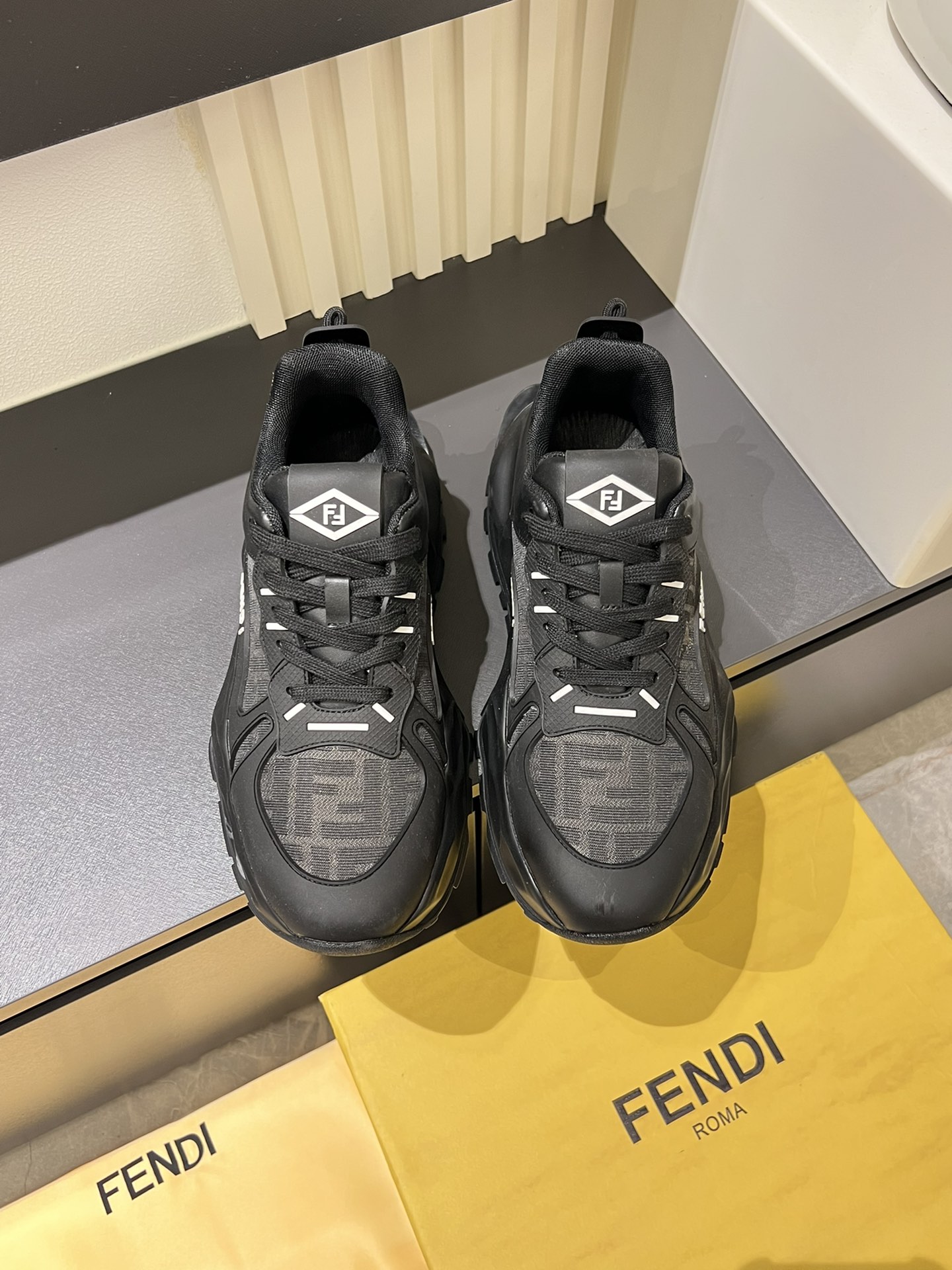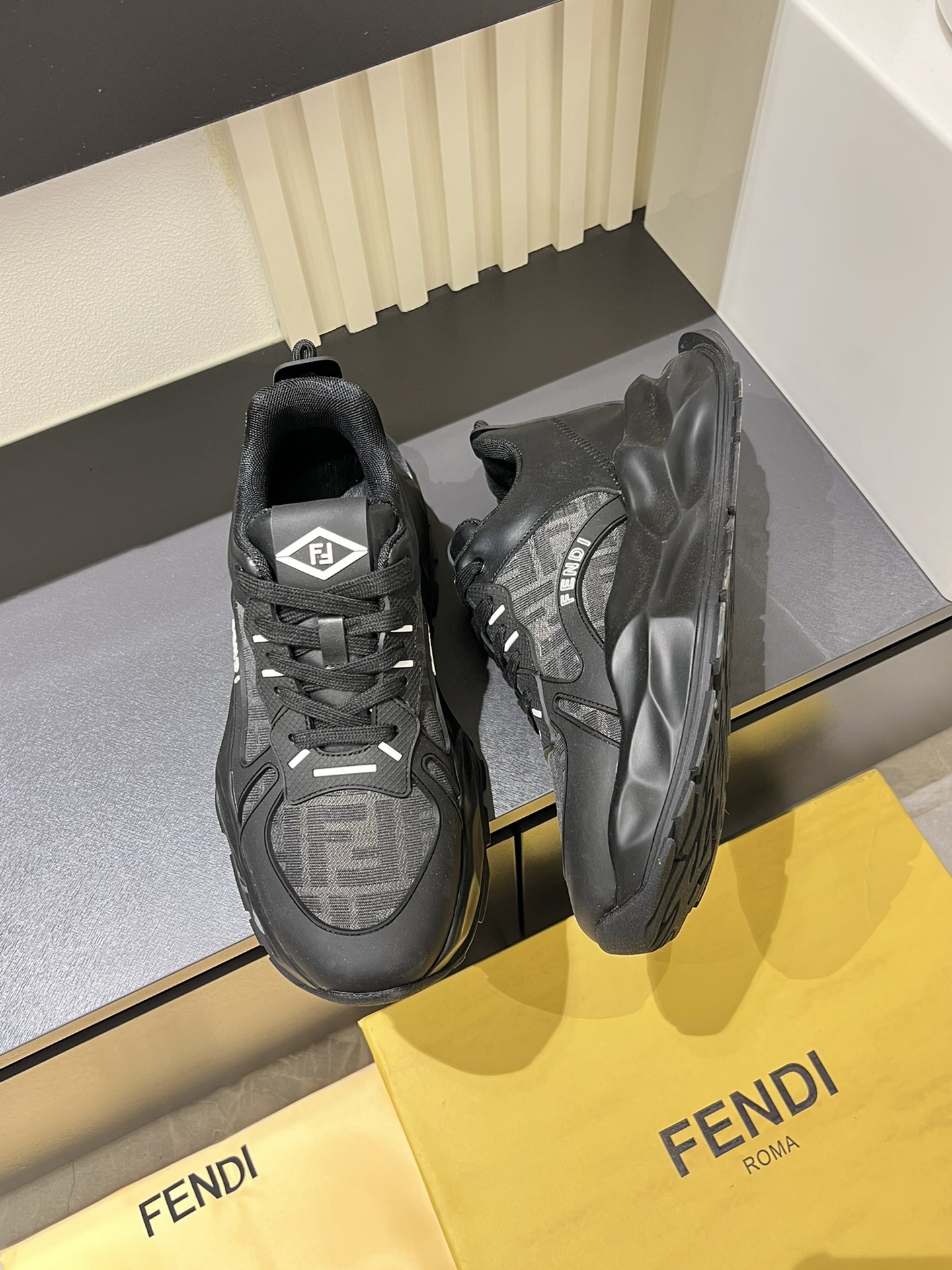 這款鞋子是AAAAA 1:1 質量(非常棒). 使用了和原版一模一樣的材料. 商標部分也保持了和芬迪/Fendi一樣. 圖片拍攝是實物鞋子拍攝, 您所收到的實物保證和我們圖片一模一樣.
