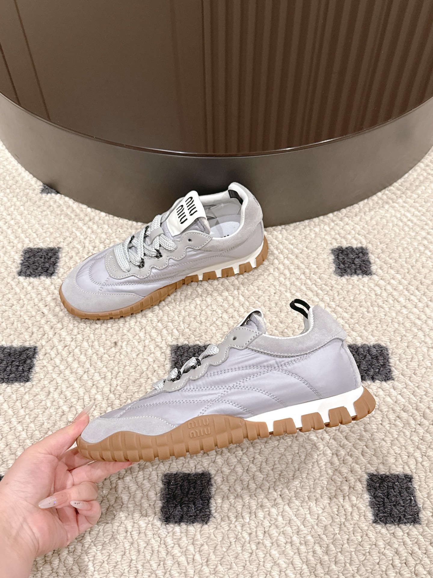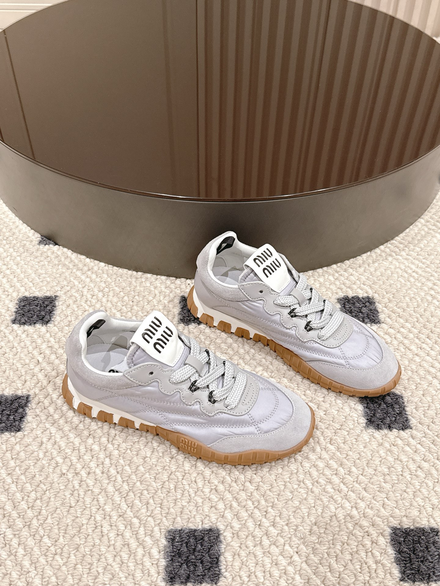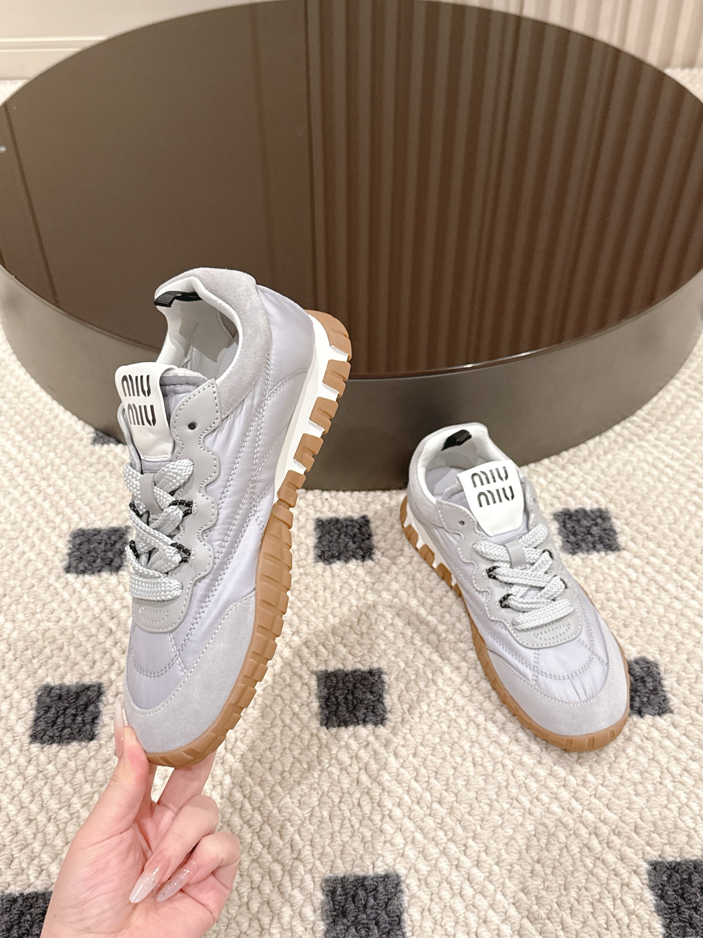 這款鞋子是AAAAA 1:1 質量(非常棒). 使用了和原版一模一樣的材料. 商標部分也保持了和繆繆/Miu Miu一樣. 圖片拍攝是實物鞋子拍攝, 您所收到的實物保證和我們圖片一模一樣.
