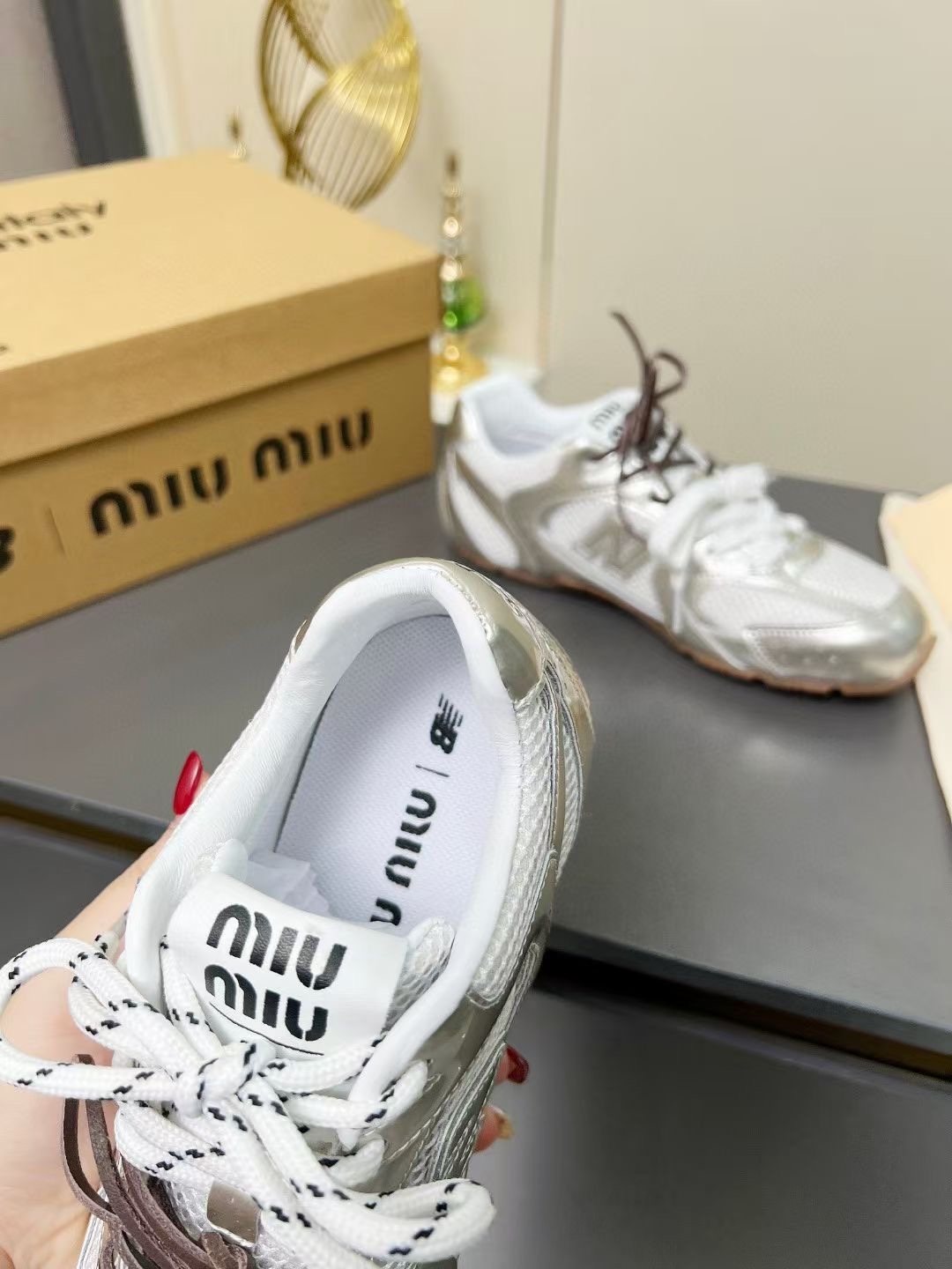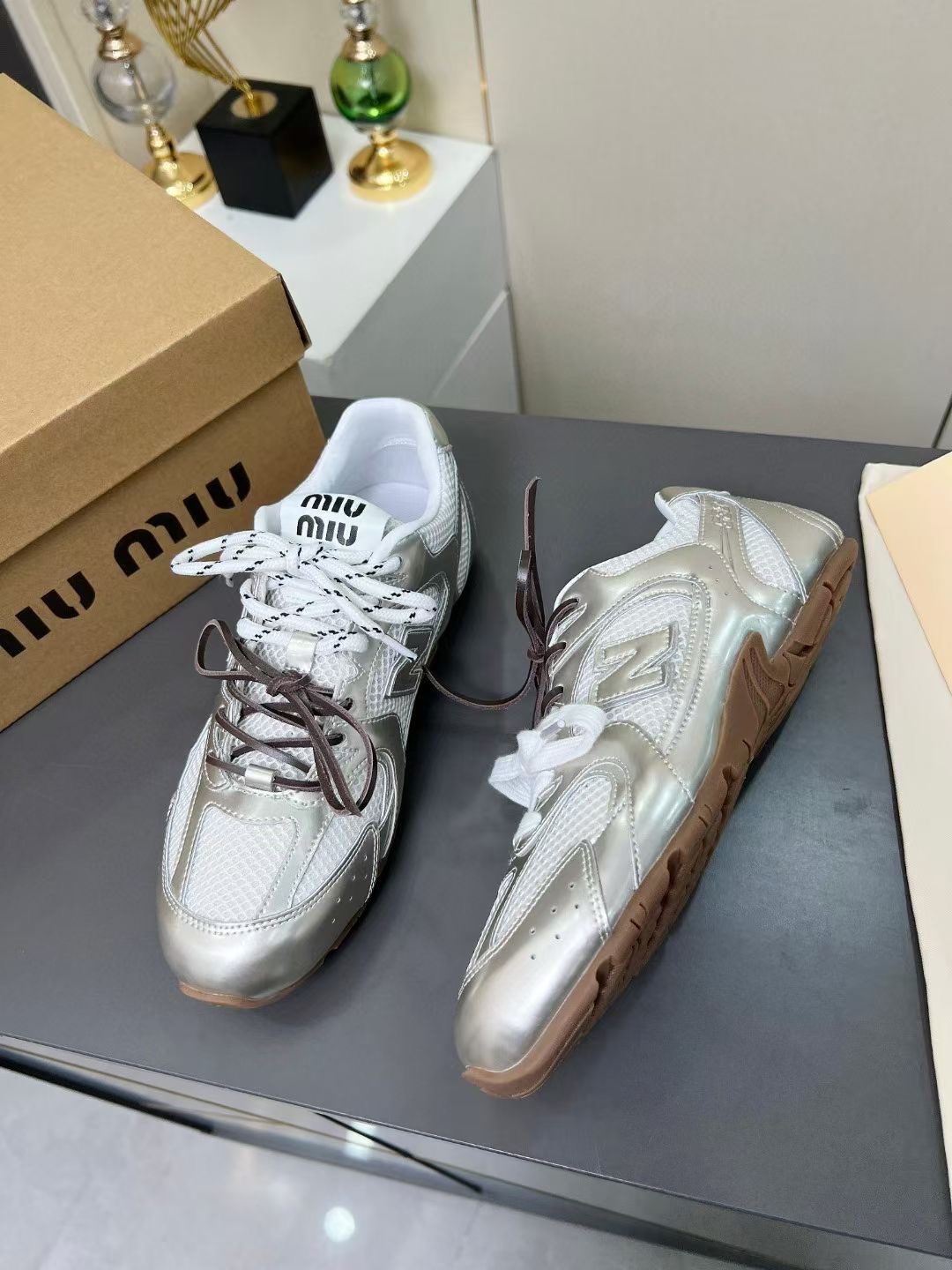 這款鞋子是AAAAA 1:1 質量(非常棒). 使用了和原版一模一樣的材料. 商標部分也保持了和繆繆/Miu Miu一樣. 圖片拍攝是實物鞋子拍攝, 您所收到的實物保證和我們圖片一模一樣.