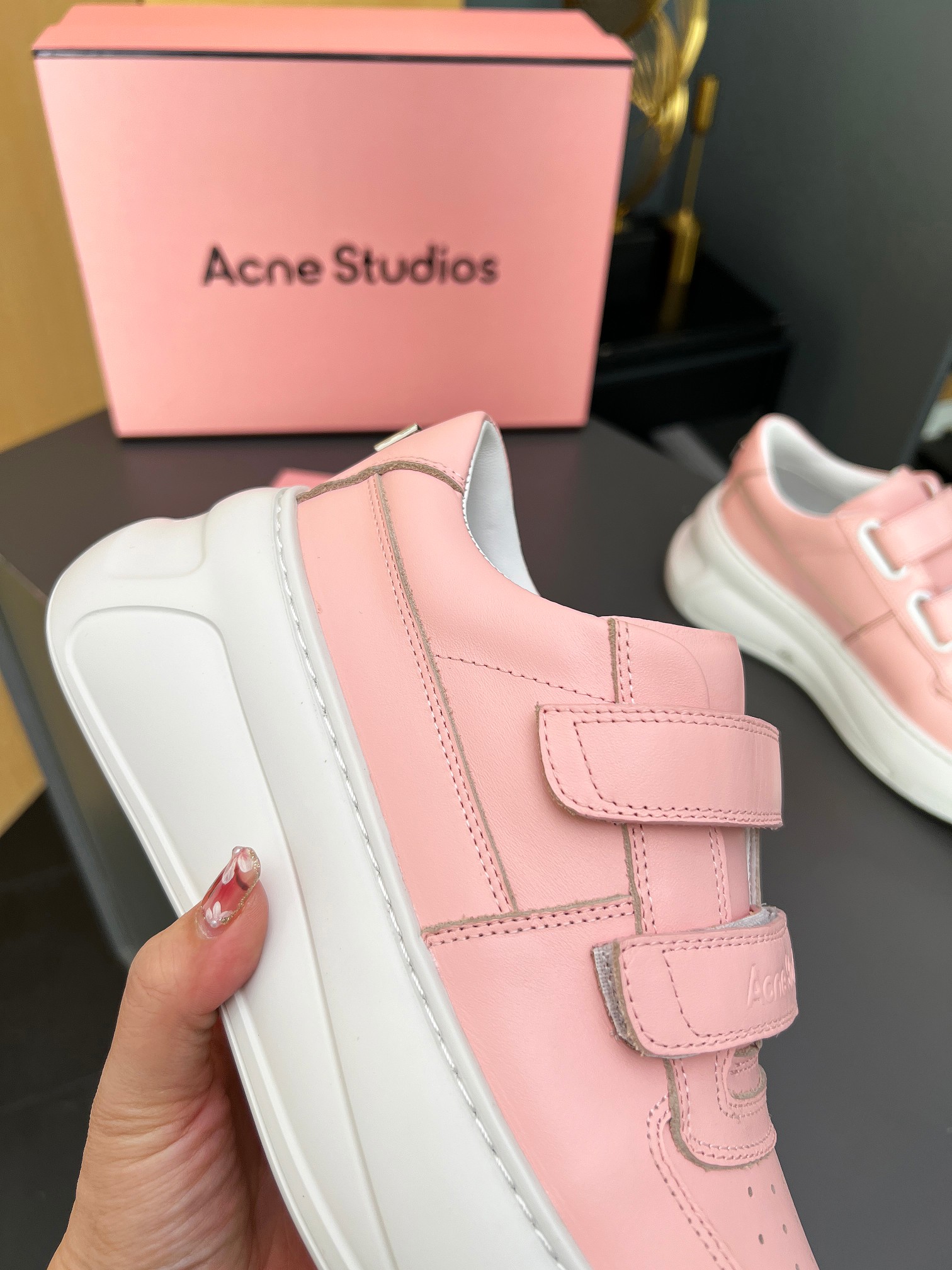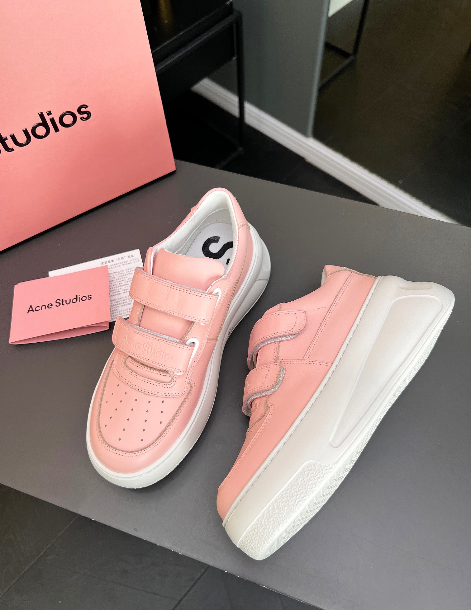 這款鞋子是AAAAA 1:1 質量(非常棒). 使用了和原版一模一樣的材料. 商標部分也保持了和Acne一樣. 圖片拍攝是實物鞋子拍攝, 您所收到的實物保證和我們圖片一模一樣.