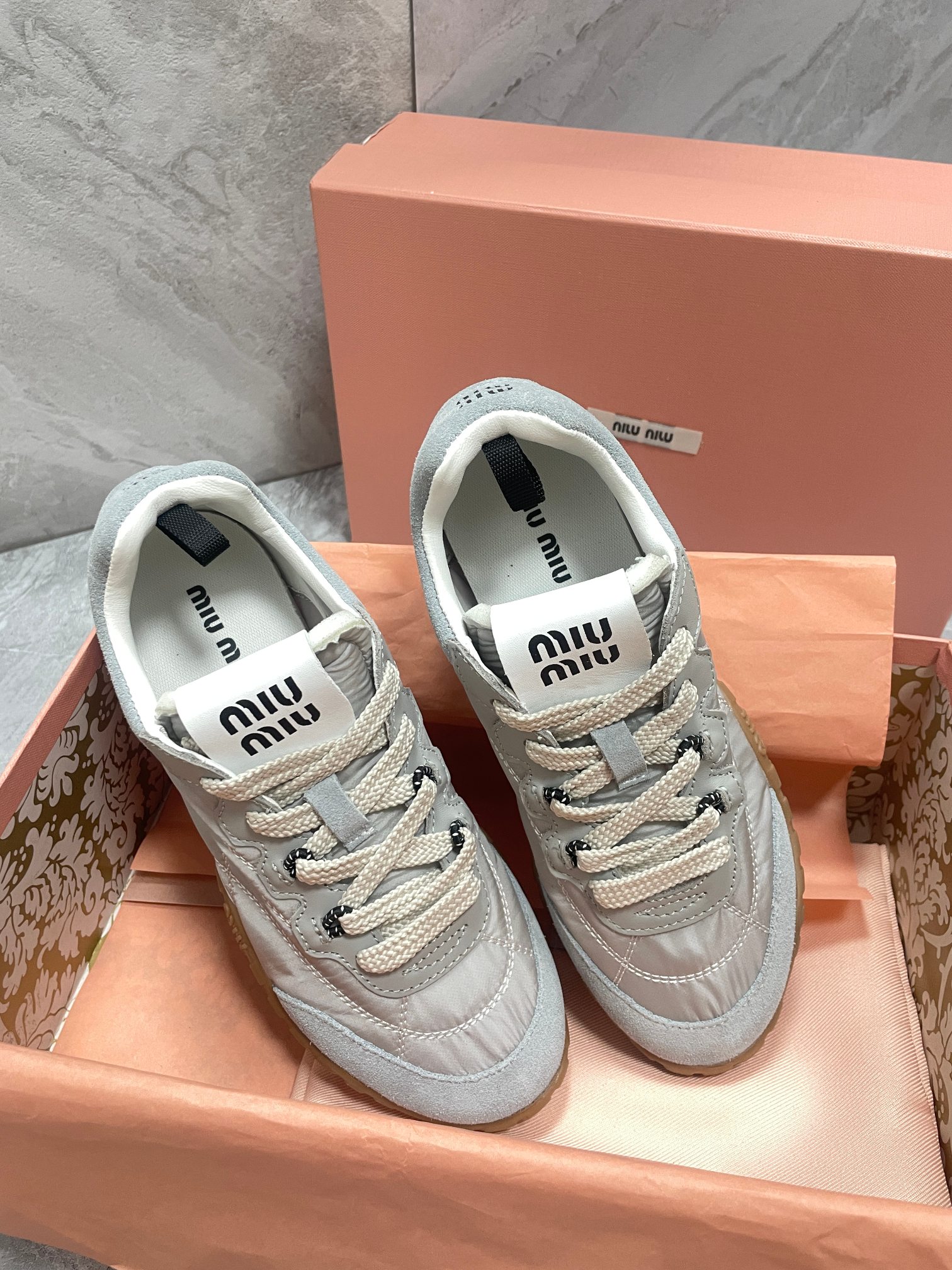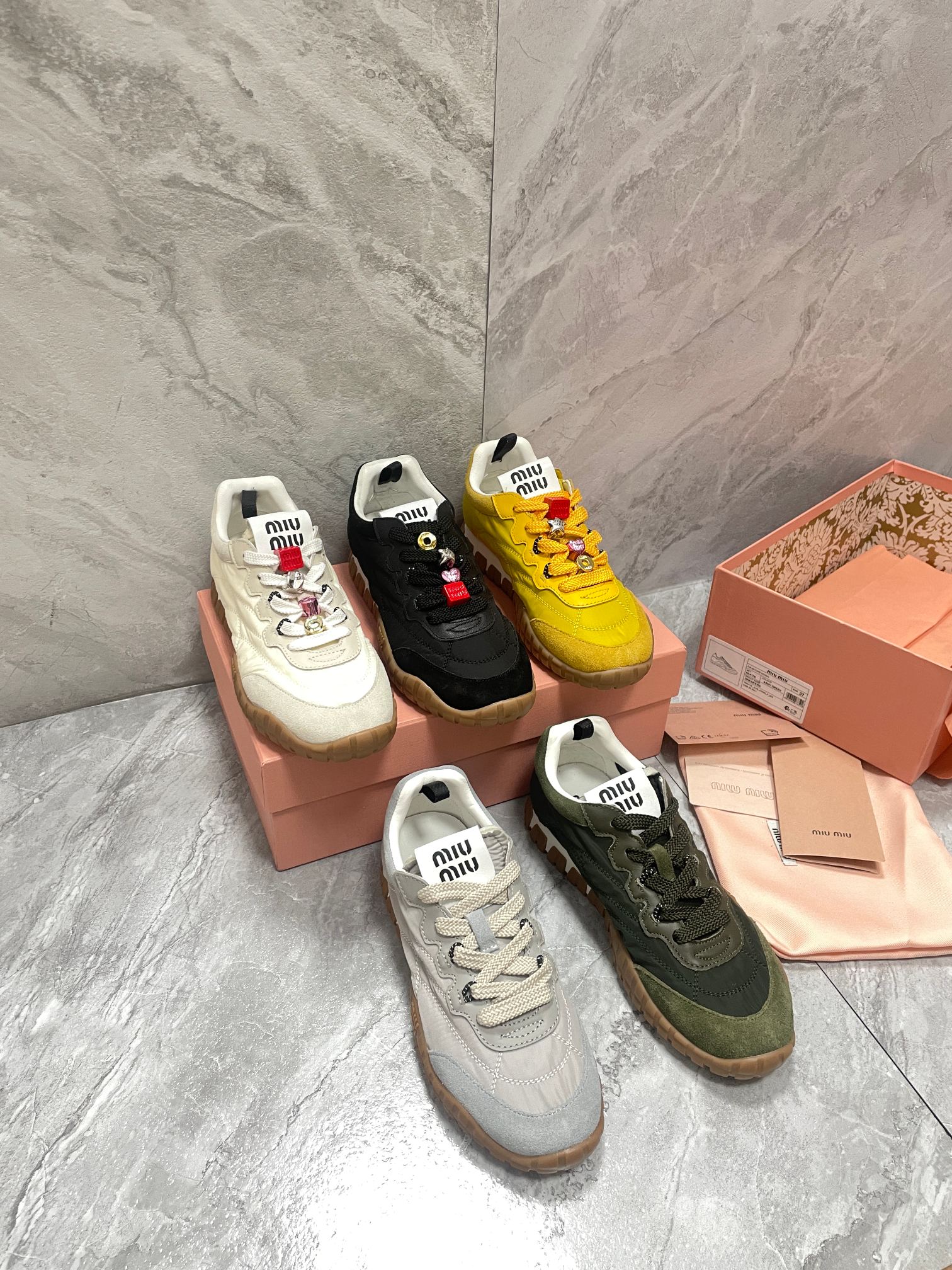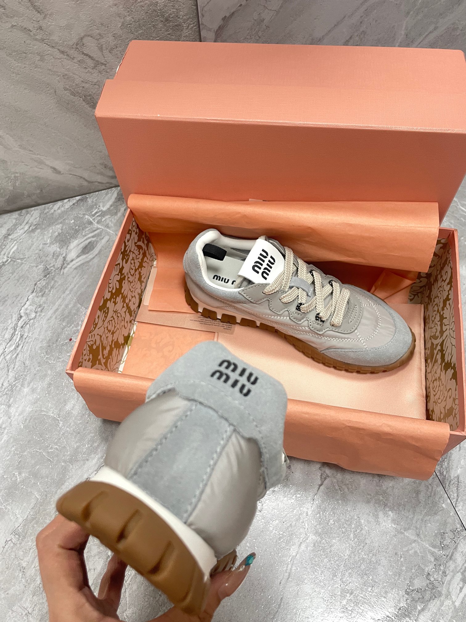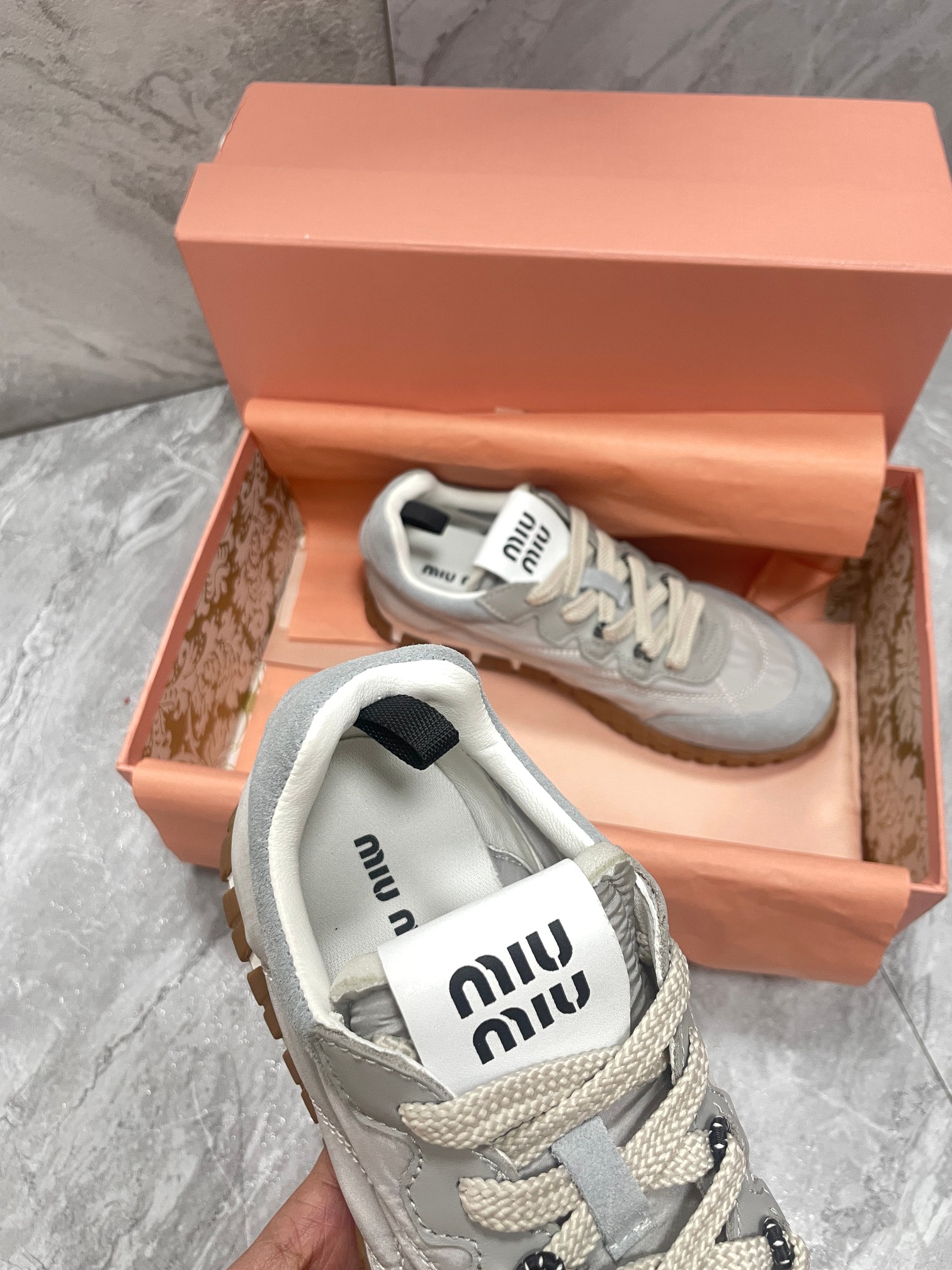 這款鞋子是AAAAA 1:1 質量(非常棒). 使用了和原版一模一樣的材料. 商標部分也保持了和繆繆/Miu Miu一樣. 圖片拍攝是實物鞋子拍攝, 您所收到的實物保證和我們圖片一模一樣.