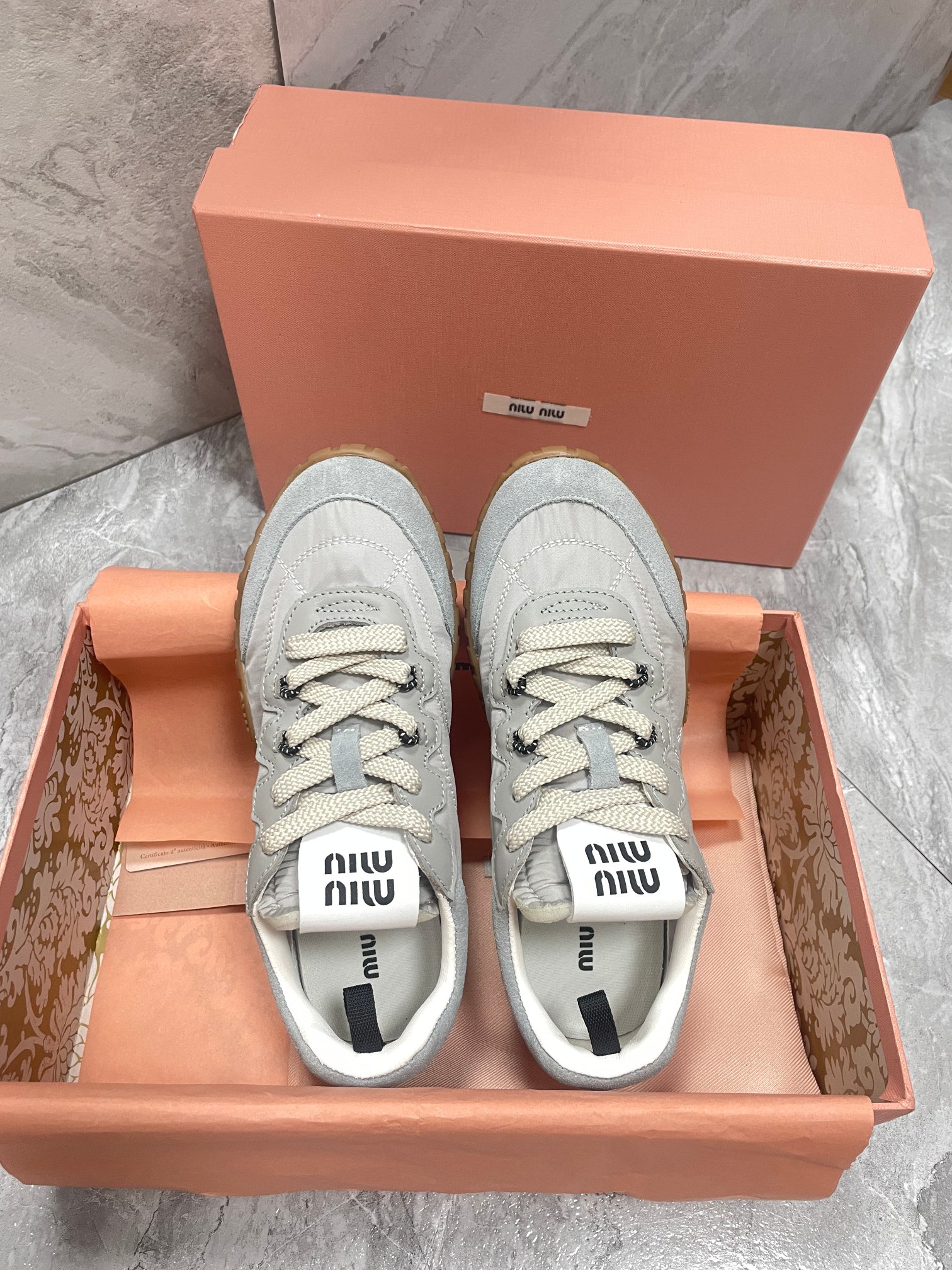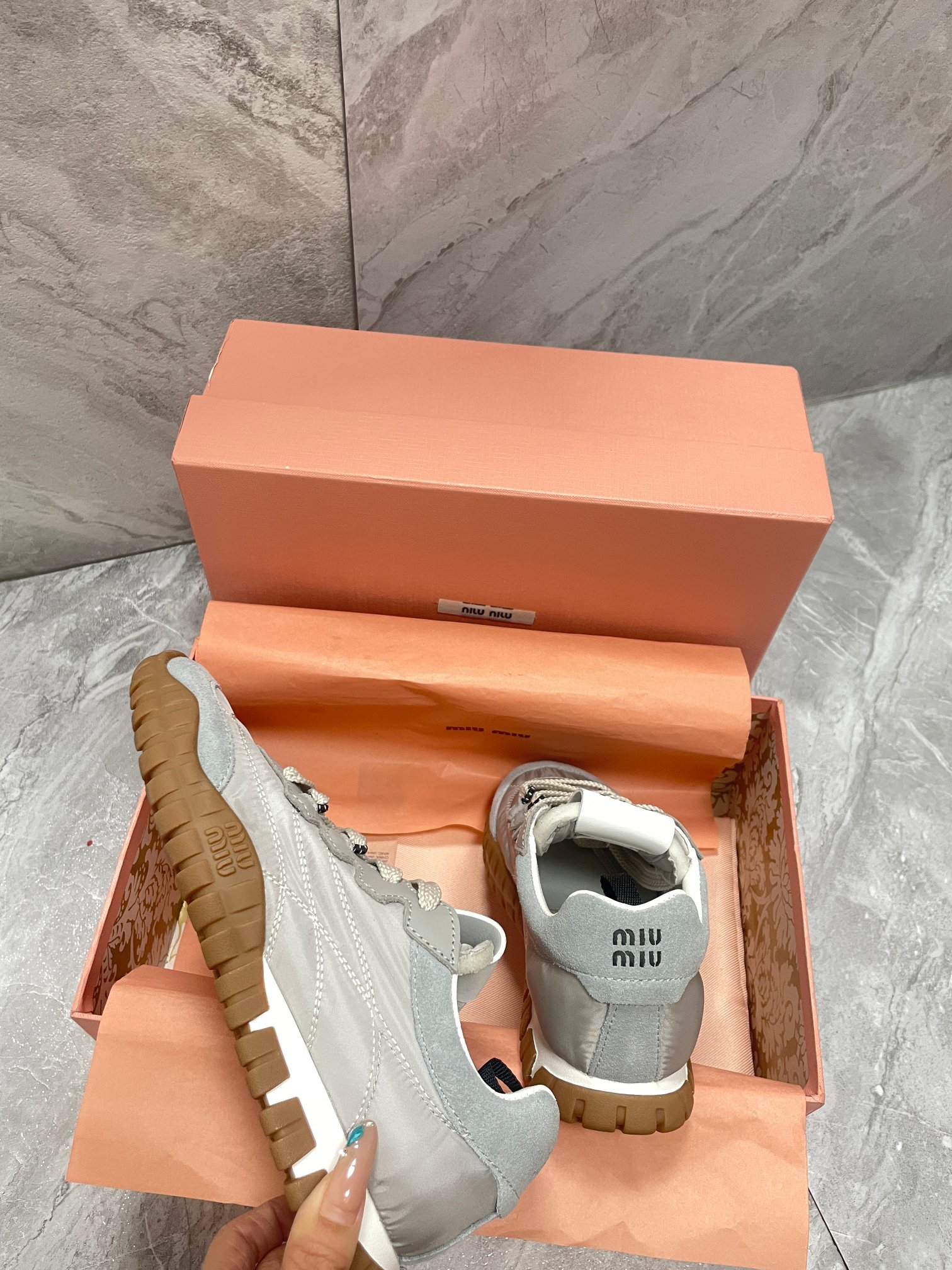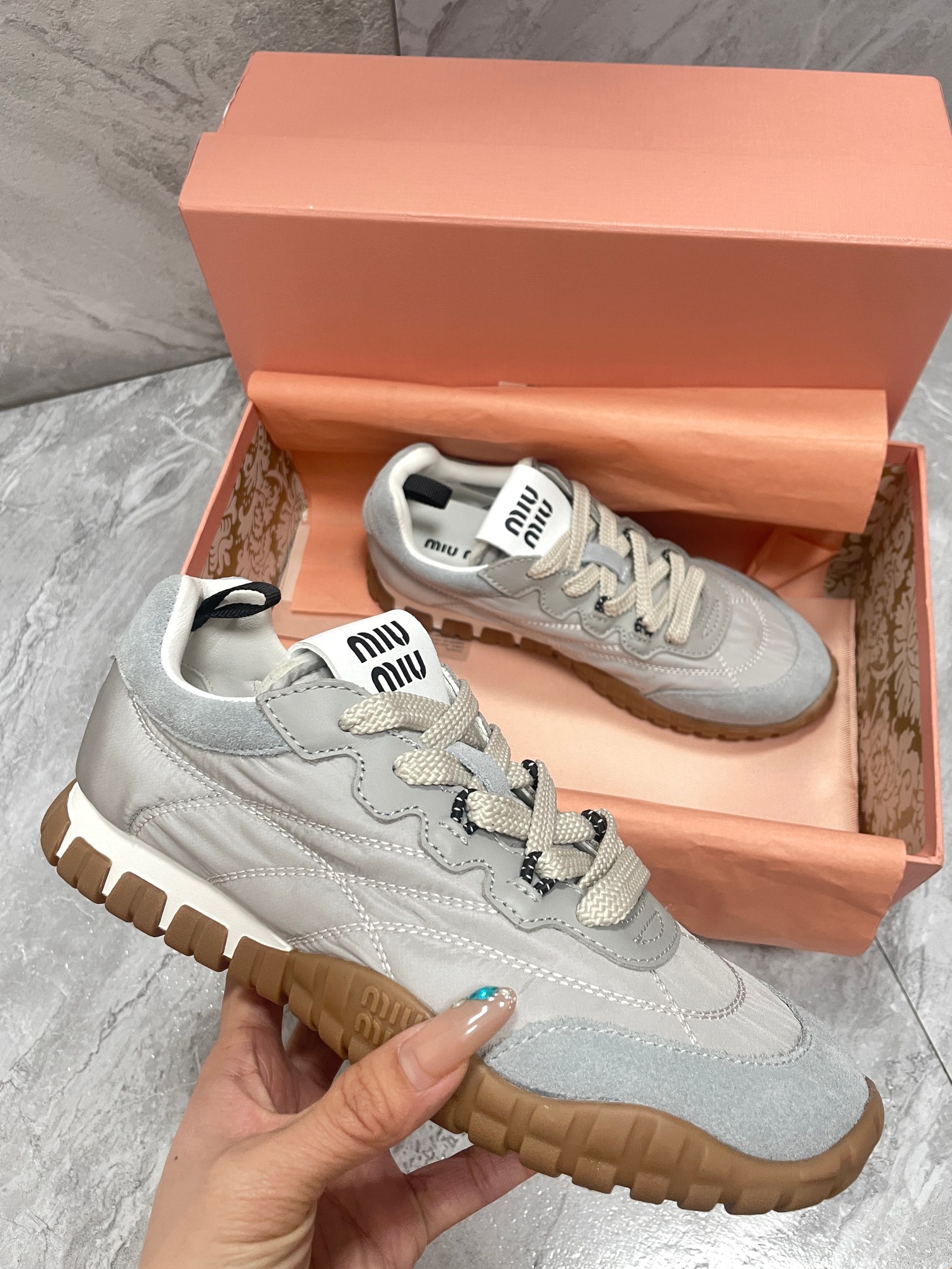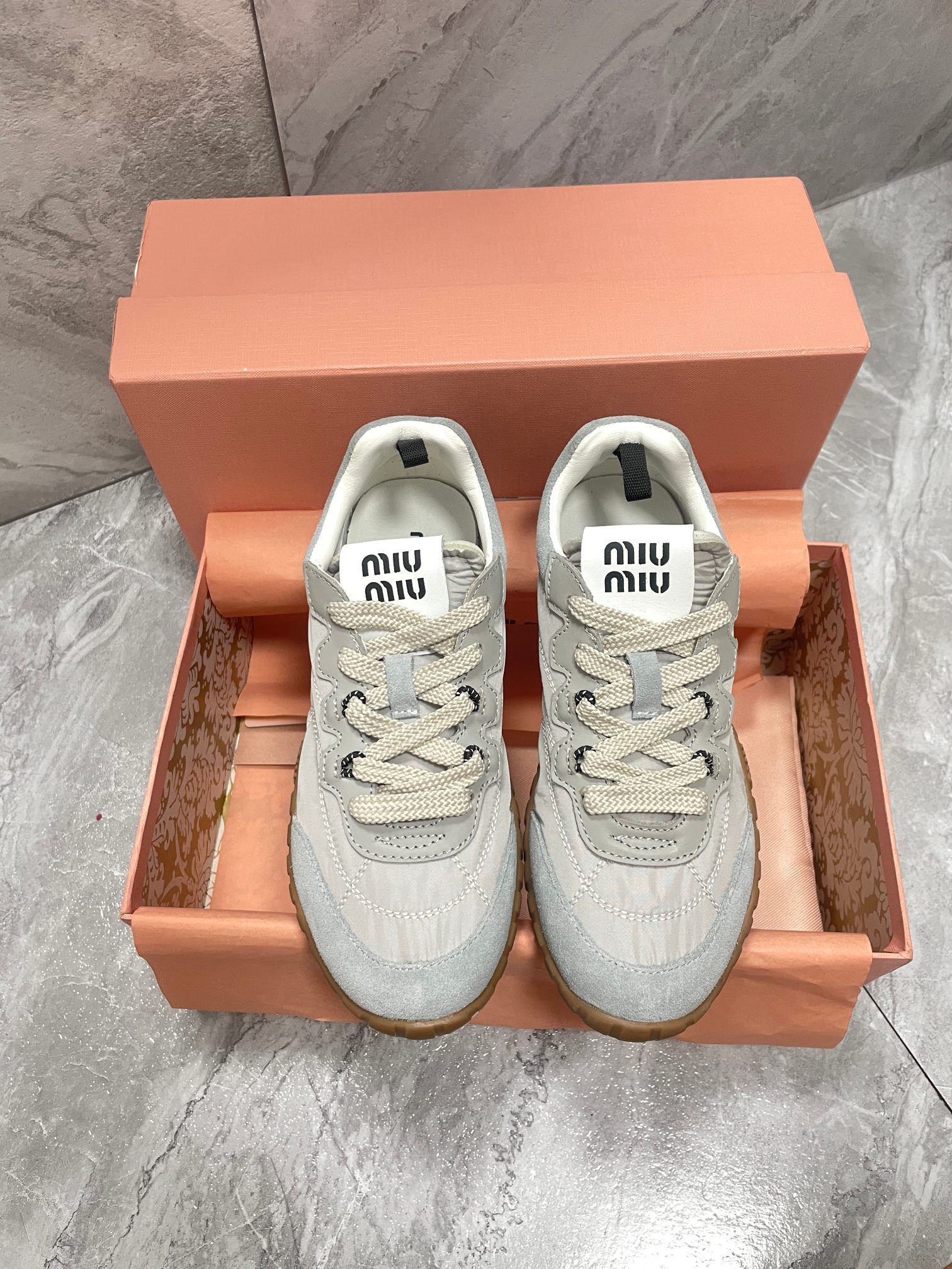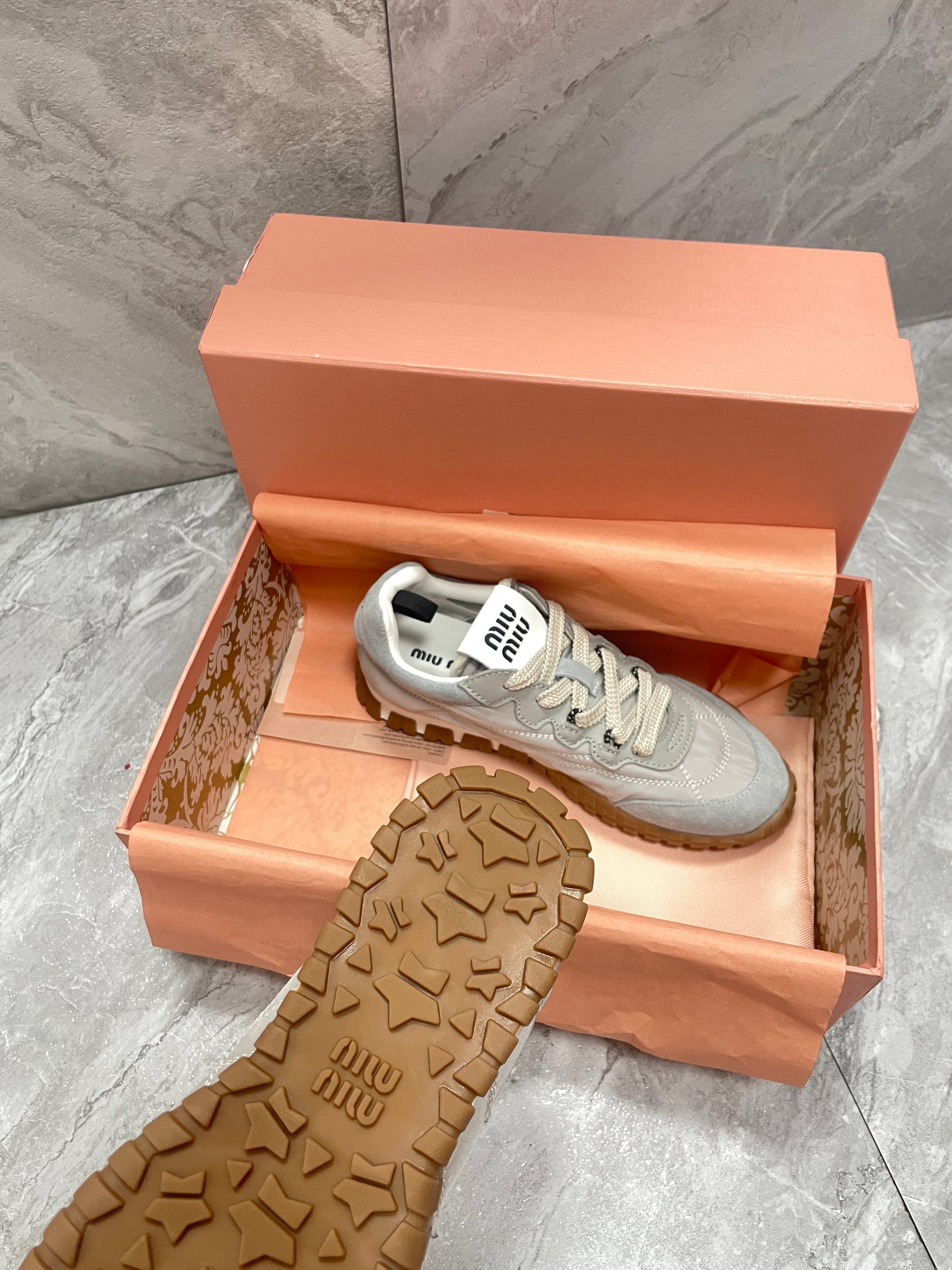 這款鞋子是AAAAA 1:1 質量(非常棒). 使用了和原版一模一樣的材料. 商標部分也保持了和繆繆/Miu Miu一樣. 圖片拍攝是實物鞋子拍攝, 您所收到的實物保證和我們圖片一模一樣.