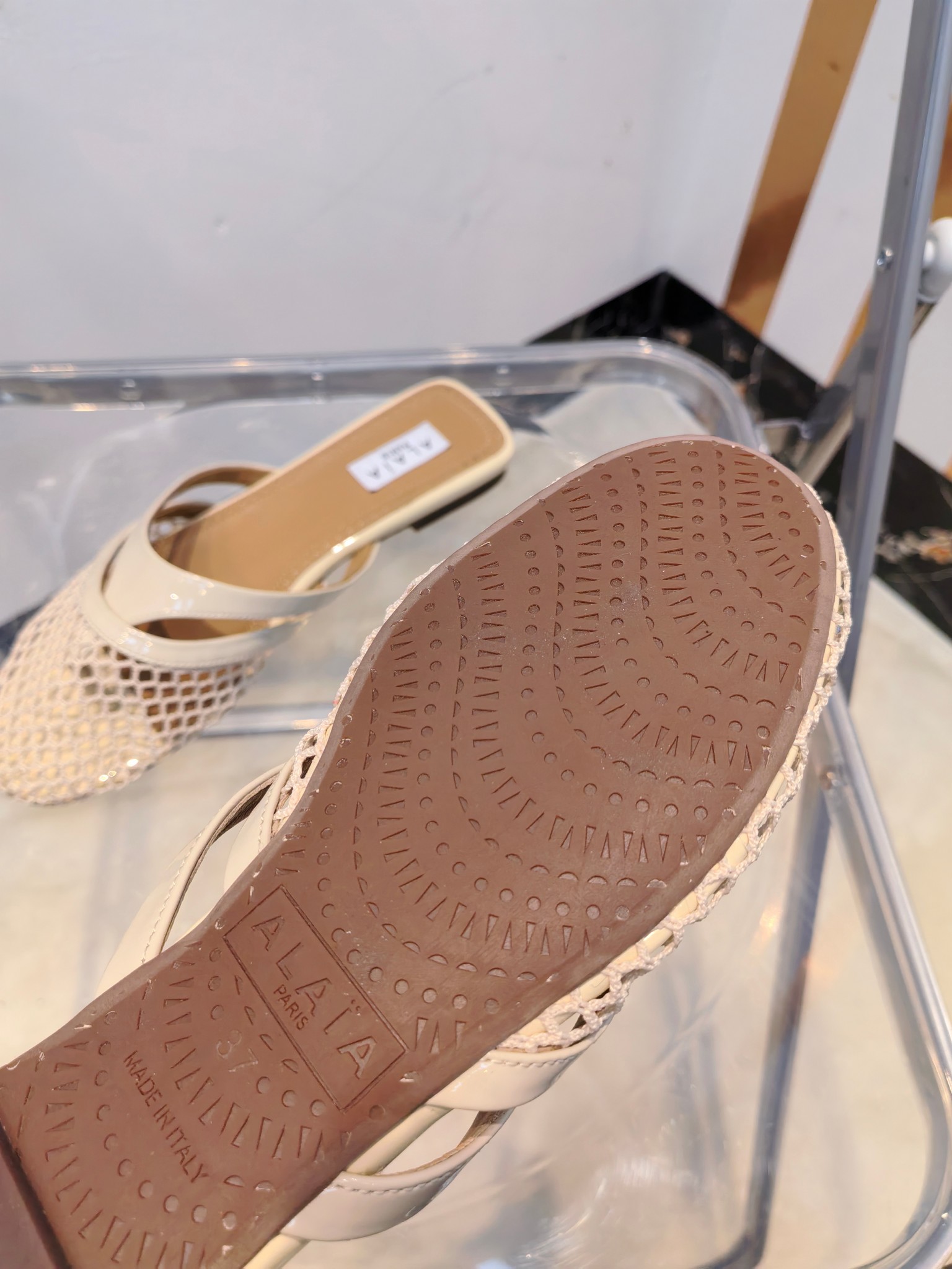 這款鞋子是AAAAA 1:1 質量(非常棒). 使用了和原版一模一樣的材料. 商標部分也保持了和Alaia一樣. 圖片拍攝是實物鞋子拍攝, 您所收到的實物保證和我們圖片一模一樣.