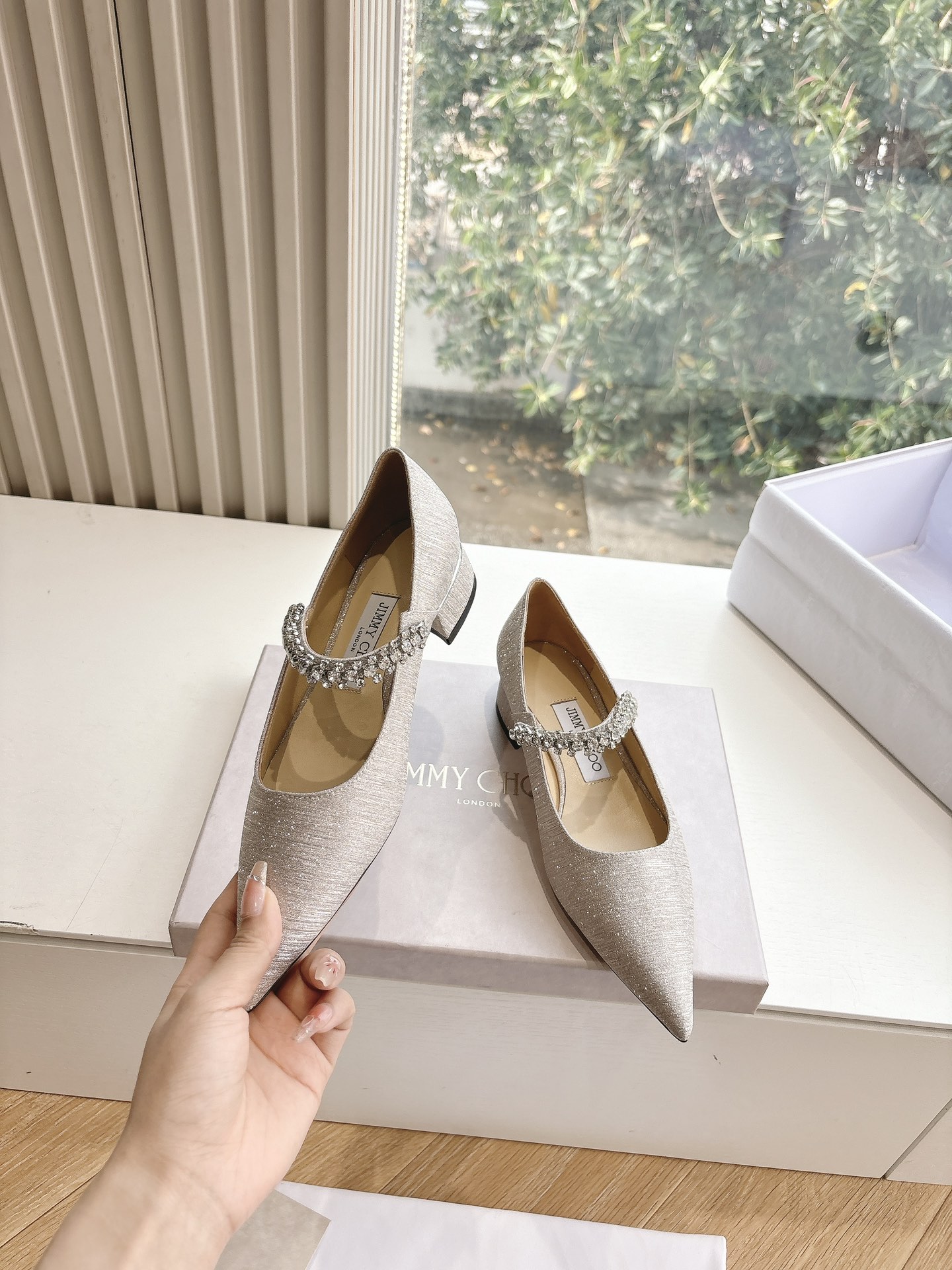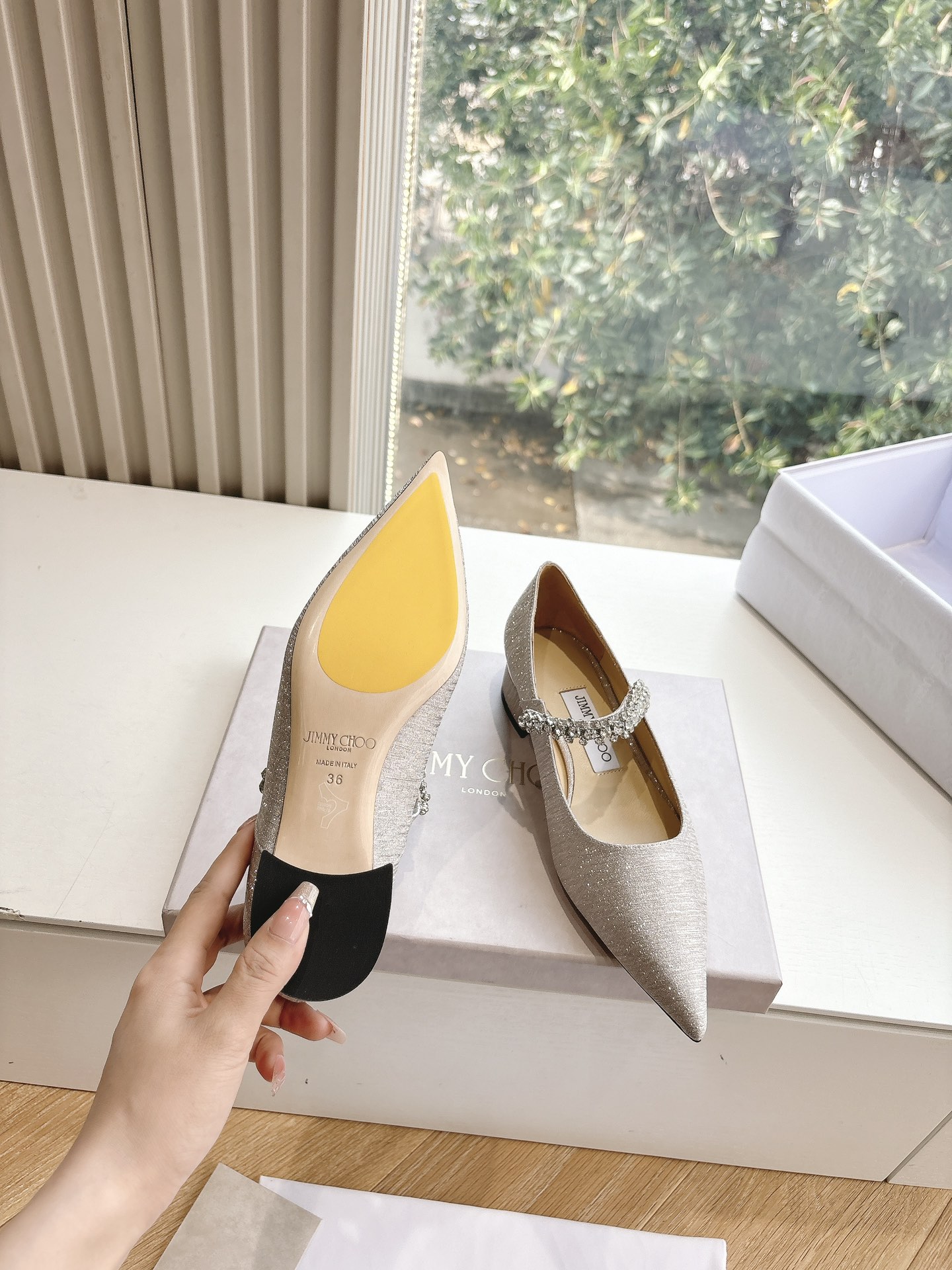 這款鞋子是AAAAA 1:1 質量(非常棒). 使用了和原版一模一樣的材料. 商標部分也保持了和吉米喬/JIMMY CHOO一樣. 圖片拍攝是實物鞋子拍攝, 您所收到的實物保證和我們圖片一模一樣.