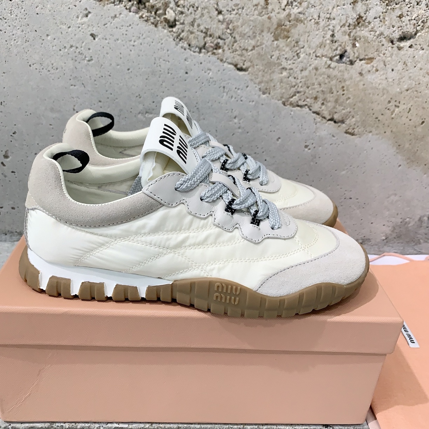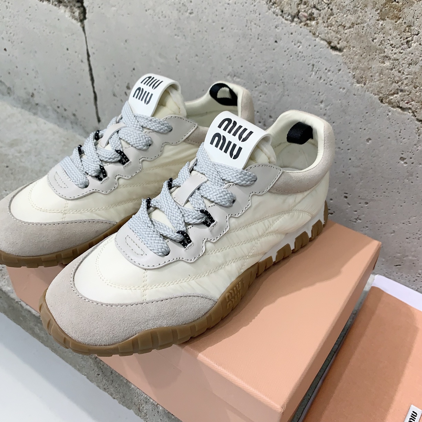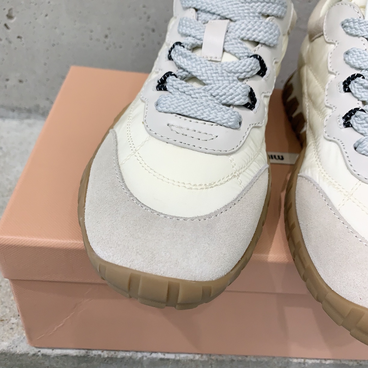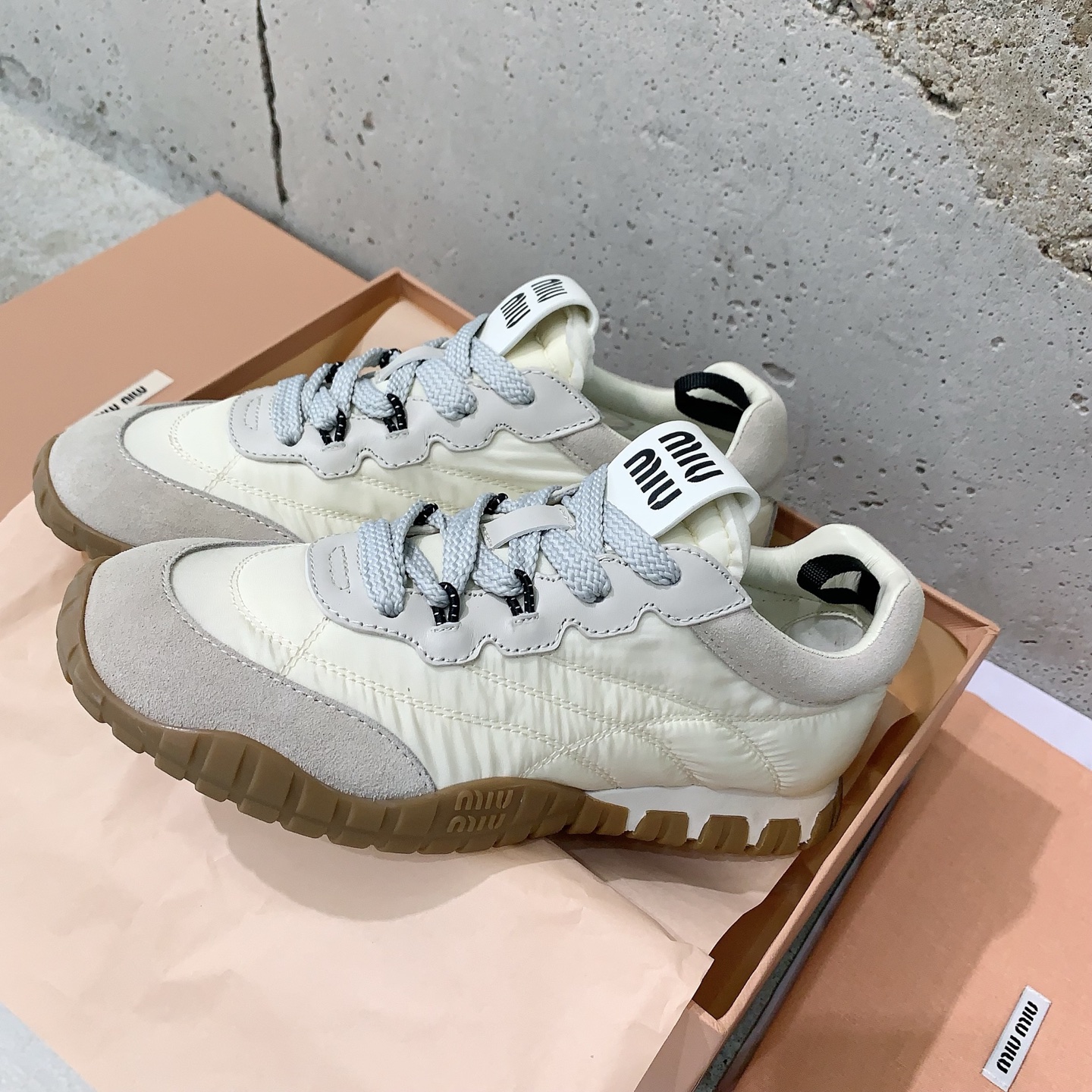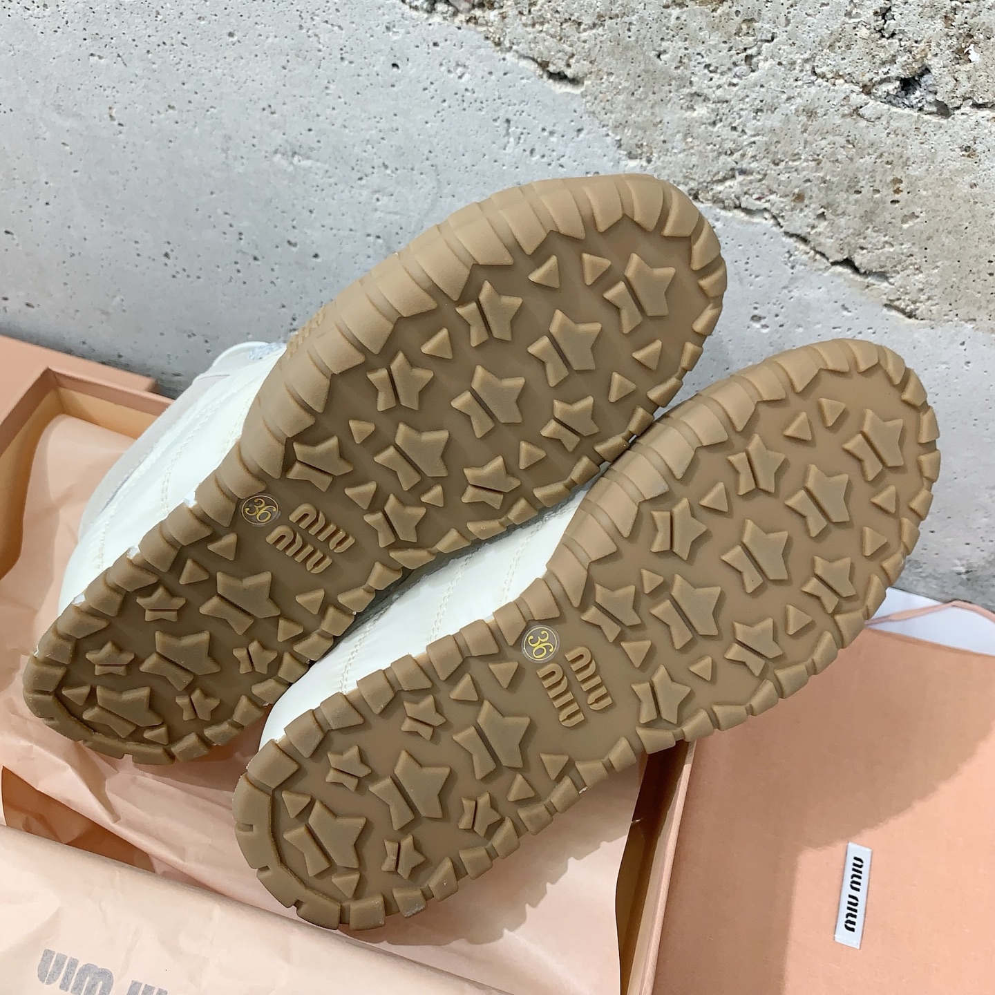 這款鞋子是AAAAA 1:1 質量(非常棒). 使用了和原版一模一樣的材料. 商標部分也保持了和繆繆/Miu Miu一樣. 圖片拍攝是實物鞋子拍攝, 您所收到的實物保證和我們圖片一模一樣.