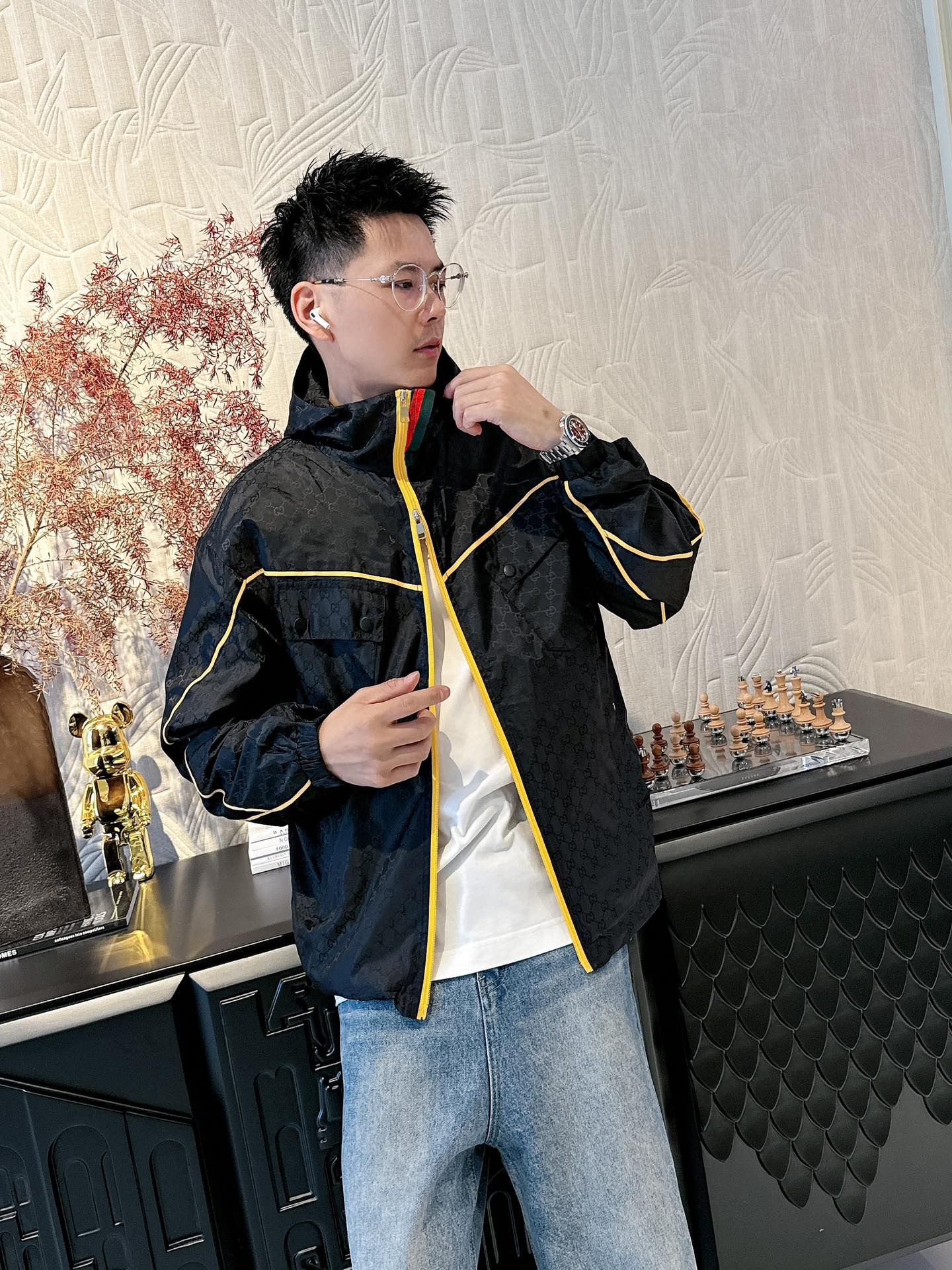 這款衣服是AAAAA 1:1 質量(非常棒). 使用了和原版一模一樣的材料. 商標部分也保持了和古奇/Gucci一樣. 圖片拍攝是實物衣服拍攝, 您所收到的實物保證和我們圖片一模一樣.