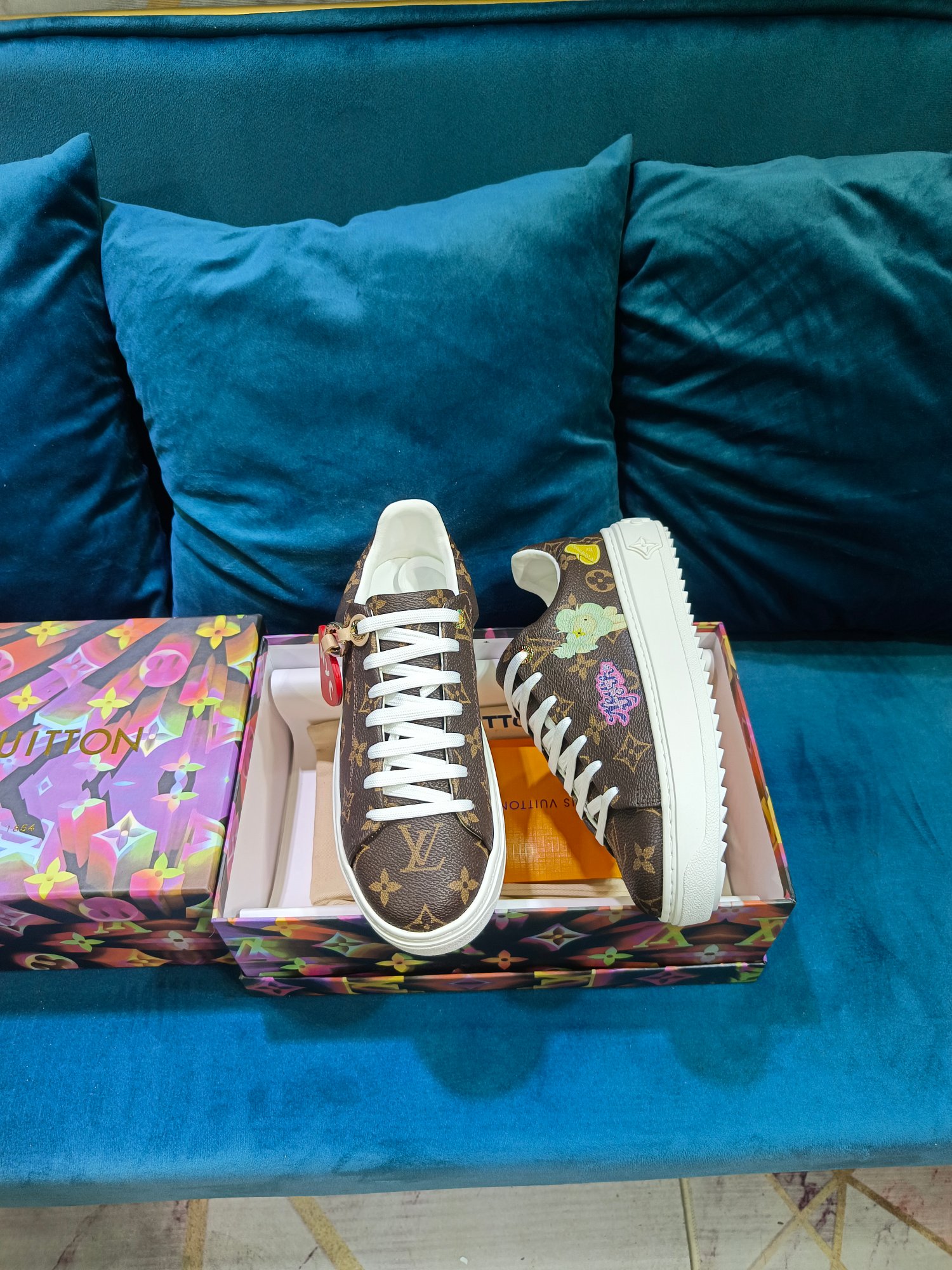 這款鞋子是AAAAA 1:1 質量(非常棒). 使用了和原版一模一樣的材料. 商標部分也保持了和路易威登/Louis Vuitton一樣. 圖片拍攝是實物鞋子拍攝, 您所收到的實物保證和我們圖片一模一樣.