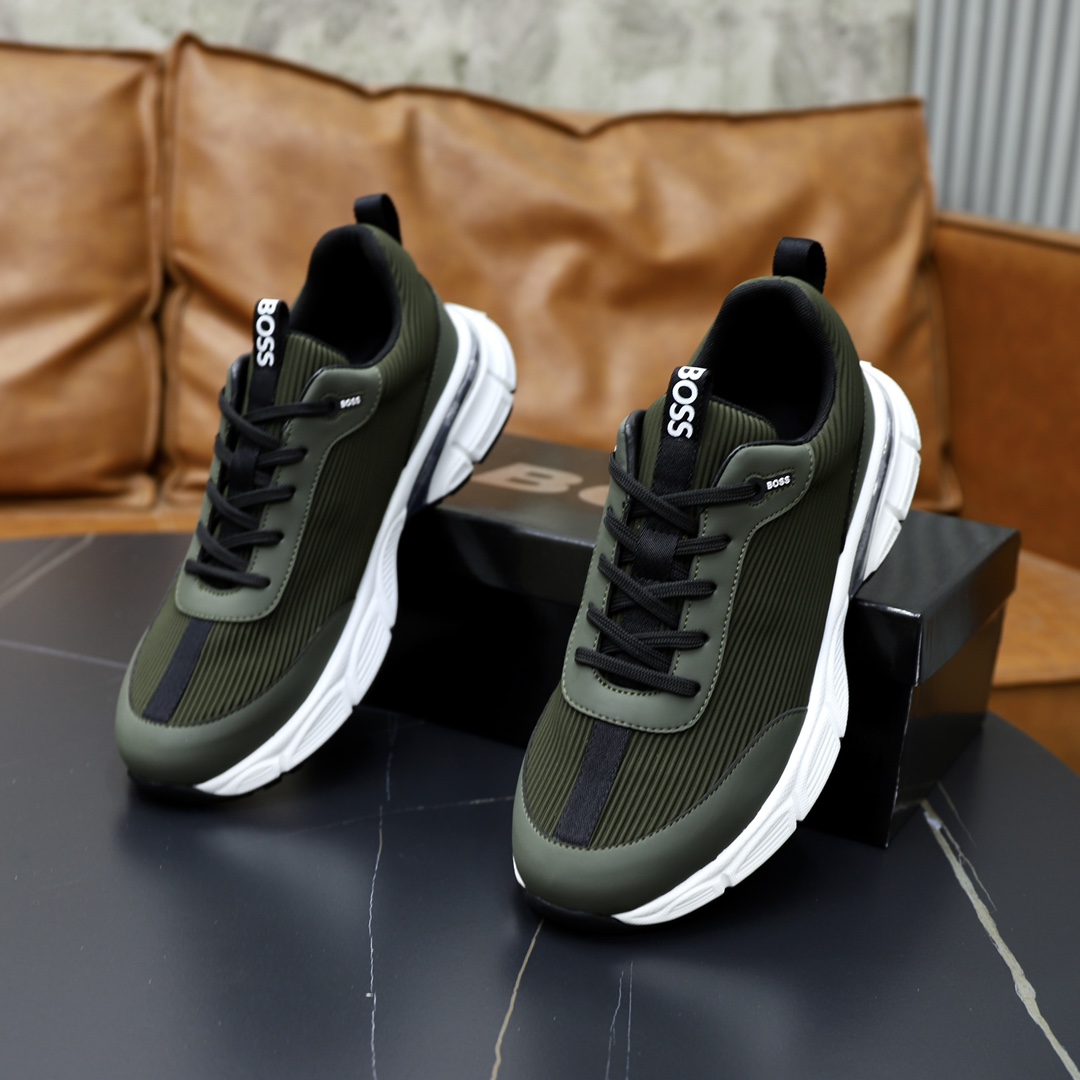 這款鞋子是AAAAA 1:1 質量(非常棒). 使用了和原版一模一樣的材料. 商標部分也保持了和BOSS一樣. 圖片拍攝是實物鞋子拍攝, 您所收到的實物保證和我們圖片一模一樣.