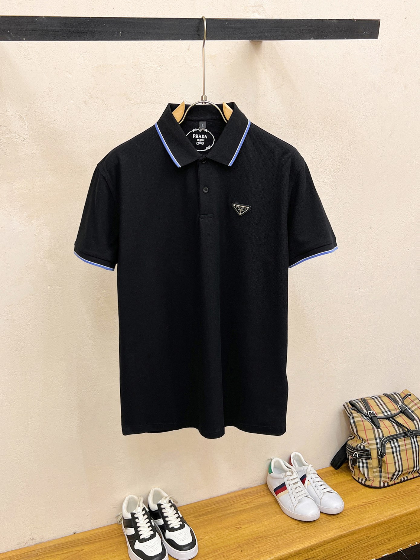 這款衣服是AAAAA 1:1 質量(非常棒). 使用了和原版一模一樣的材料. 商標部分也保持了和普拉達/Prada一樣. 圖片拍攝是實物衣服拍攝, 您所收到的實物保證和我們圖片一模一樣.