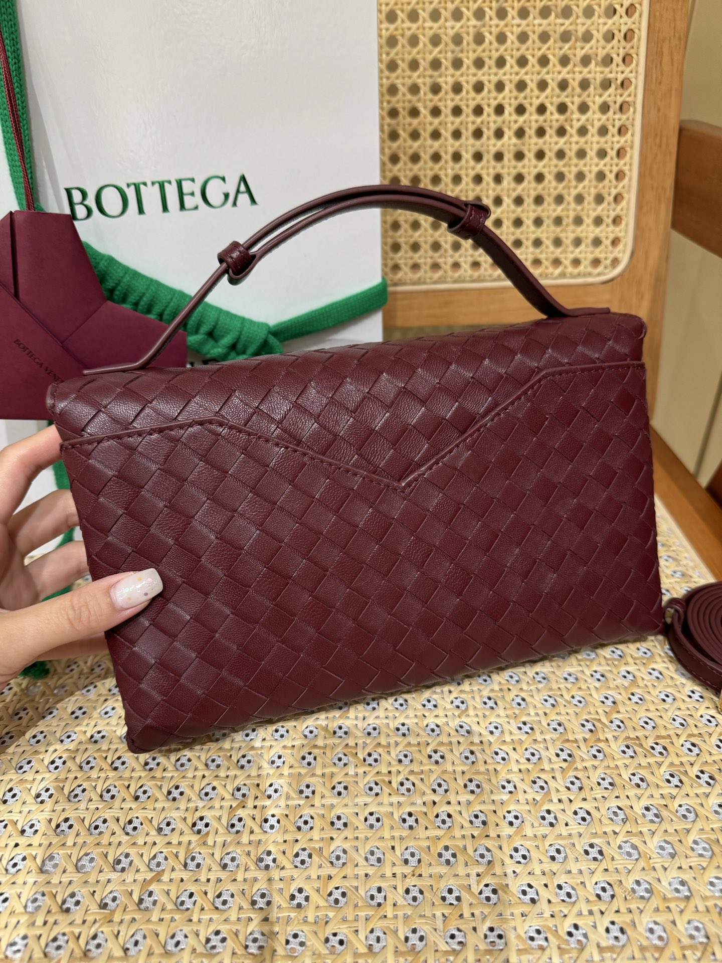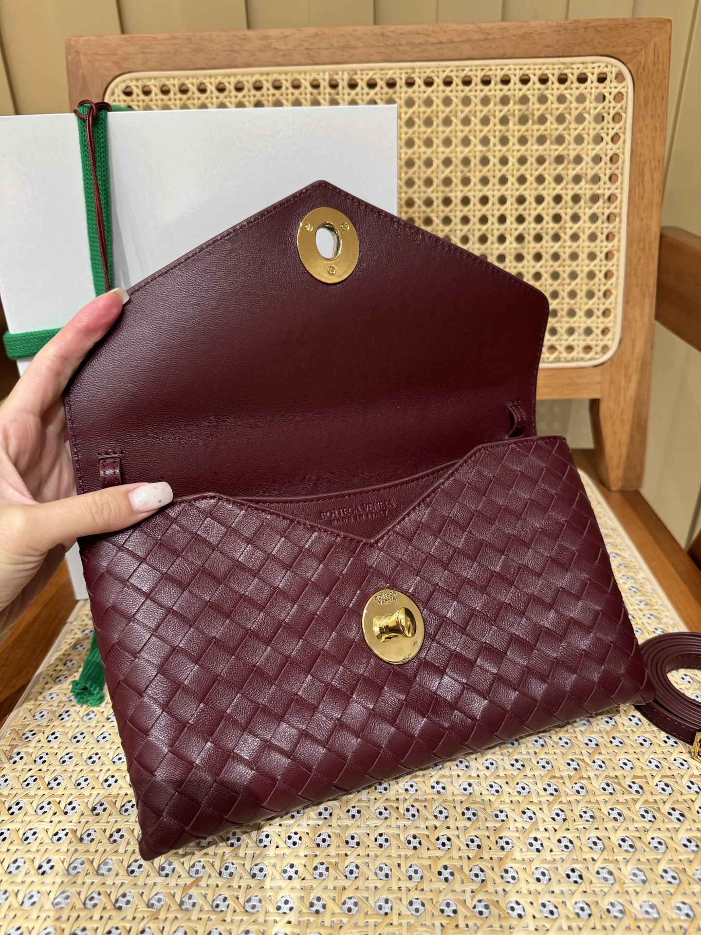 這款包包是AAAAA 1:1 質量(非常棒). 使用了和原版一模一樣的材料. 商標部分也保持了和葆蝶家/Bottega Veneta一樣. 圖片拍攝是實物包包拍攝, 您所收到的實物保證和我們圖片一模一樣.