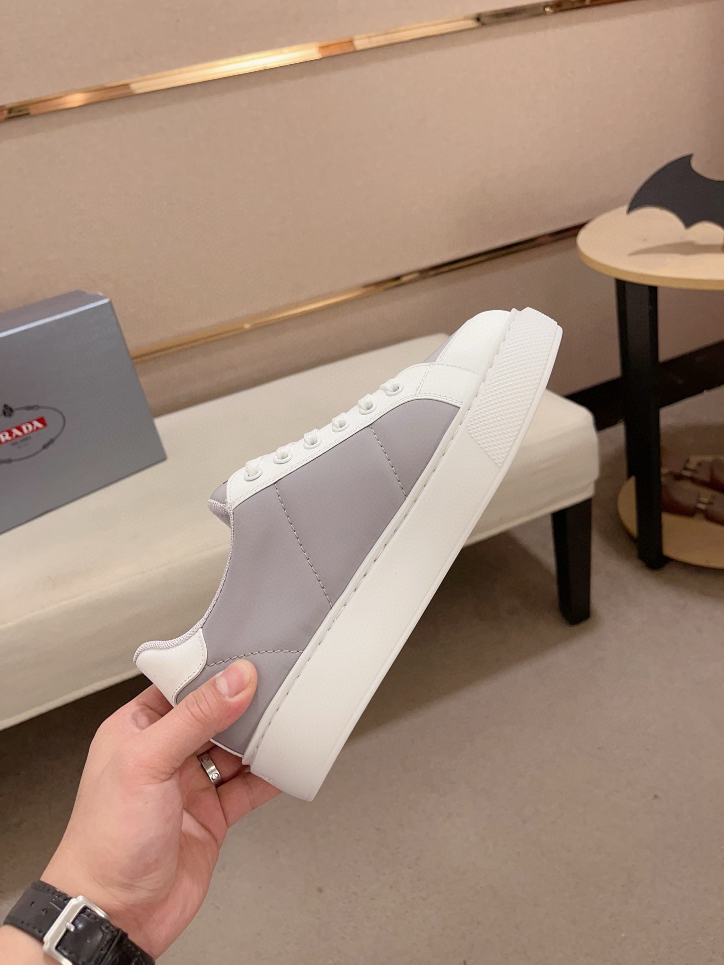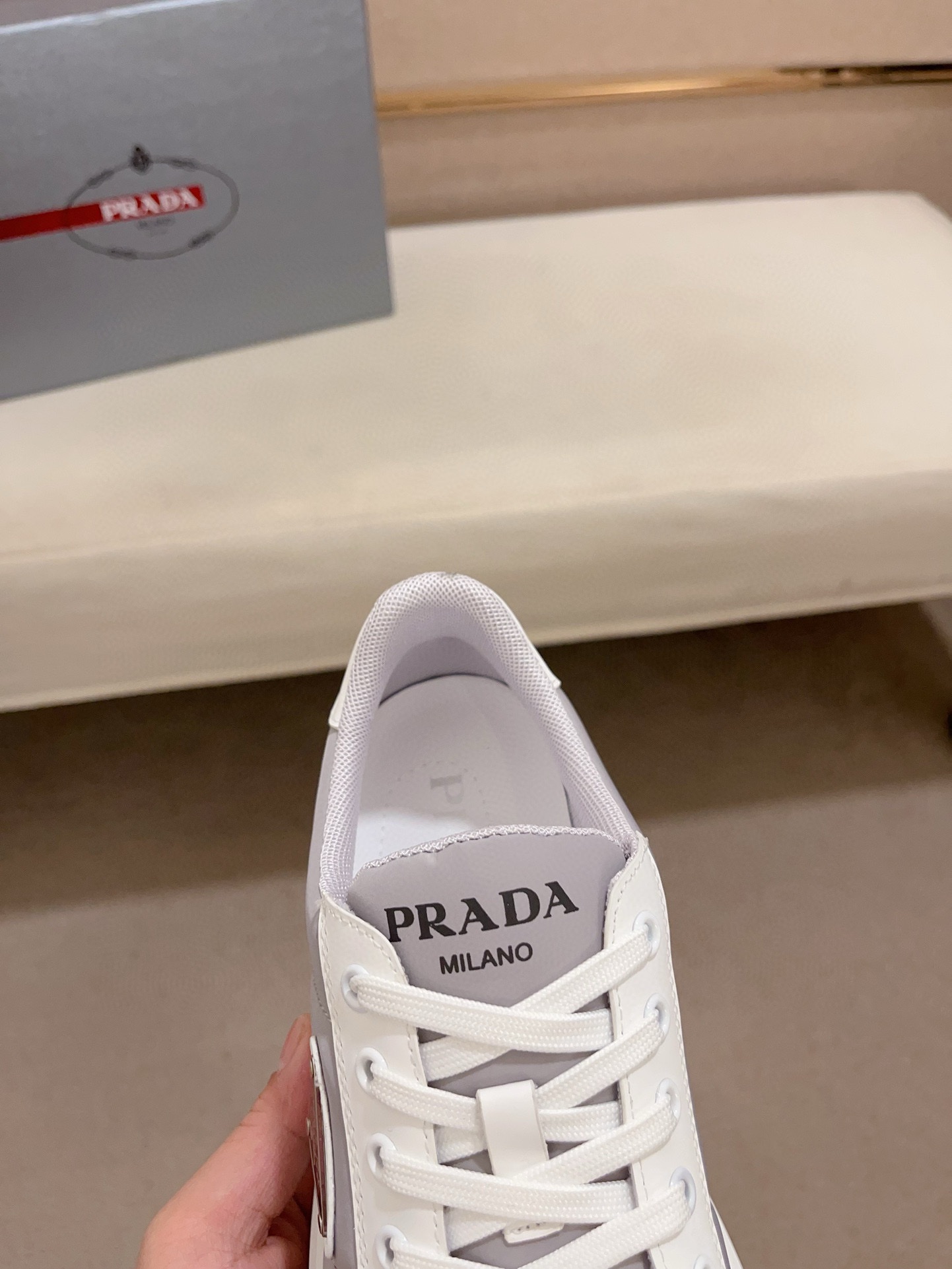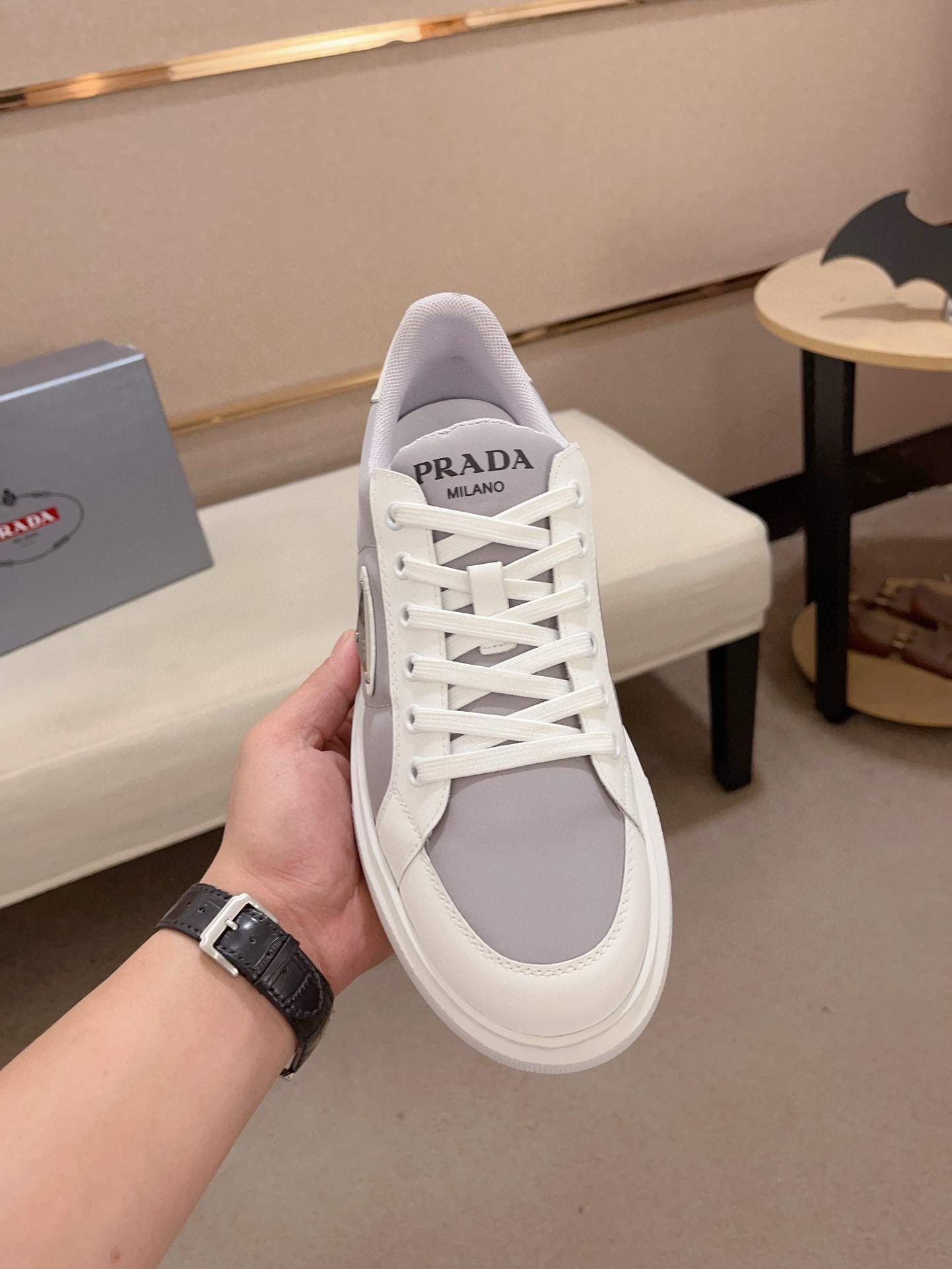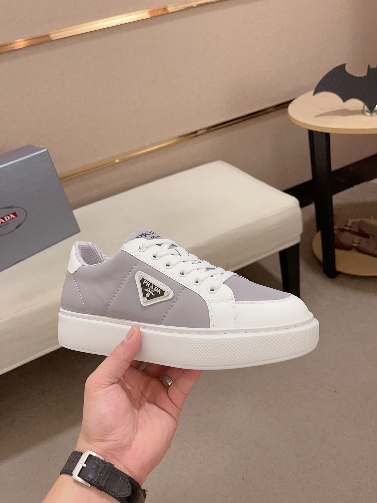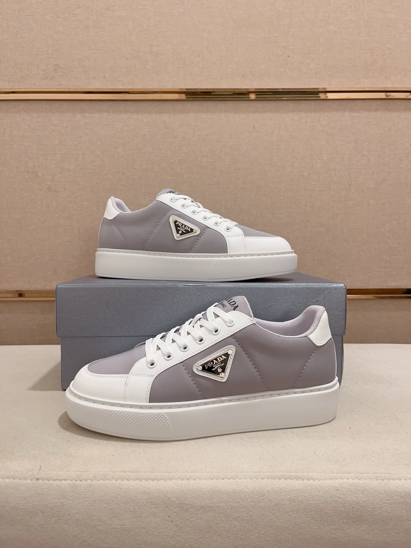 這款鞋子是AAAAA 1:1 質量(非常棒). 使用了和原版一模一樣的材料. 商標部分也保持了和普拉達/Prada一樣. 圖片拍攝是實物鞋子拍攝, 您所收到的實物保證和我們圖片一模一樣.
