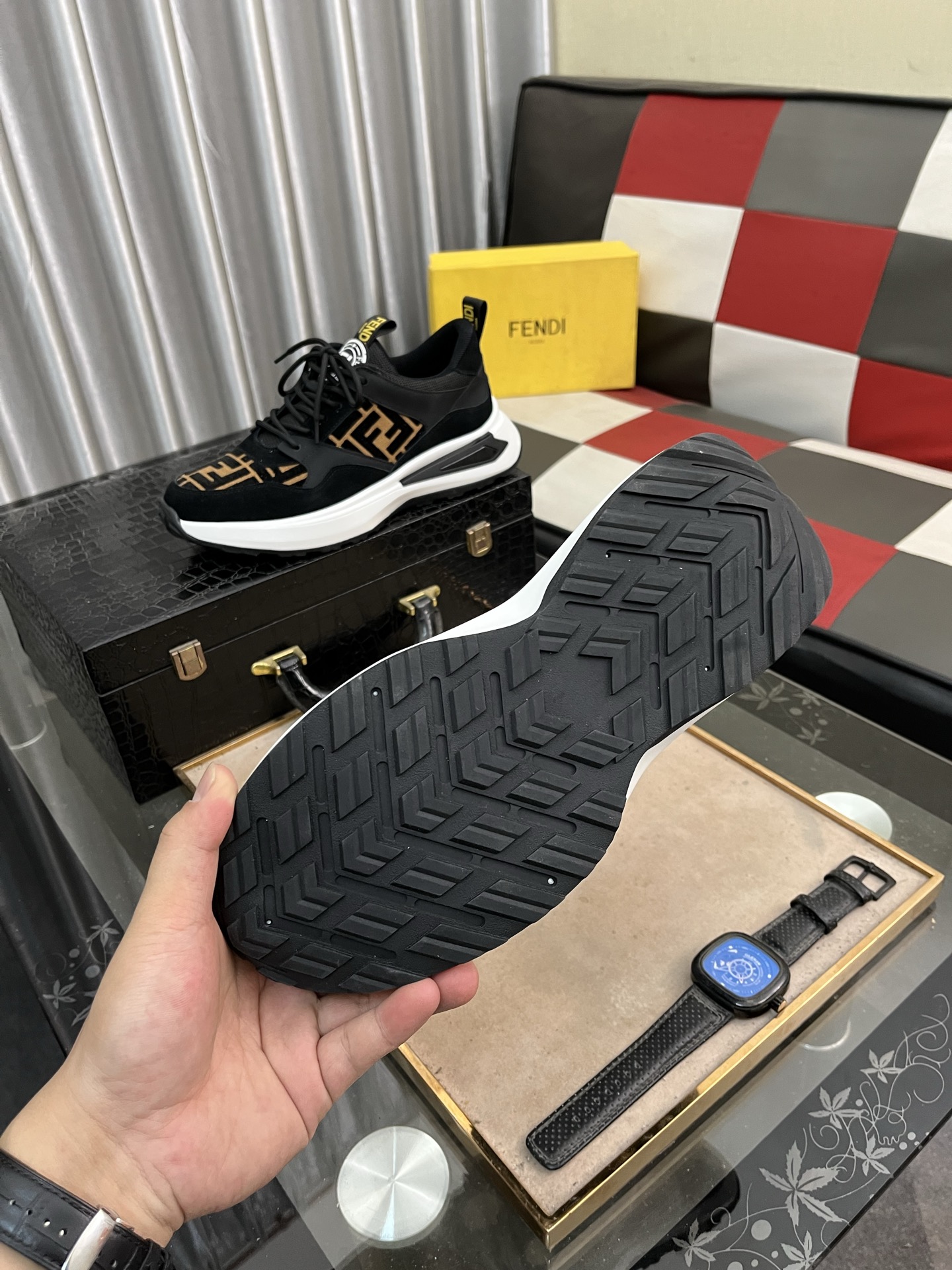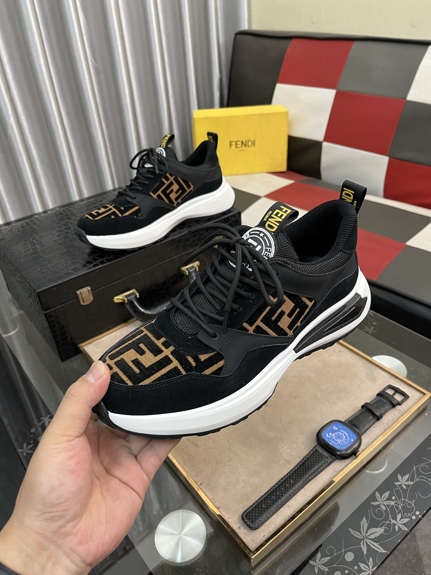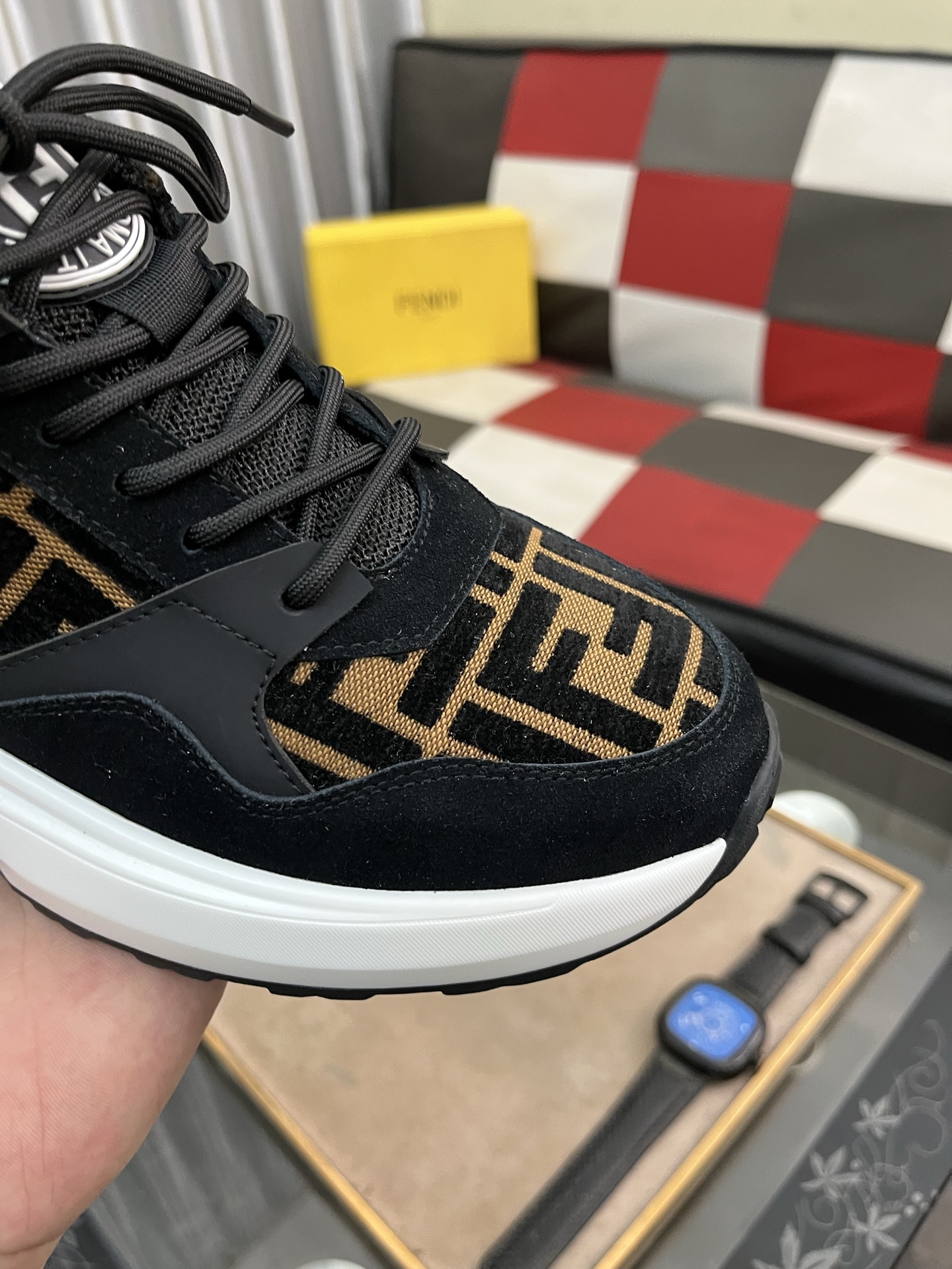 這款鞋子是AAAAA 1:1 質量(非常棒). 使用了和原版一模一樣的材料. 商標部分也保持了和芬迪/Fendi一樣. 圖片拍攝是實物鞋子拍攝, 您所收到的實物保證和我們圖片一模一樣.