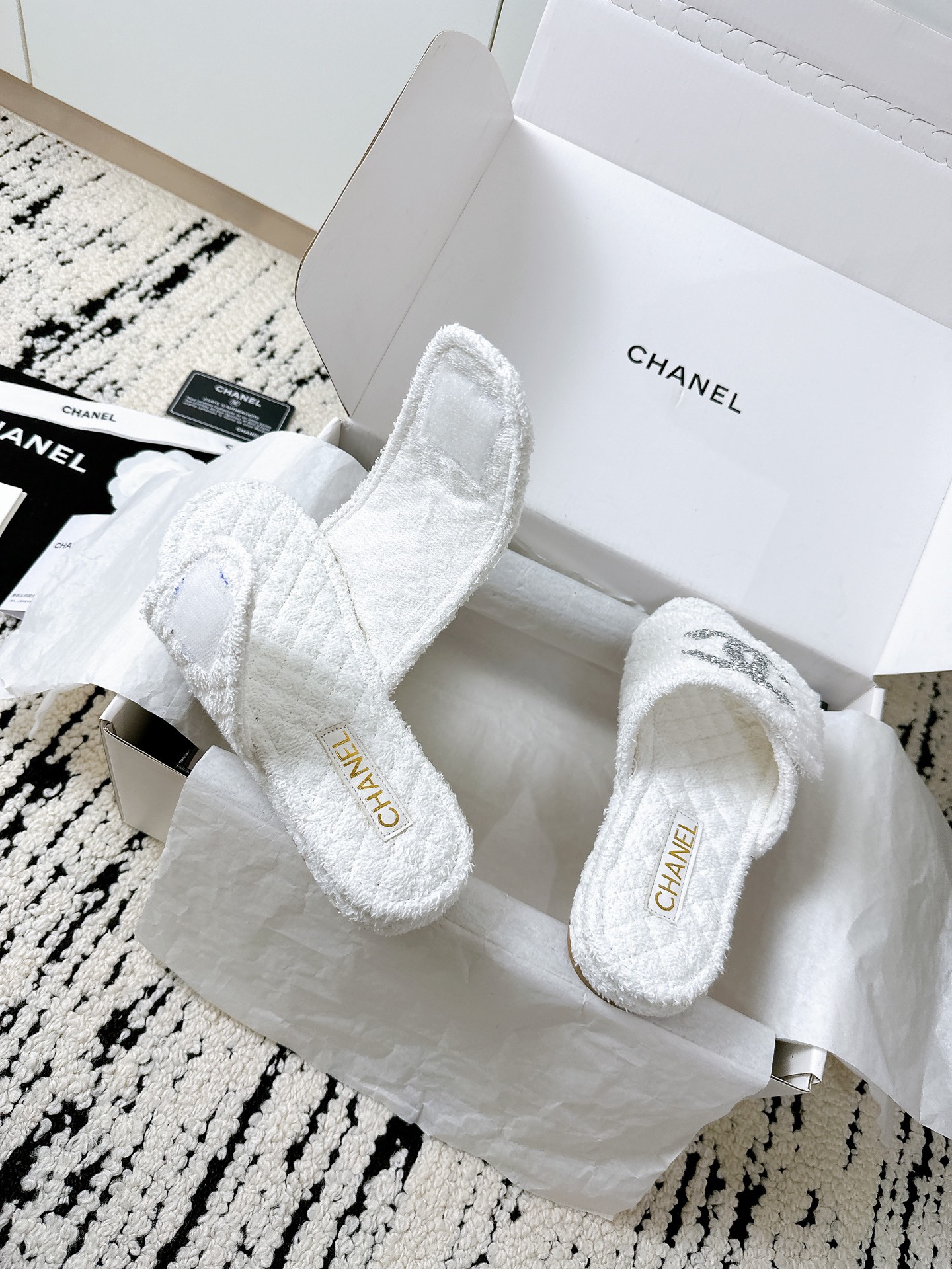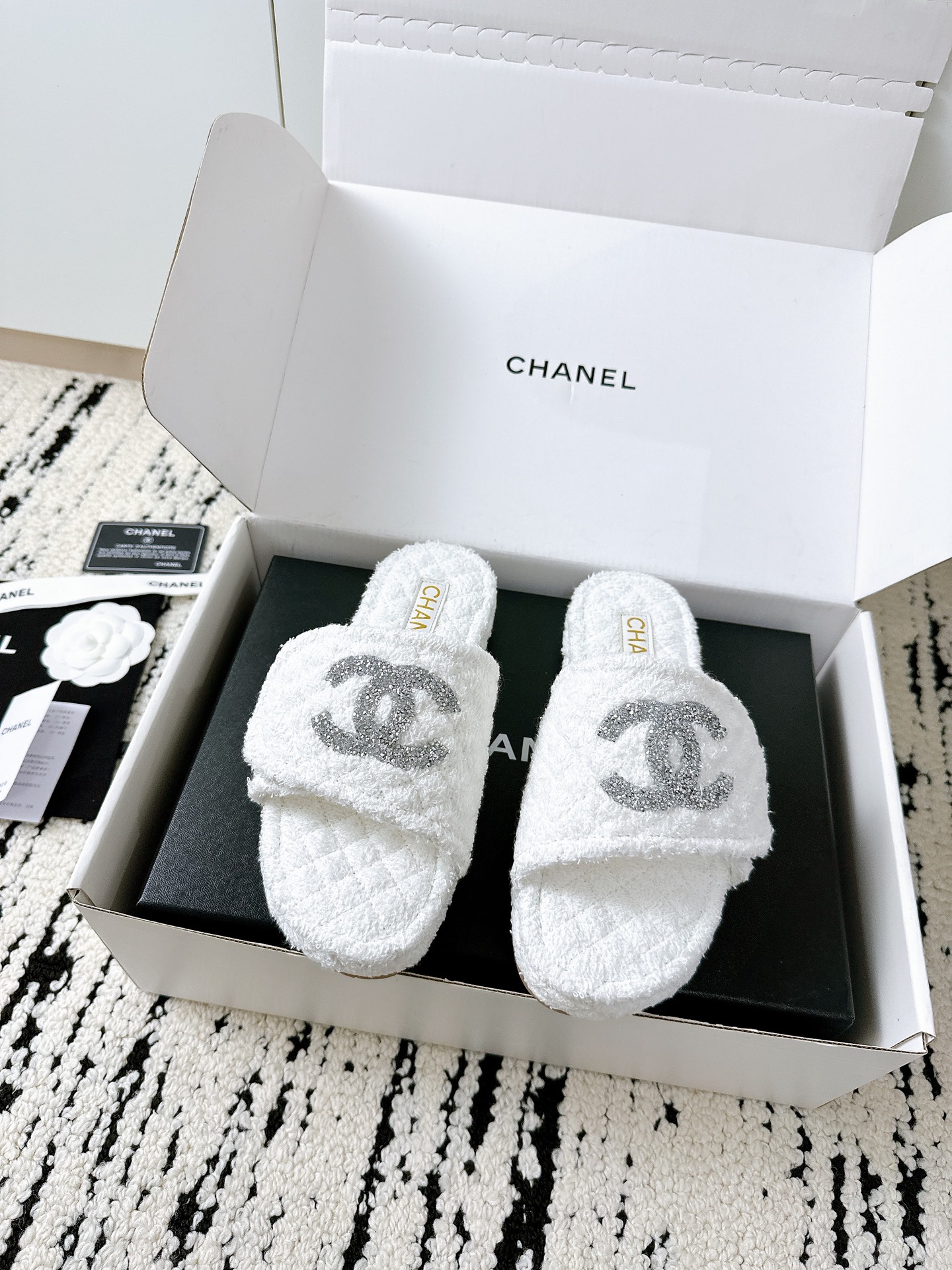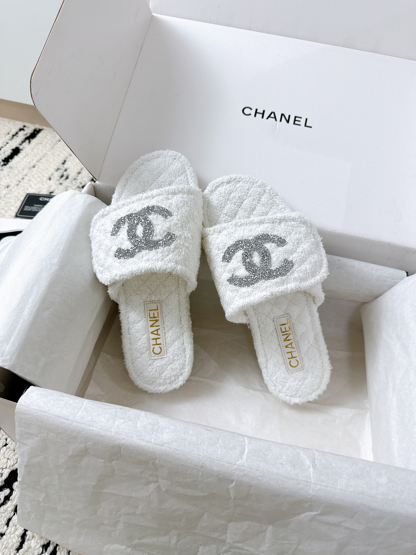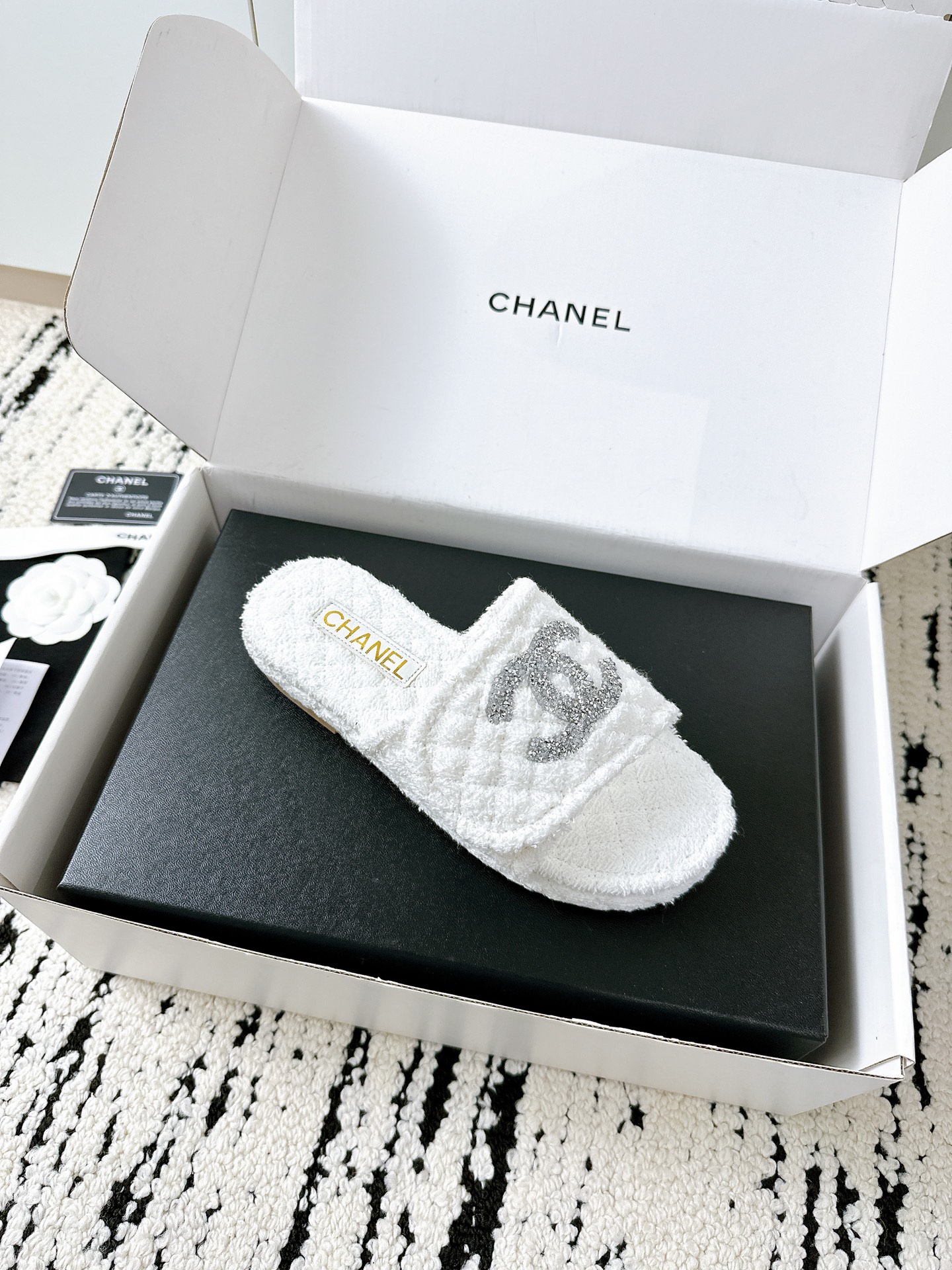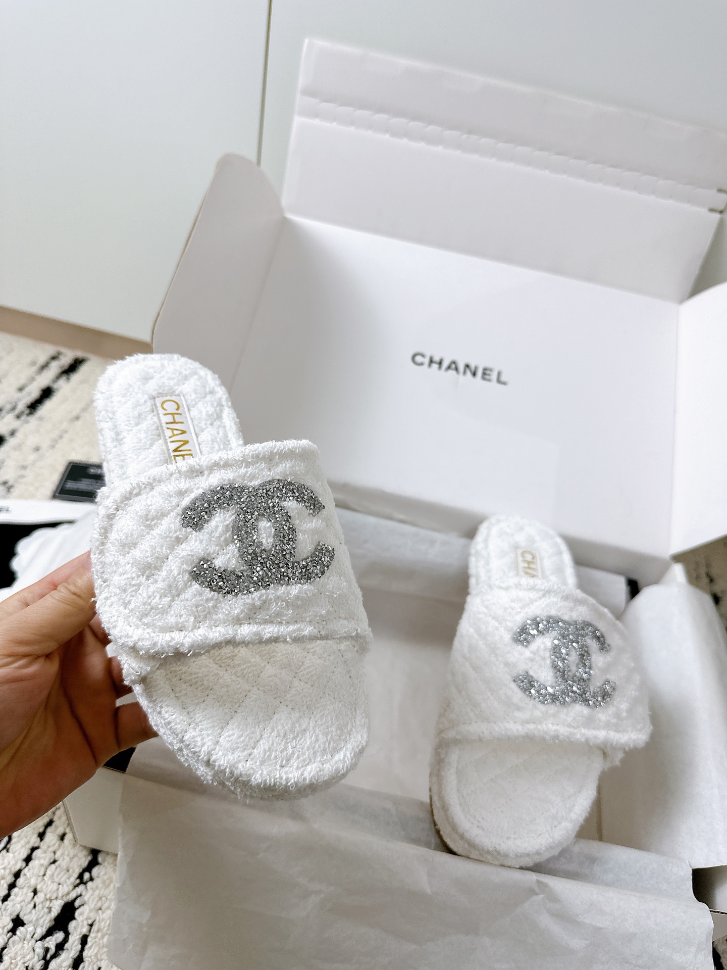 這款鞋子是AAAAA 1:1 質量(非常棒). 使用了和原版一模一樣的材料. 商標部分也保持了和香奈兒/Chanel一樣. 圖片拍攝是實物鞋子拍攝, 您所收到的實物保證和我們圖片一模一樣.