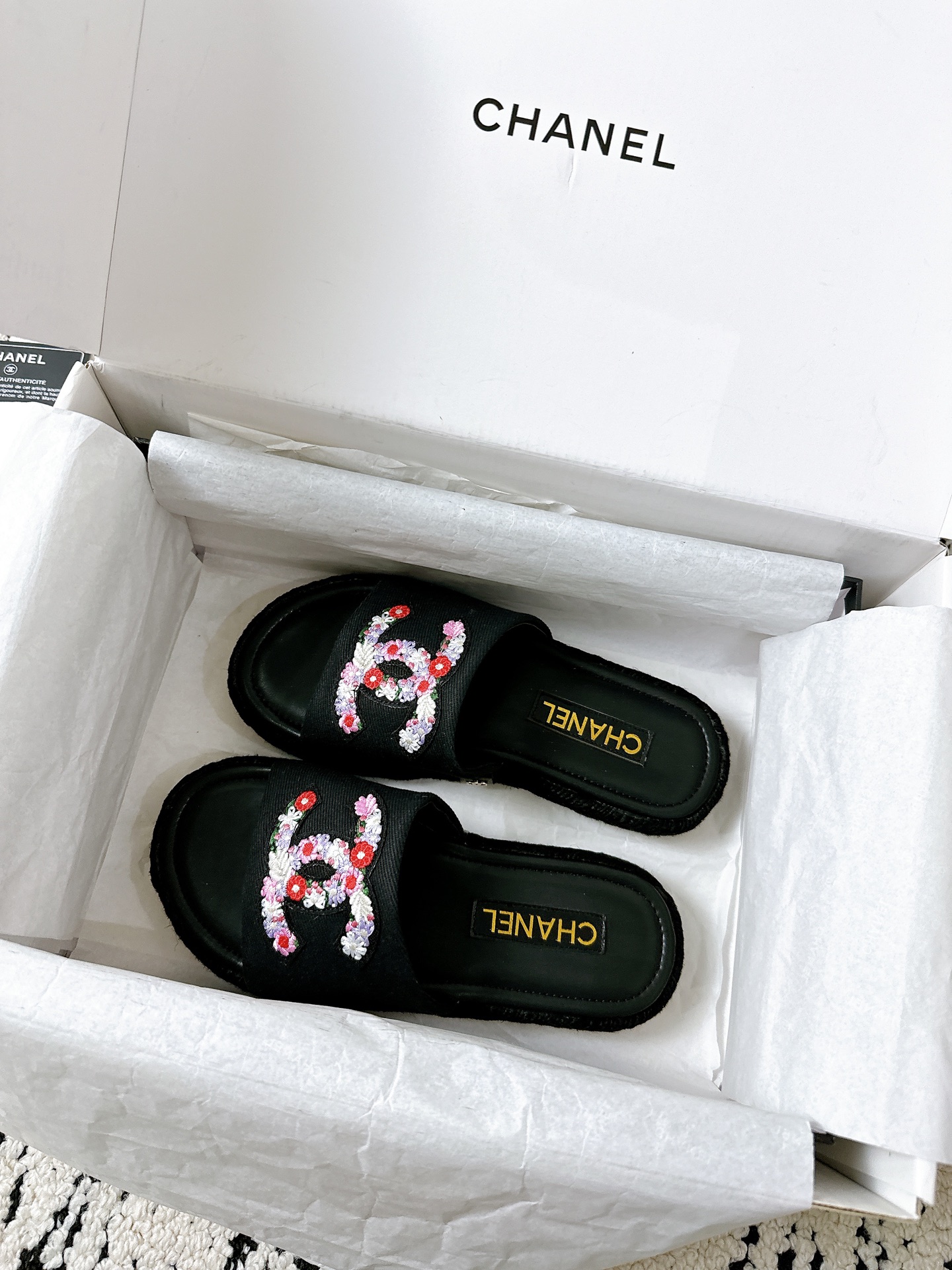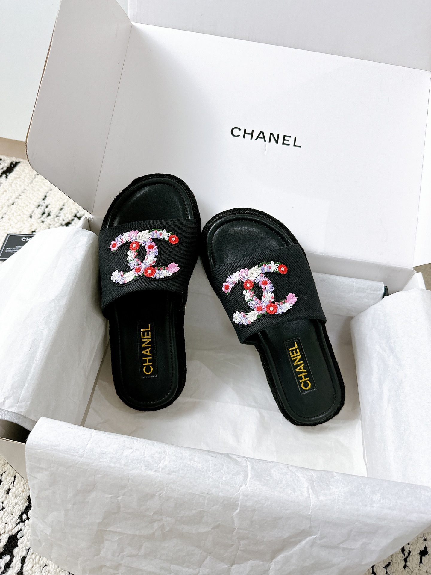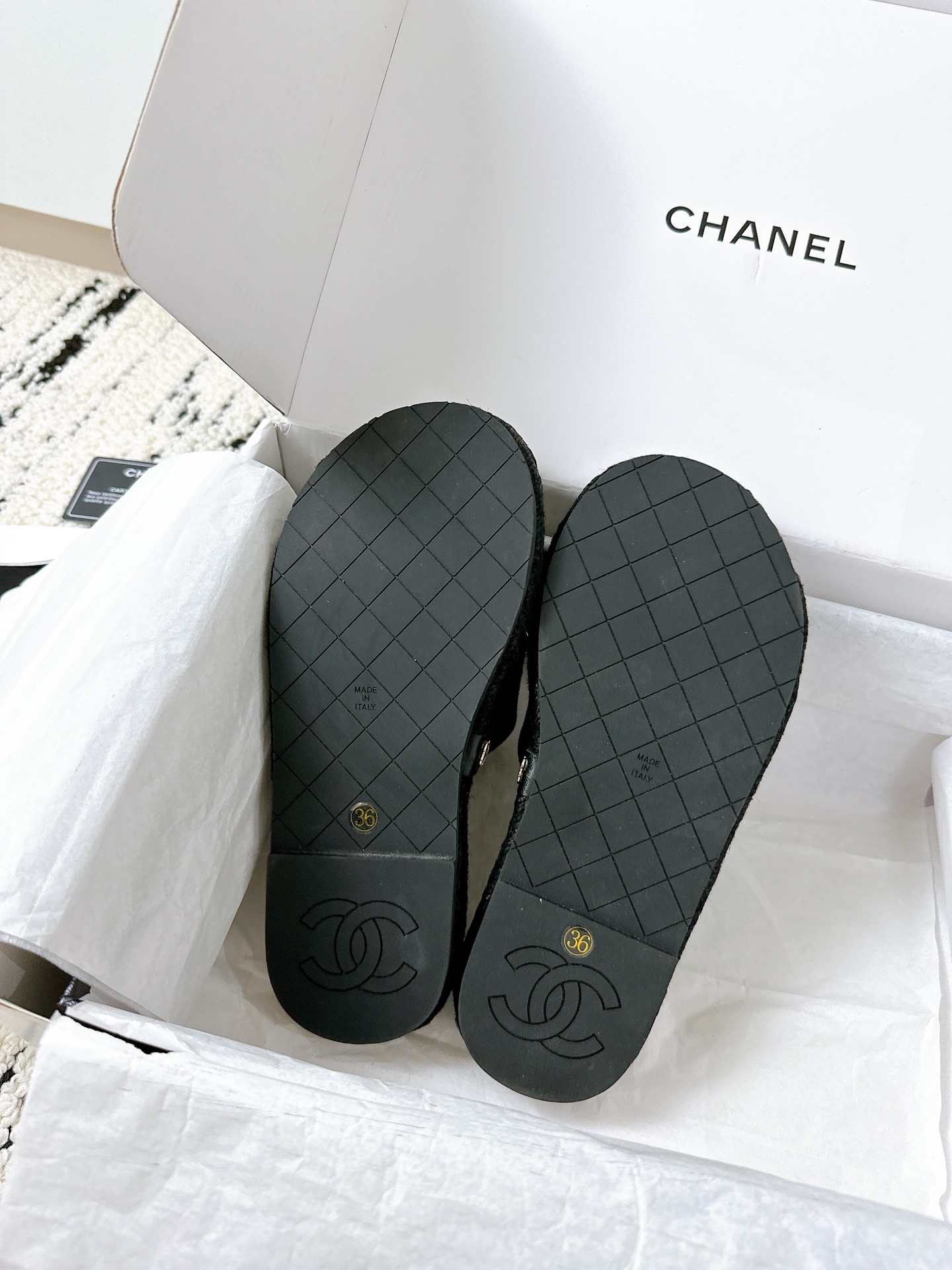 這款鞋子是AAAAA 1:1 質量(非常棒). 使用了和原版一模一樣的材料. 商標部分也保持了和香奈兒/Chanel一樣. 圖片拍攝是實物鞋子拍攝, 您所收到的實物保證和我們圖片一模一樣.