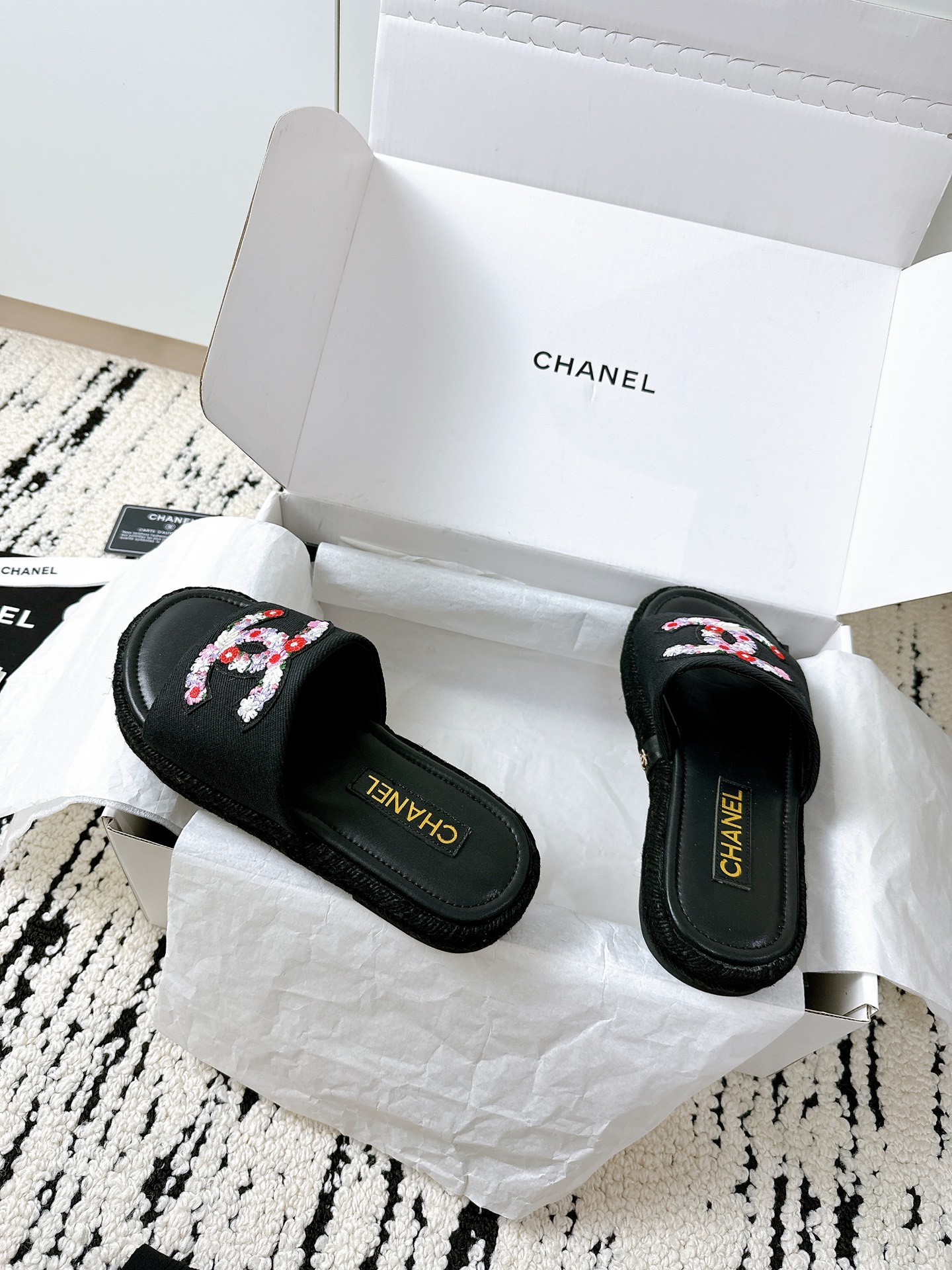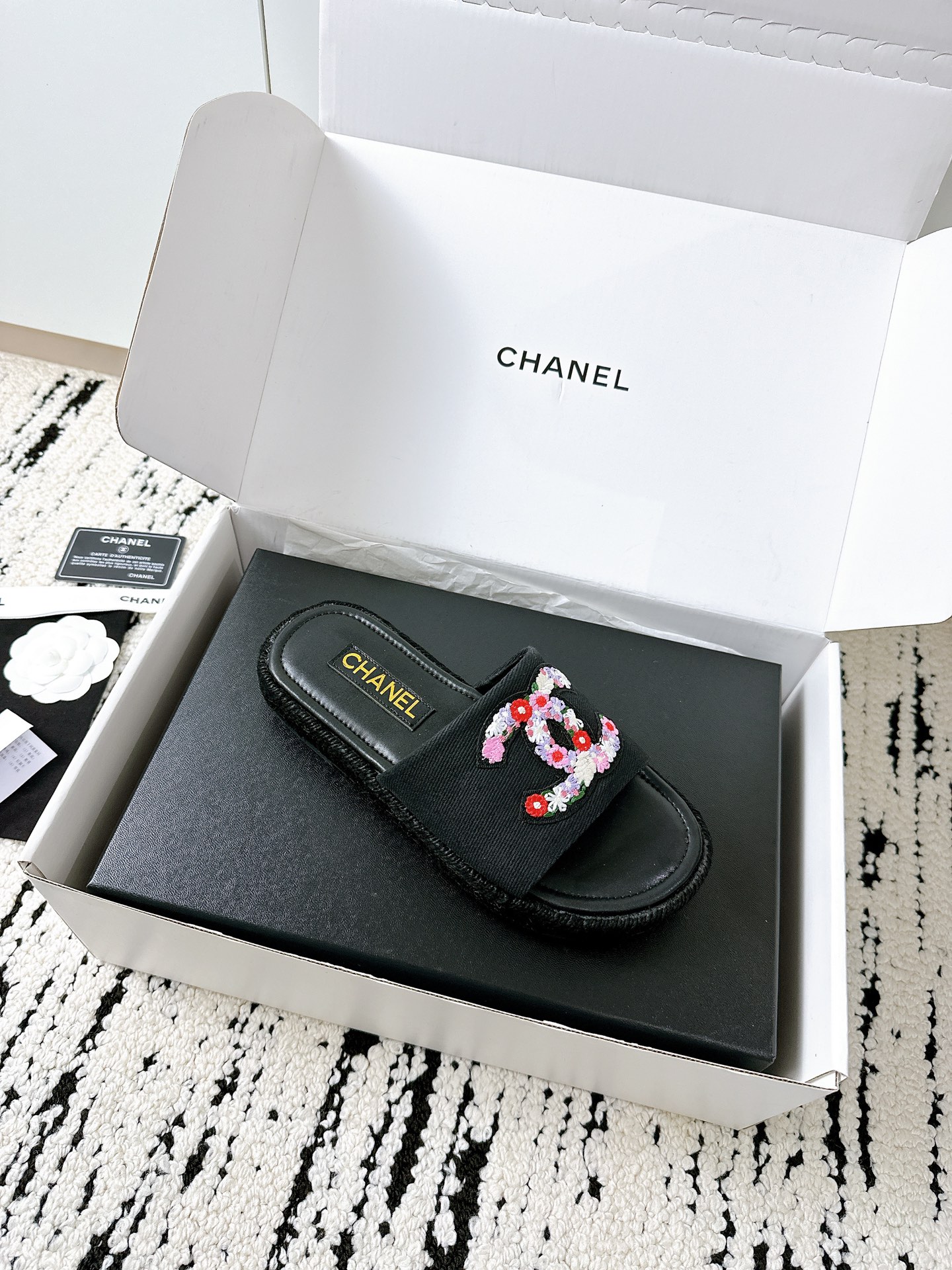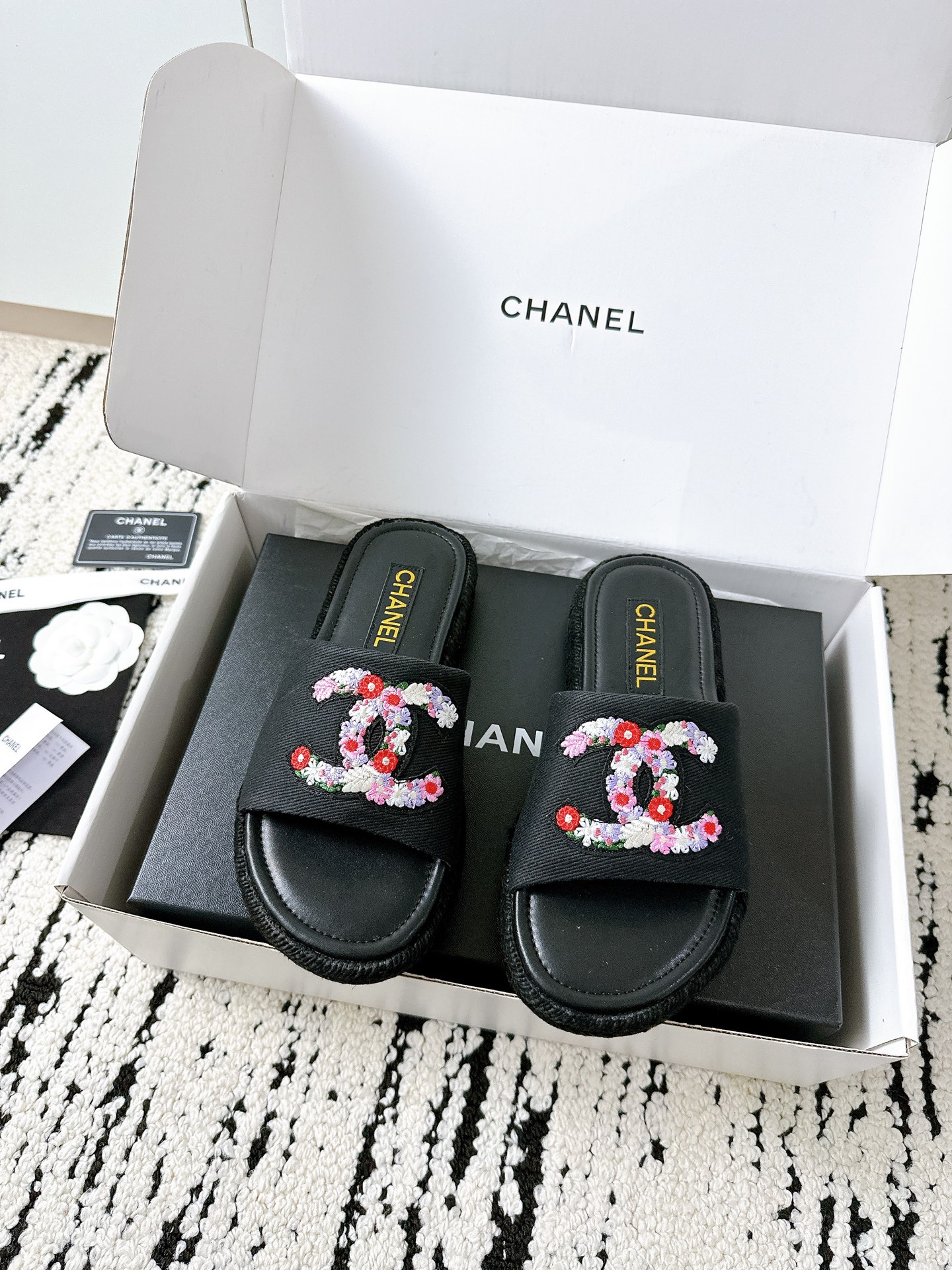 這款鞋子是AAAAA 1:1 質量(非常棒). 使用了和原版一模一樣的材料. 商標部分也保持了和香奈兒/Chanel一樣. 圖片拍攝是實物鞋子拍攝, 您所收到的實物保證和我們圖片一模一樣.