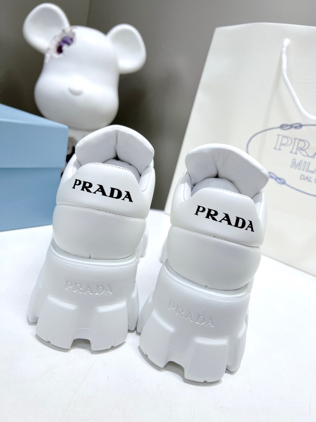 這款鞋子是AAAAA 1:1 質量(非常棒). 使用了和原版一模一樣的材料. 商標部分也保持了和普拉達/Prada一樣. 圖片拍攝是實物鞋子拍攝, 您所收到的實物保證和我們圖片一模一樣.