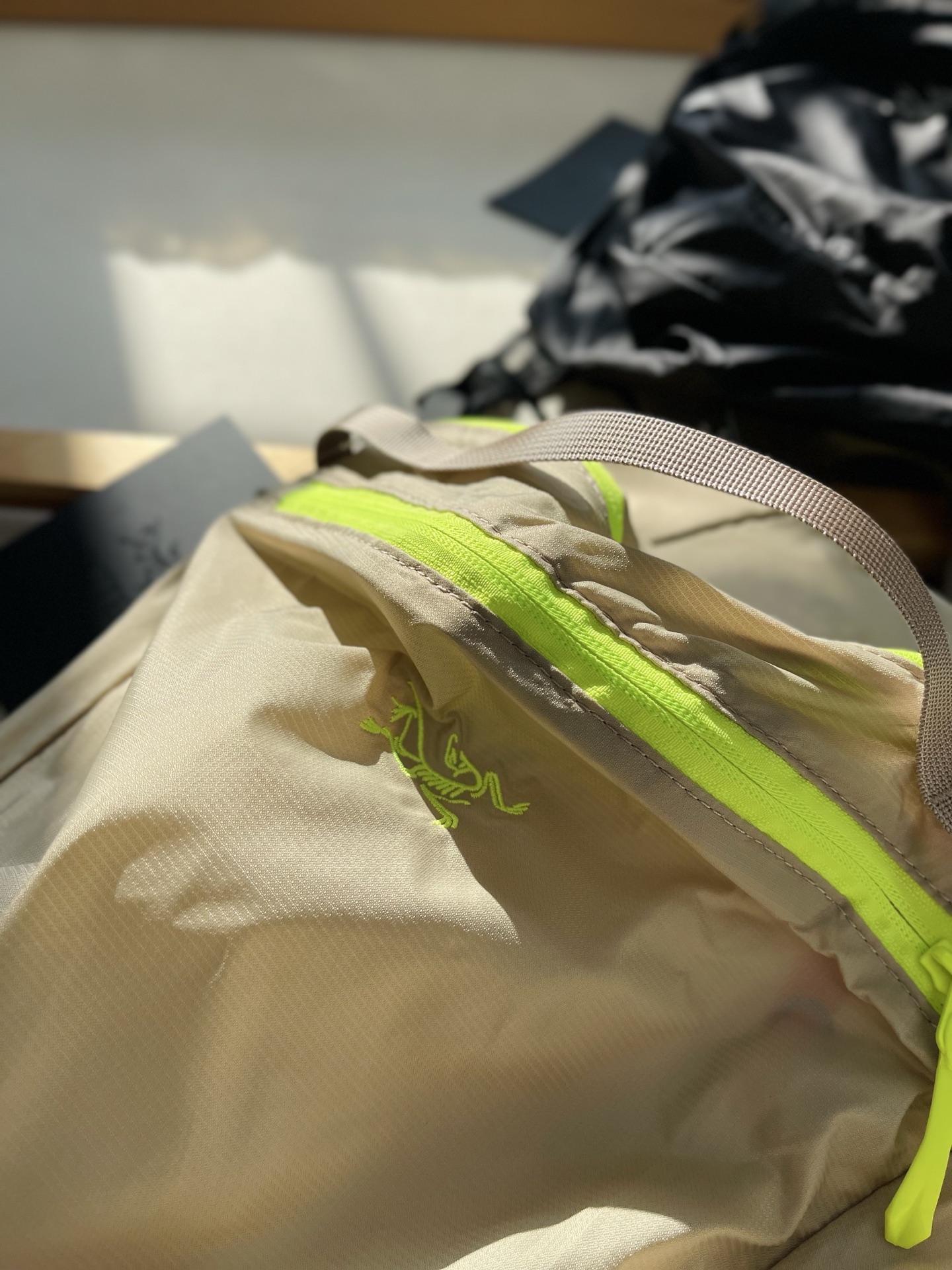 這款衣服是AAAAA 1:1 質量(非常棒). 使用了和原版一模一樣的材料. 商標部分也保持了和ARC'TERYX一樣. 圖片拍攝是實物衣服拍攝, 您所收到的實物保證和我們圖片一模一樣.