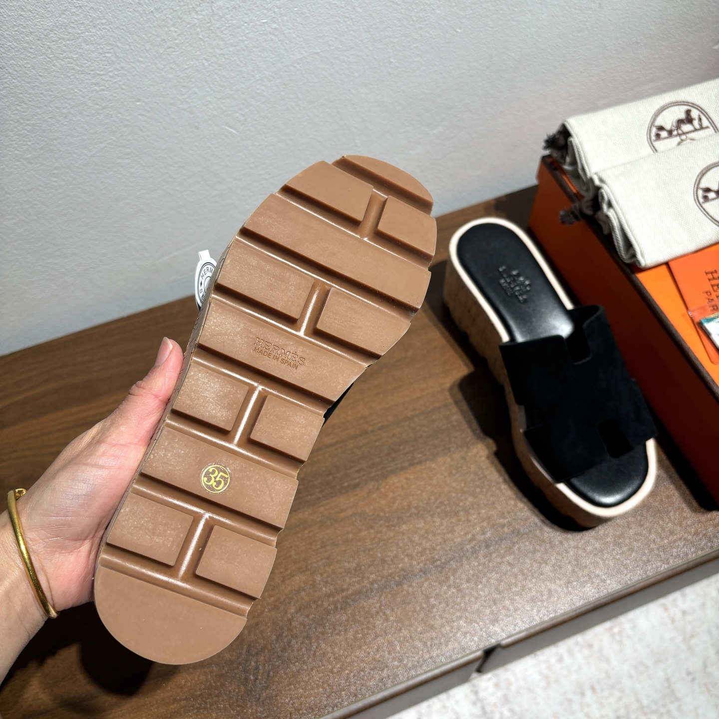 這款鞋子是AAAAA 1:1 質量(非常棒). 使用了和原版一模一樣的材料. 商標部分也保持了和愛馬仕/Hermes一樣. 圖片拍攝是實物鞋子拍攝, 您所收到的實物保證和我們圖片一模一樣.