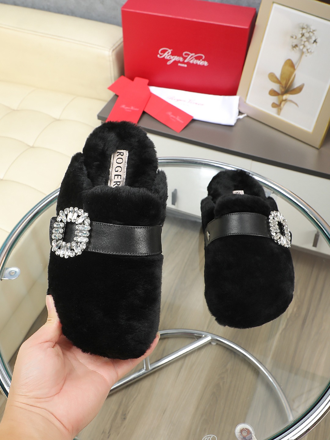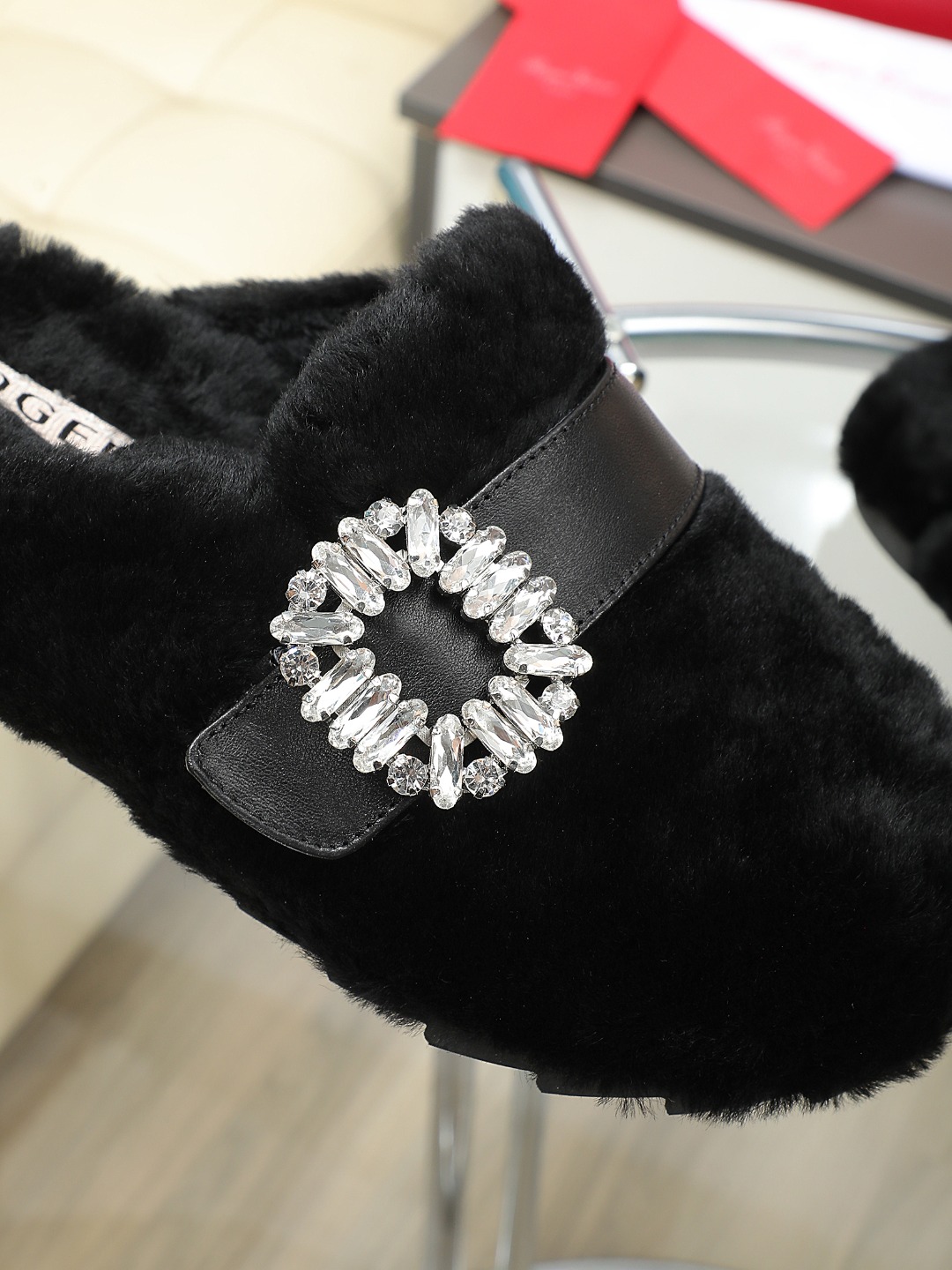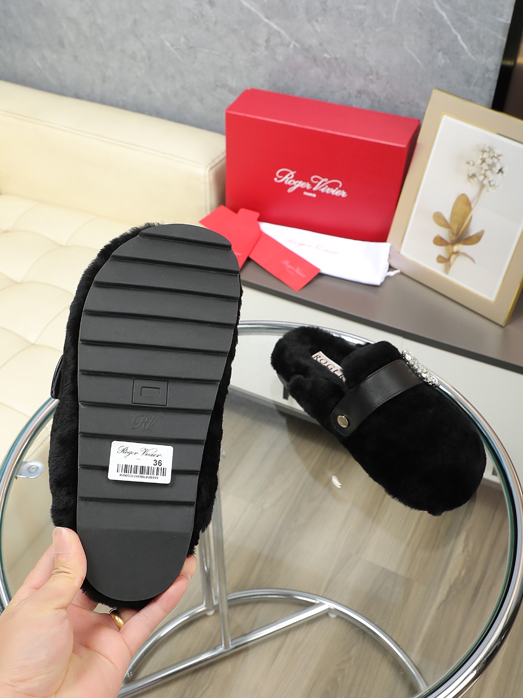 這款鞋子是AAAAA 1:1 質量(非常棒). 使用了和原版一模一樣的材料. 商標部分也保持了和羅傑維維耶/Roger Vivier一樣. 圖片拍攝是實物鞋子拍攝, 您所收到的實物保證和我們圖片一模一樣.