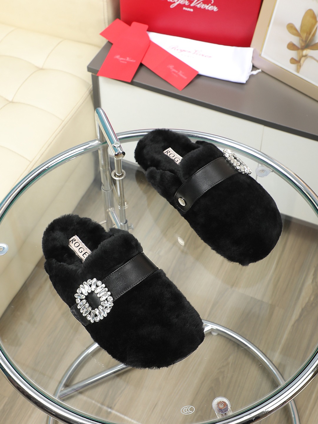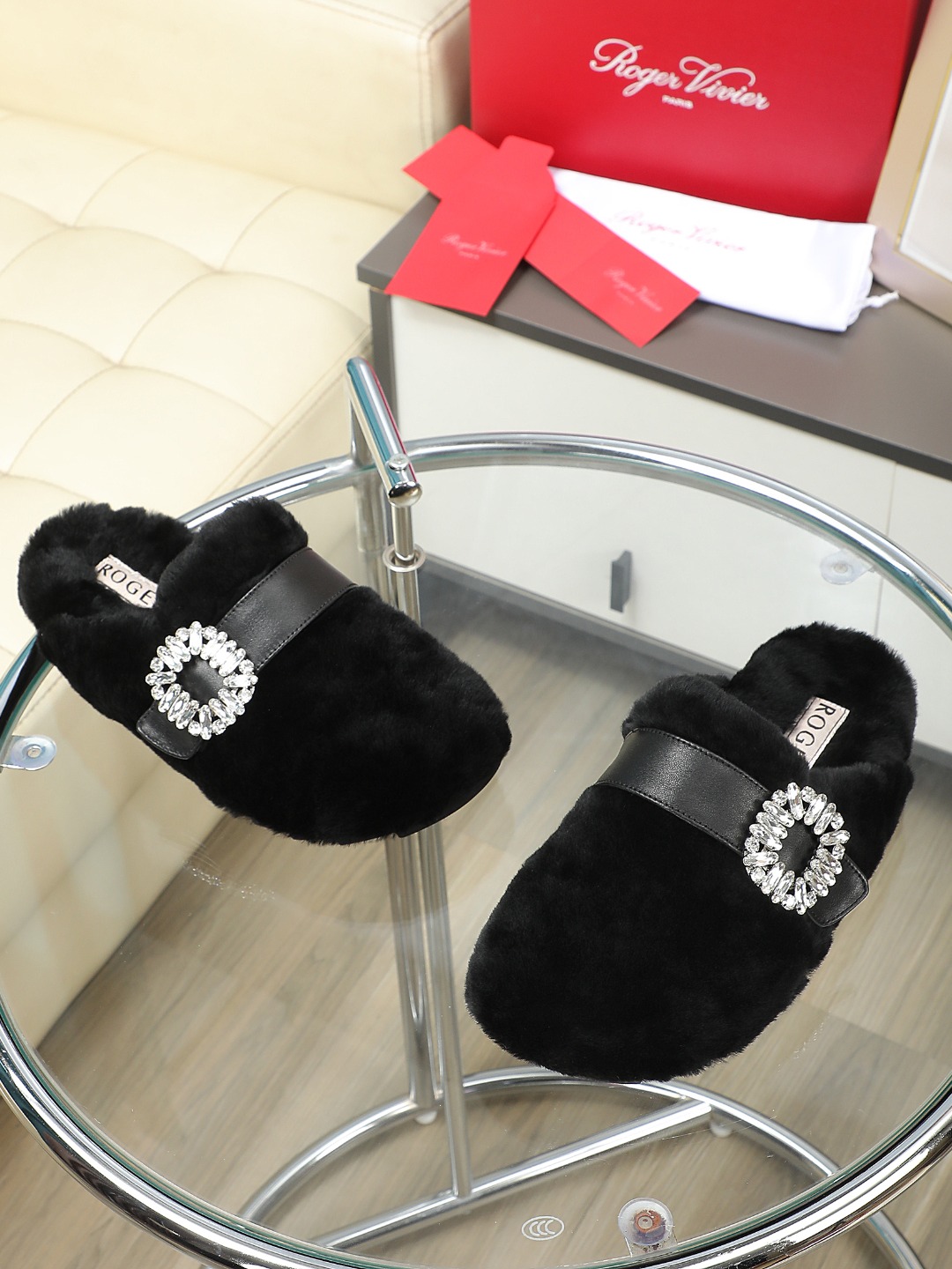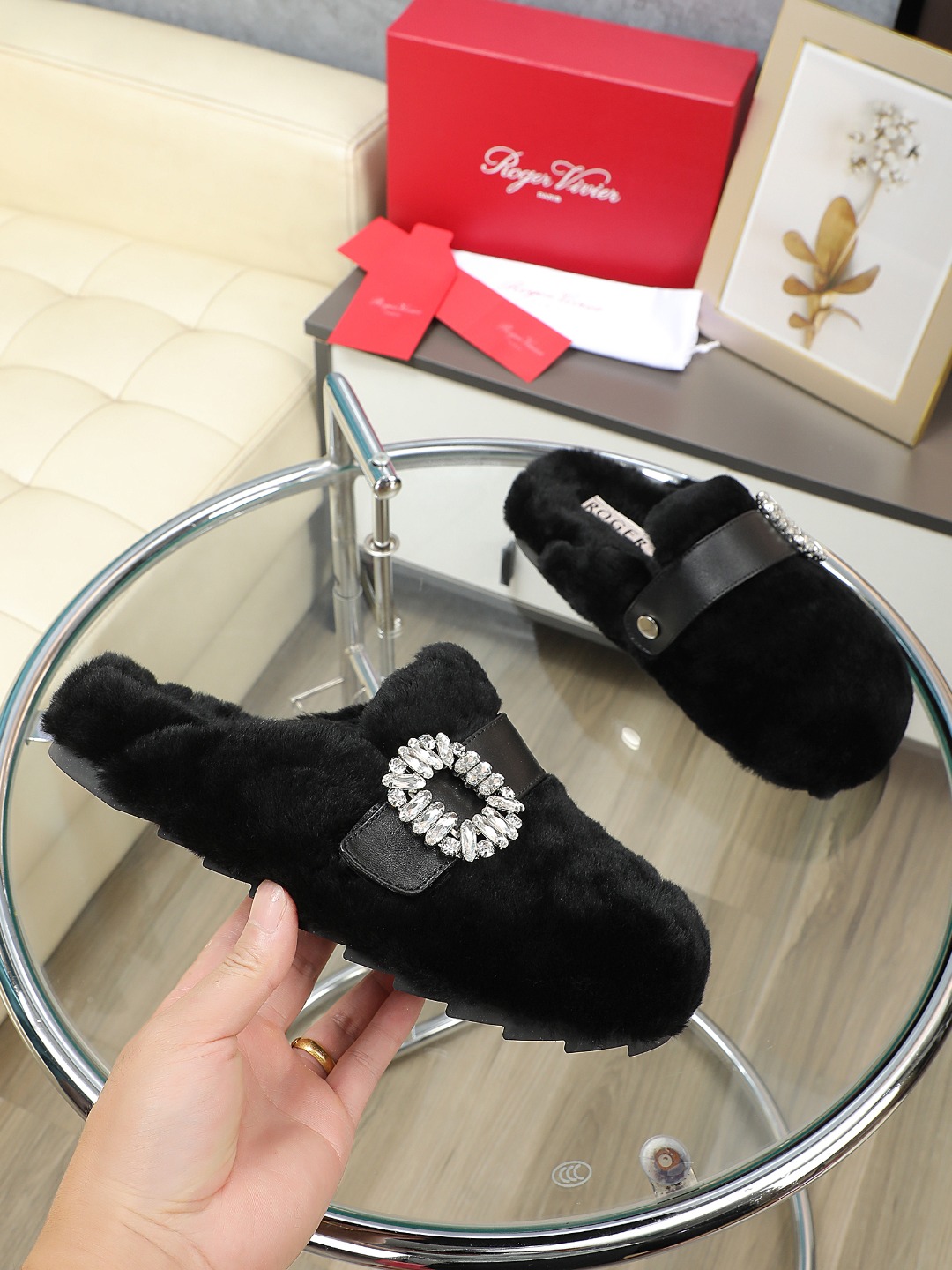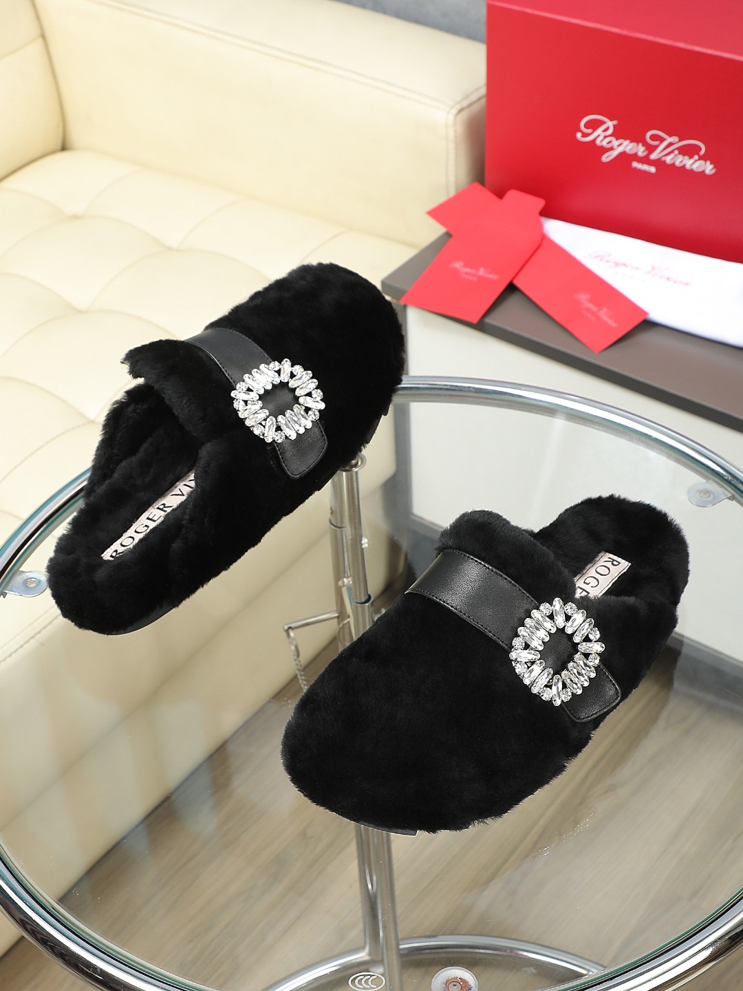 這款鞋子是AAAAA 1:1 質量(非常棒). 使用了和原版一模一樣的材料. 商標部分也保持了和羅傑維維耶/Roger Vivier一樣. 圖片拍攝是實物鞋子拍攝, 您所收到的實物保證和我們圖片一模一樣.
