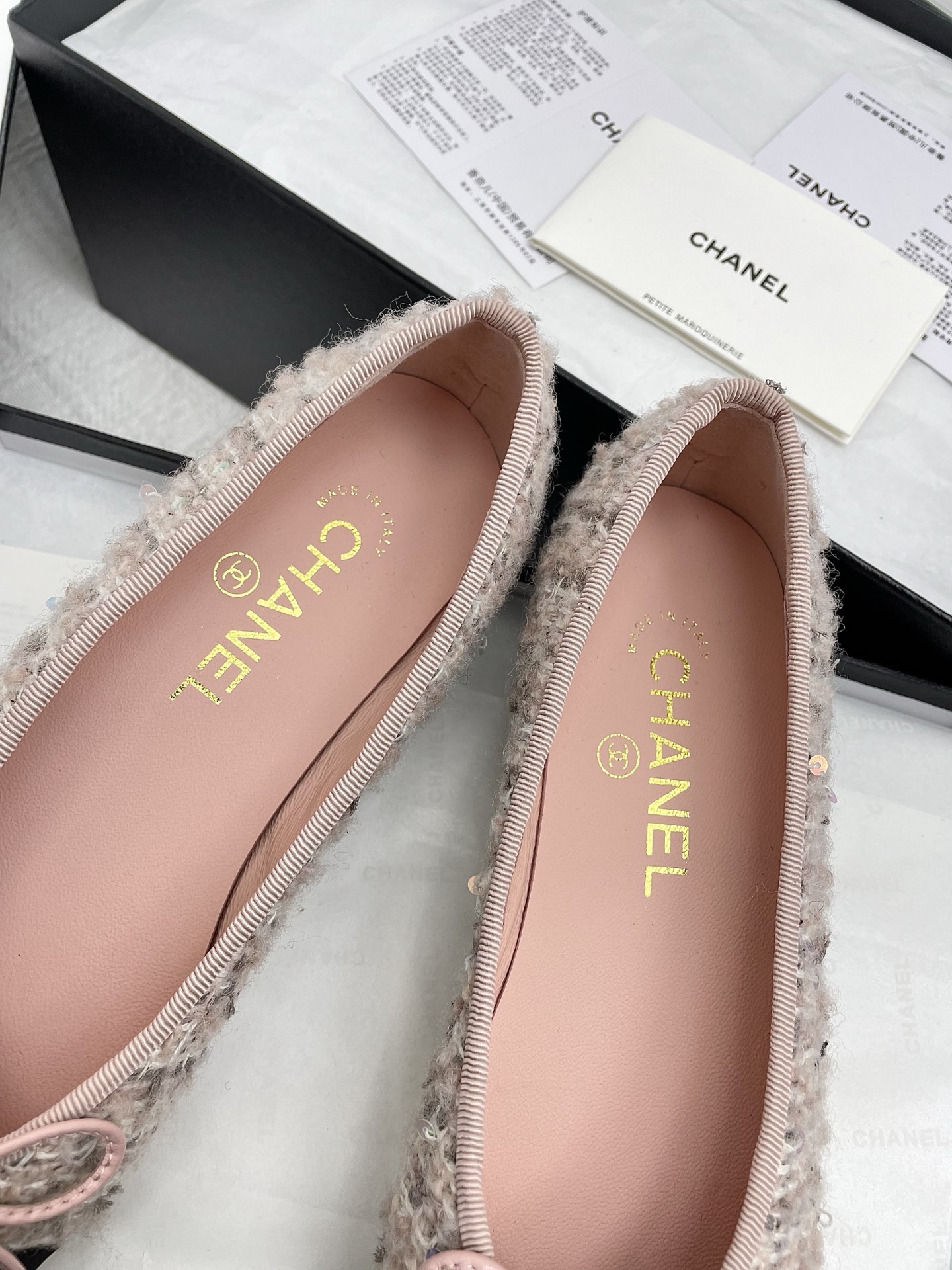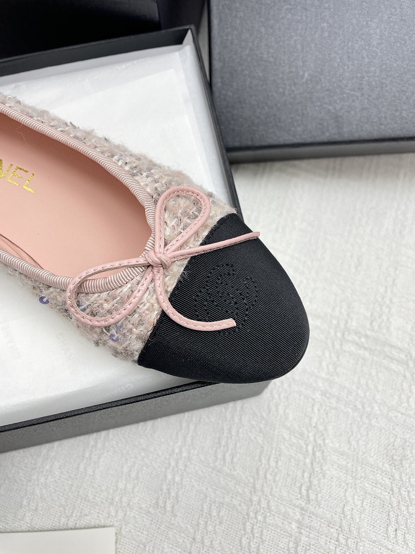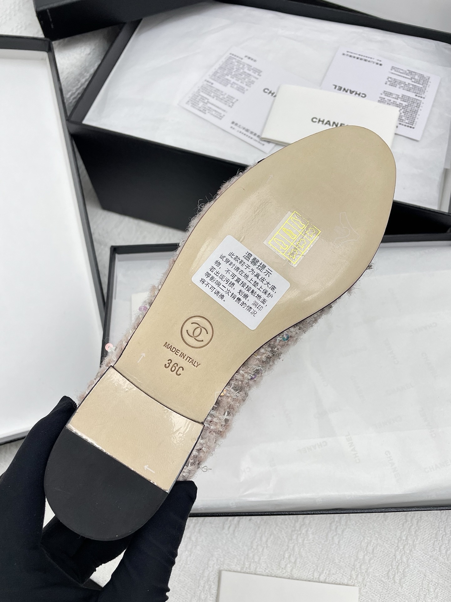 這款鞋子是AAAAA 1:1 質量(非常棒). 使用了和原版一模一樣的材料. 商標部分也保持了和香奈兒/Chanel一樣. 圖片拍攝是實物鞋子拍攝, 您所收到的實物保證和我們圖片一模一樣.