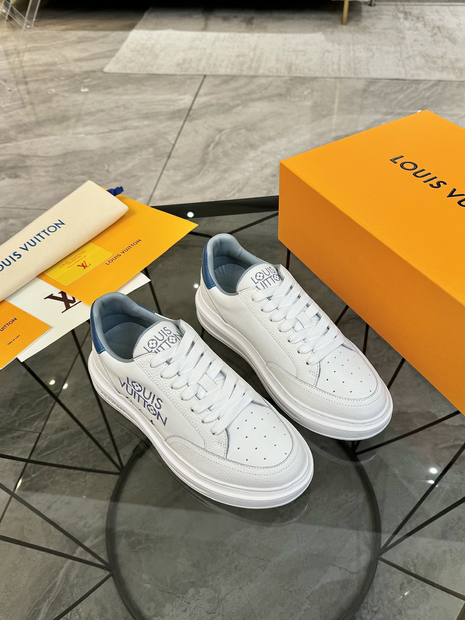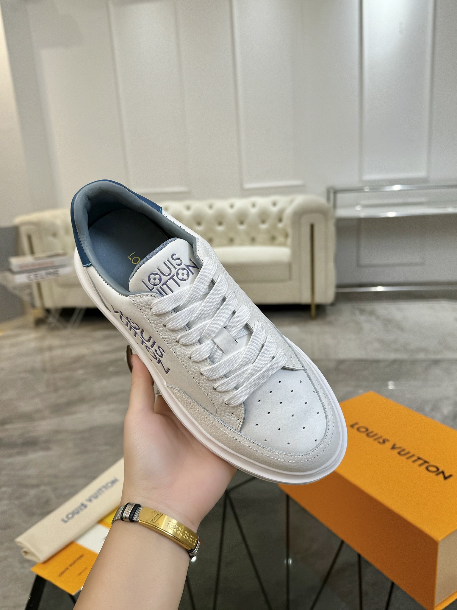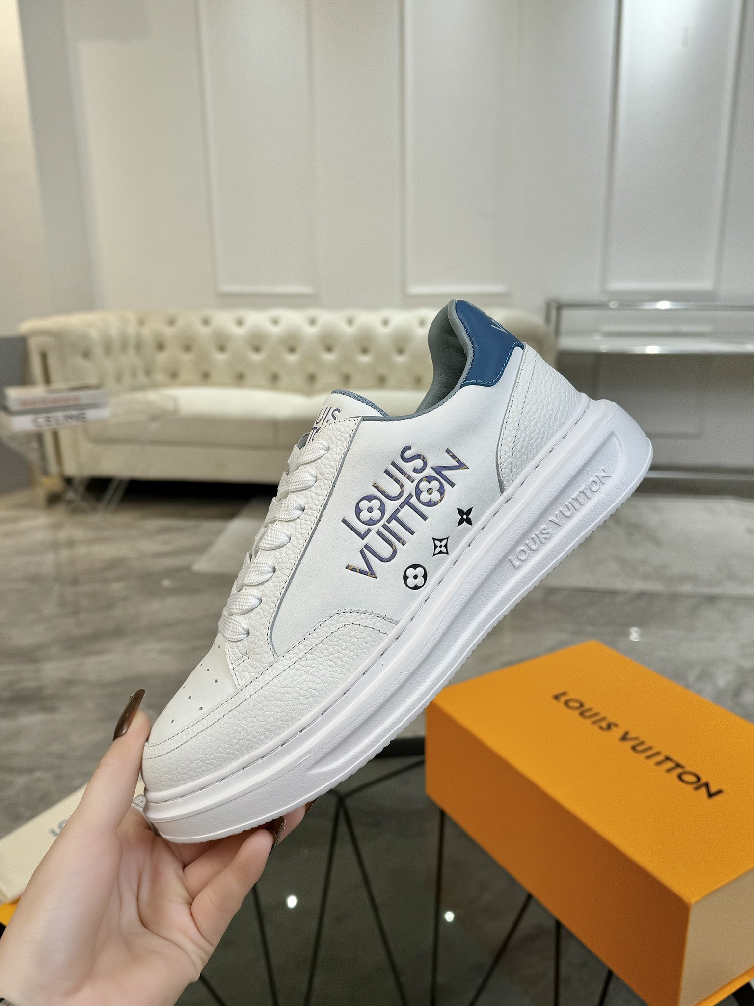 這款鞋子是AAAAA 1:1 質量(非常棒). 使用了和原版一模一樣的材料. 商標部分也保持了和路易威登/Louis Vuitton一樣. 圖片拍攝是實物鞋子拍攝, 您所收到的實物保證和我們圖片一模一樣.