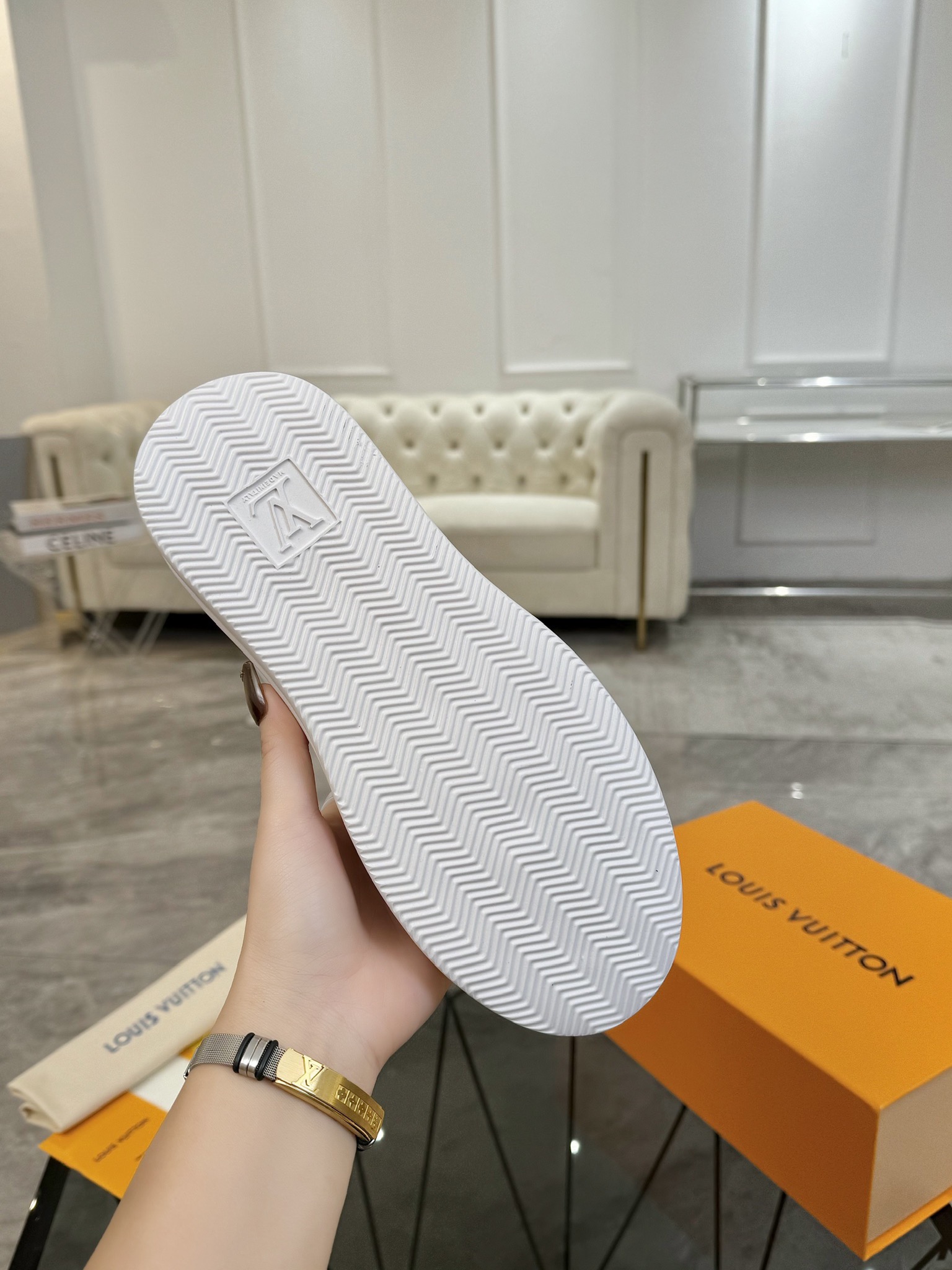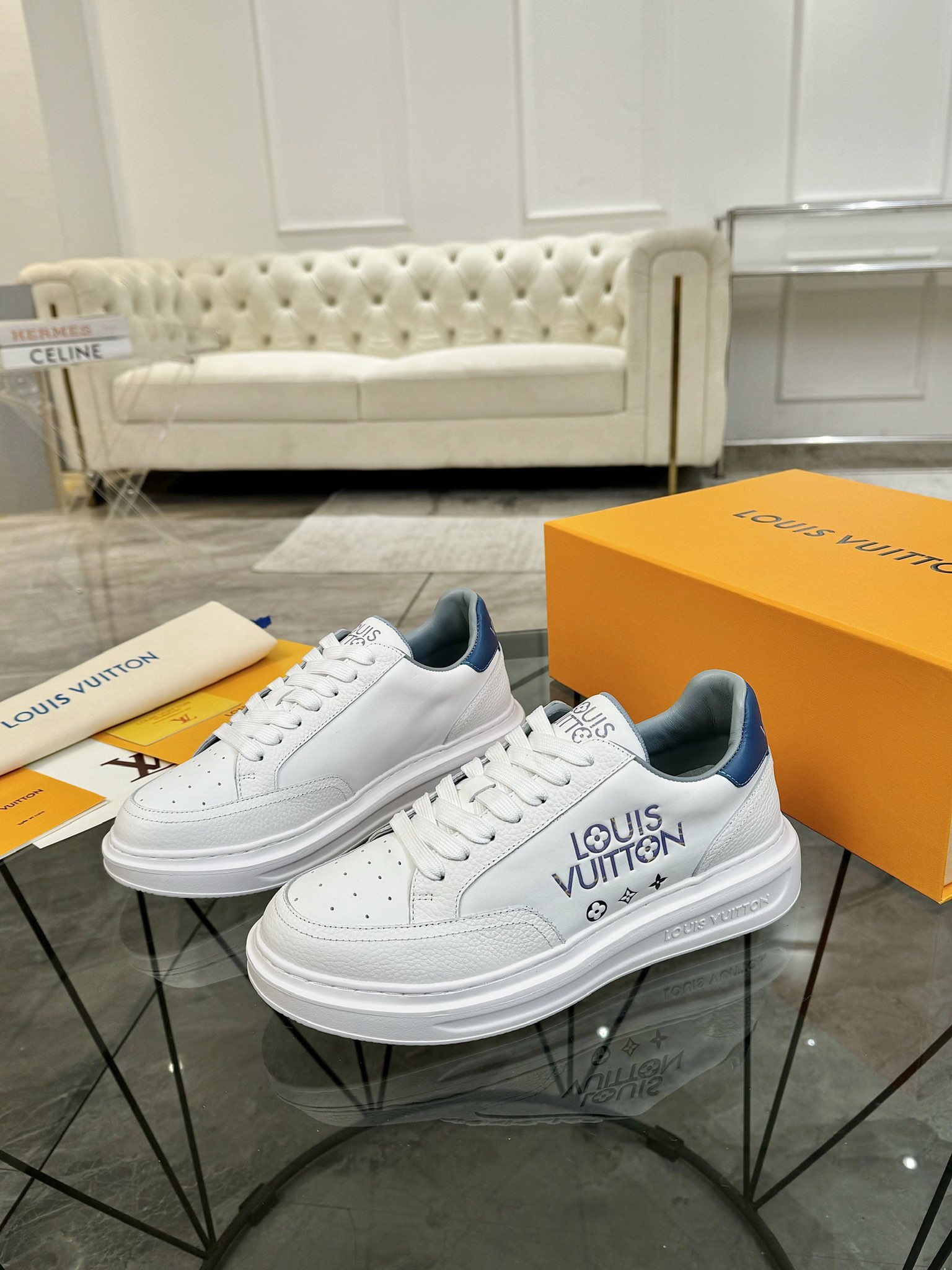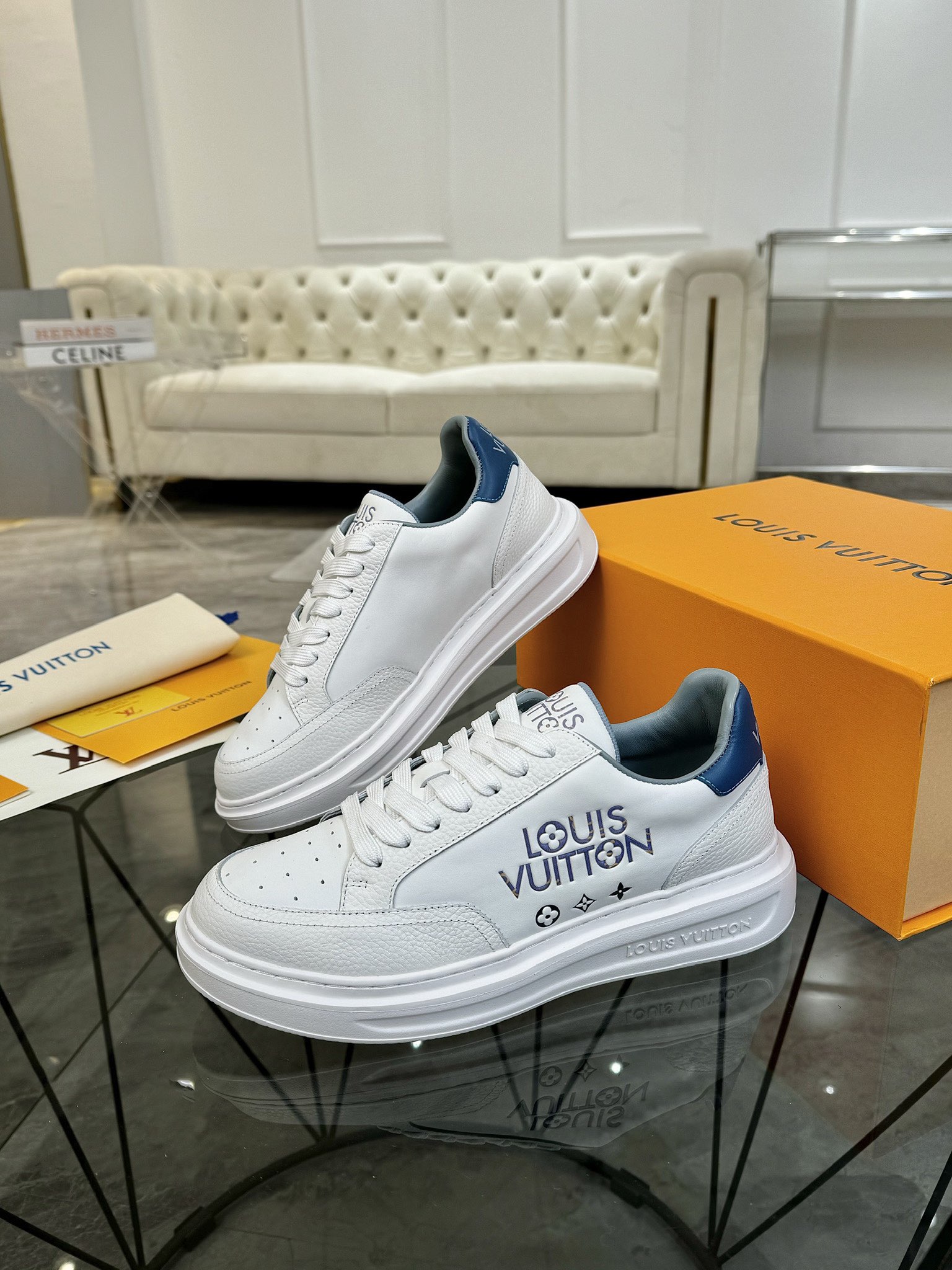 這款鞋子是AAAAA 1:1 質量(非常棒). 使用了和原版一模一樣的材料. 商標部分也保持了和路易威登/Louis Vuitton一樣. 圖片拍攝是實物鞋子拍攝, 您所收到的實物保證和我們圖片一模一樣.