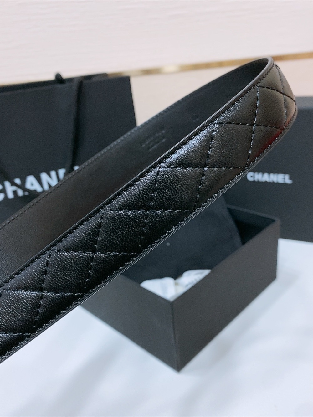這款皮帶是AAAAA 1:1 質量(非常棒). 使用了和原版一模一樣的材料. 商標部分也保持了和香奈兒/Chanel一樣. 圖片拍攝是實物皮帶拍攝, 您所收到的實物保證和我們圖片一模一樣.