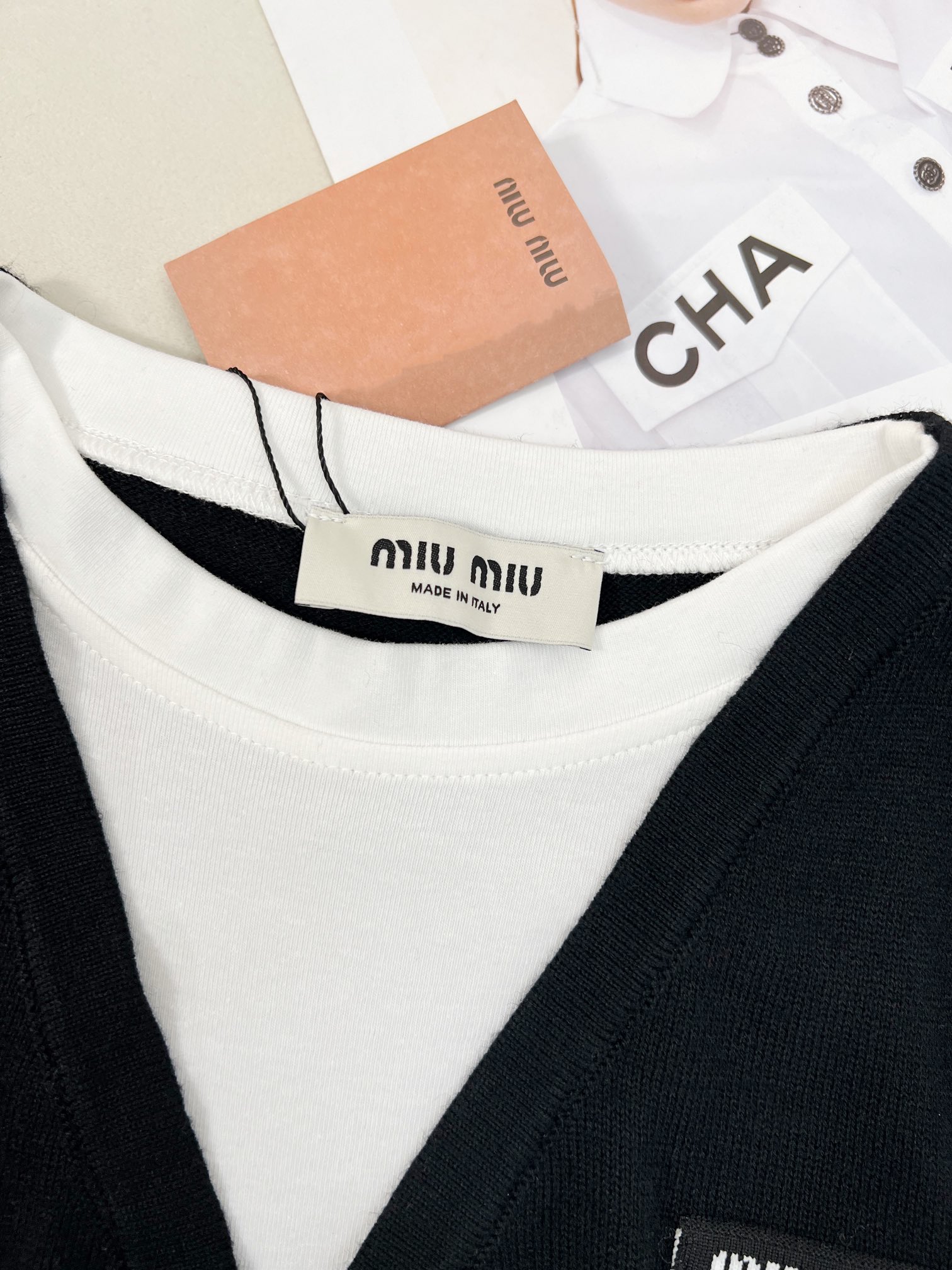 這款衣服是AAAAA 1:1 質量(非常棒). 使用了和原版一模一樣的材料. 商標部分也保持了和繆繆/Miu Miu一樣. 圖片拍攝是實物衣服拍攝, 您所收到的實物保證和我們圖片一模一樣.