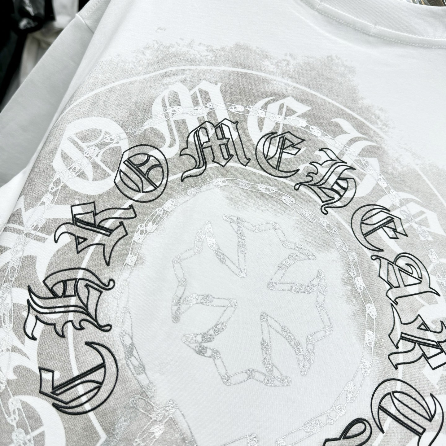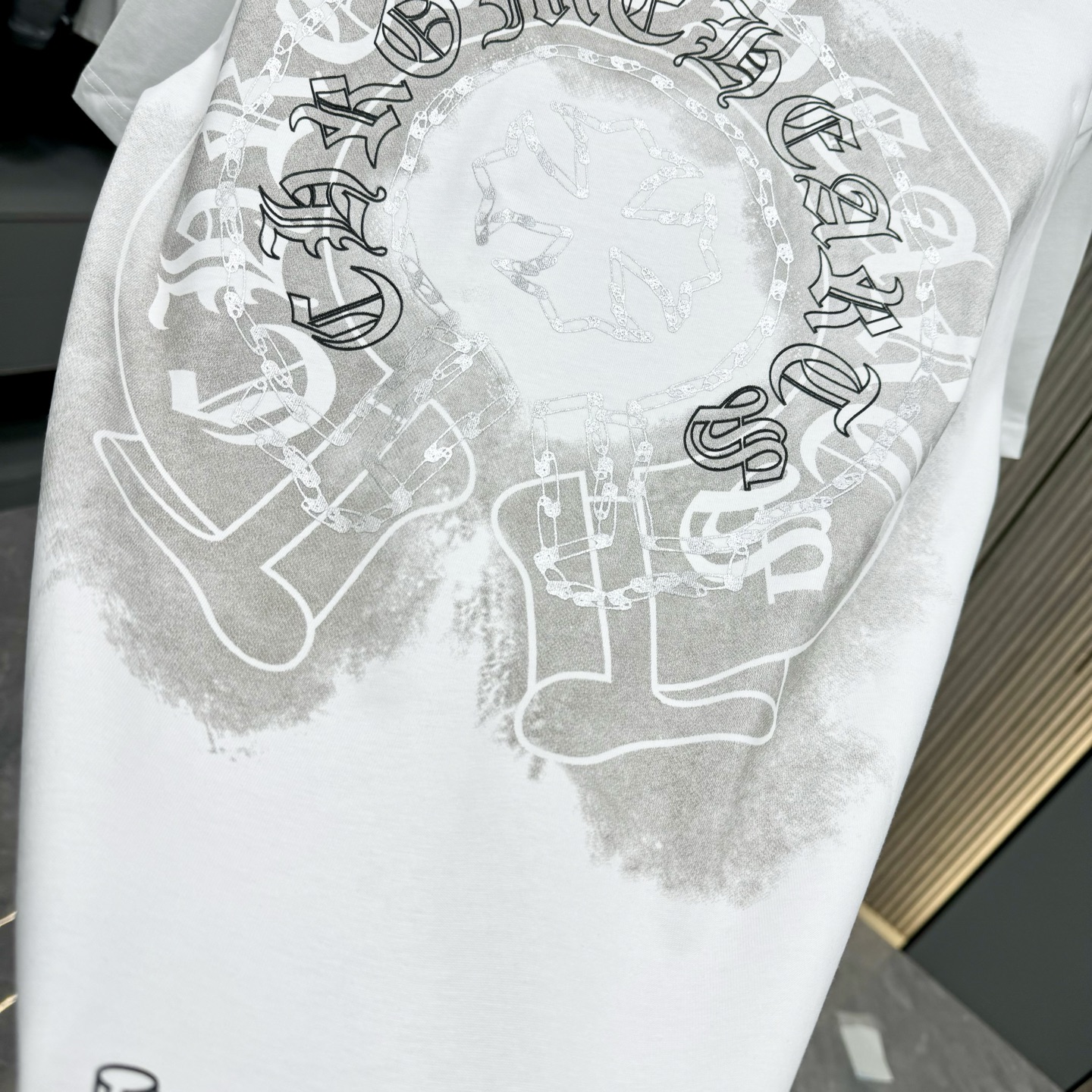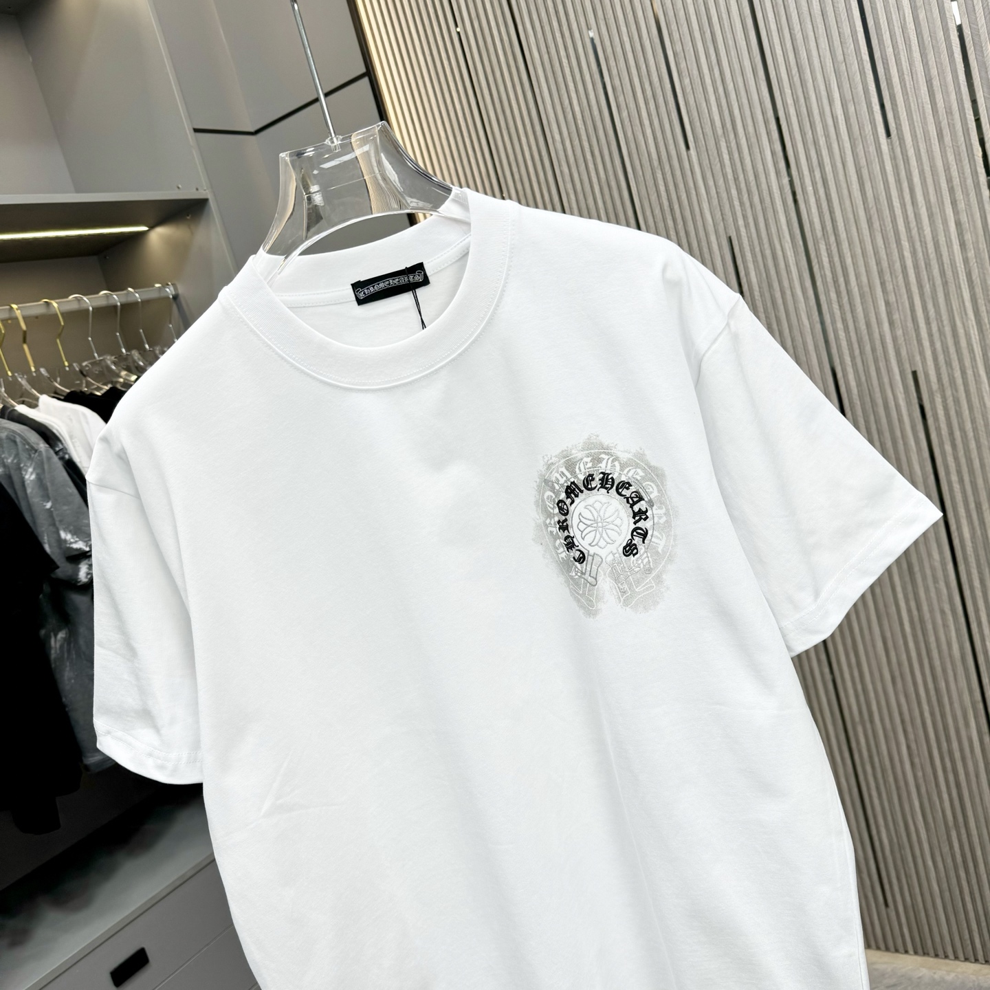 這款衣服是AAAAA 1:1 質量(非常棒). 使用了和原版一模一樣的材料. 商標部分也保持了和鉻心/Chrome Hearts一樣. 圖片拍攝是實物衣服拍攝, 您所收到的實物保證和我們圖片一模一樣.