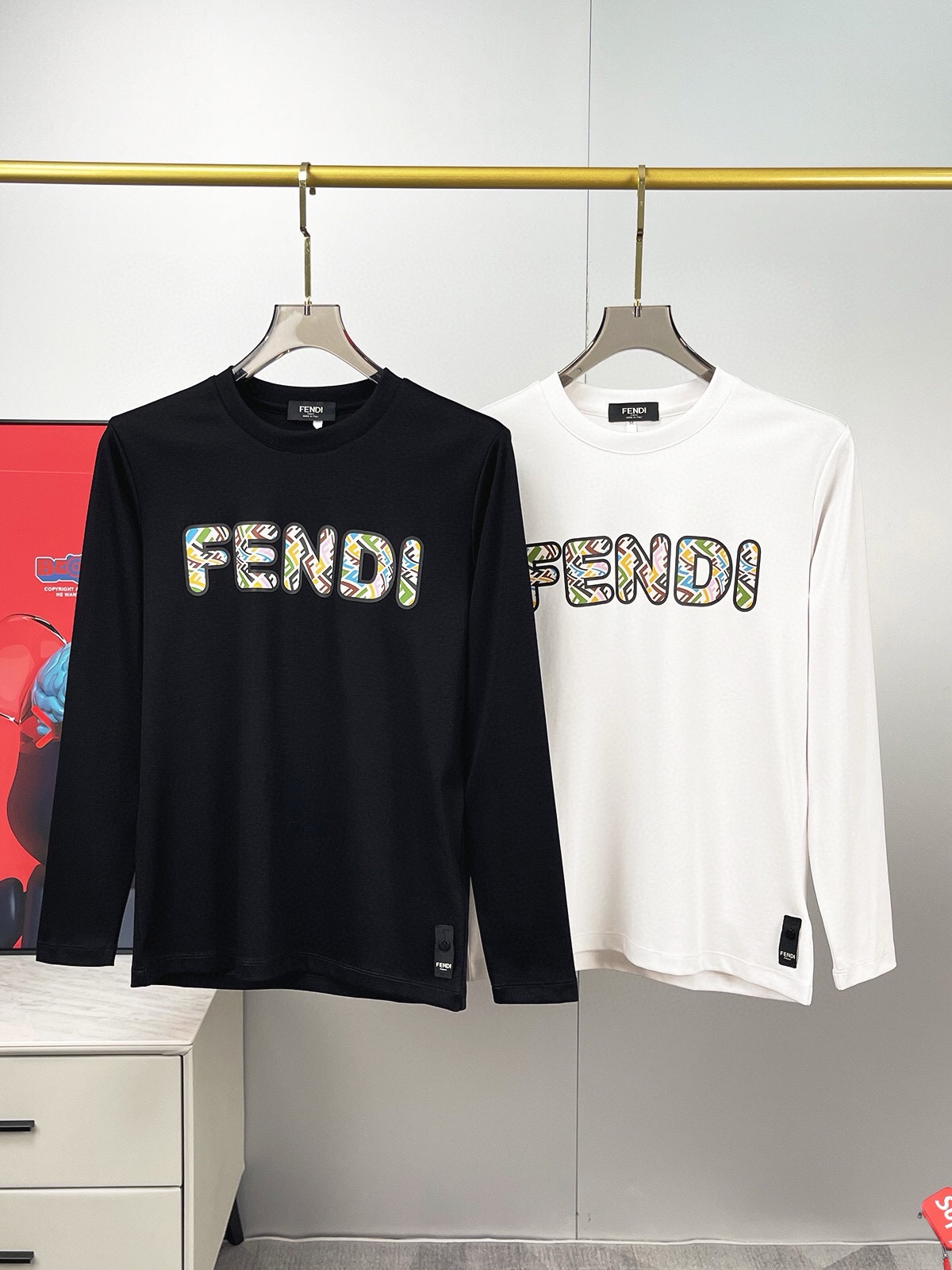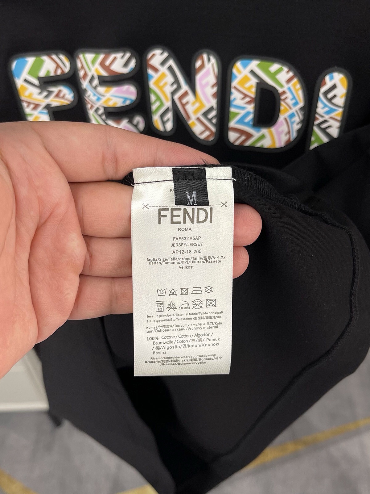 這款衣服是AAAAA 1:1 質量(非常棒). 使用了和原版一模一樣的材料. 商標部分也保持了和芬迪/Fendi一樣. 圖片拍攝是實物衣服拍攝, 您所收到的實物保證和我們圖片一模一樣.