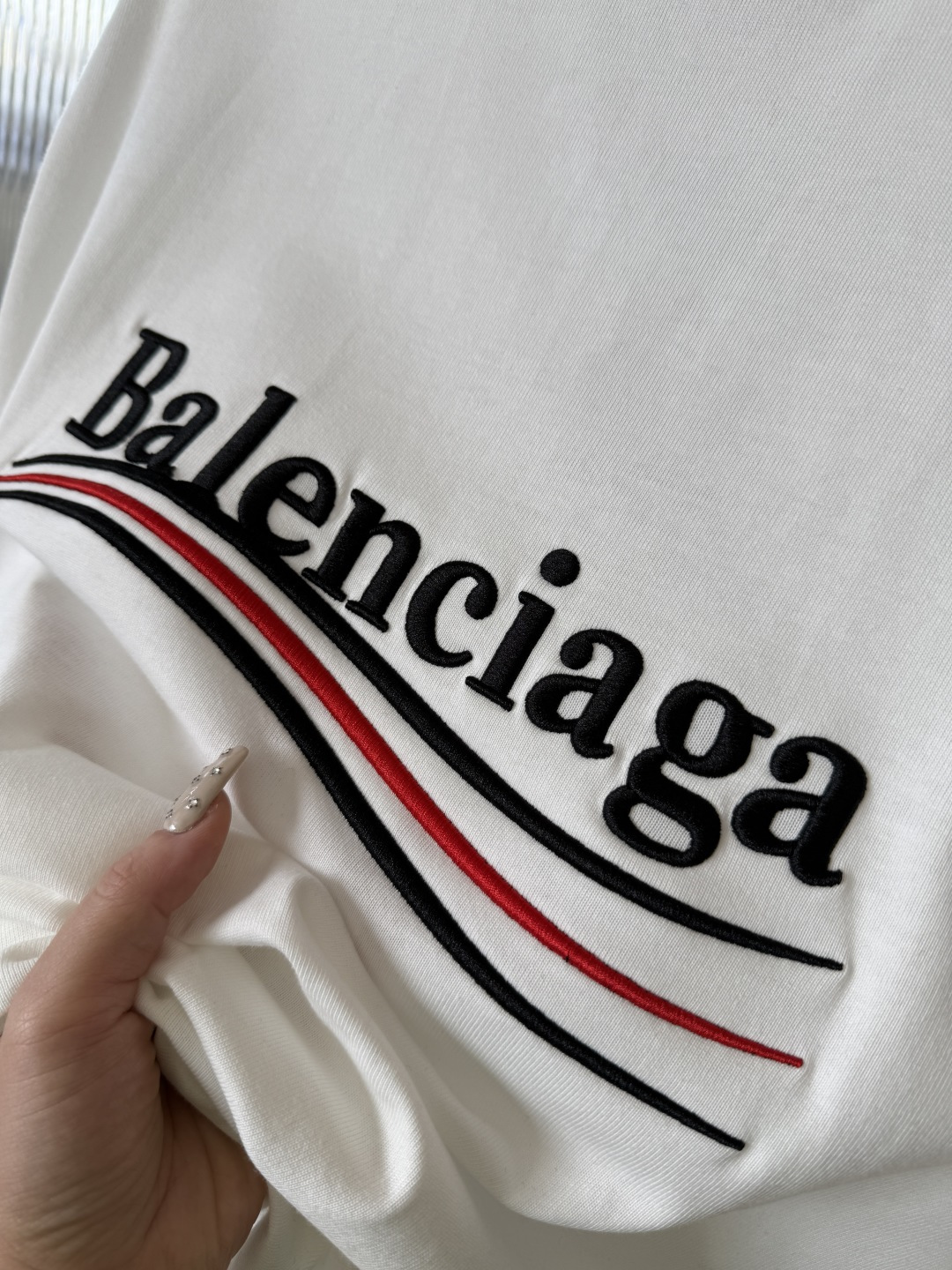 這款衣服是AAAAA 1:1 質量(非常棒). 使用了和原版一模一樣的材料. 商標部分也保持了和巴倫西亞/Balenciaga一樣. 圖片拍攝是實物衣服拍攝, 您所收到的實物保證和我們圖片一模一樣.