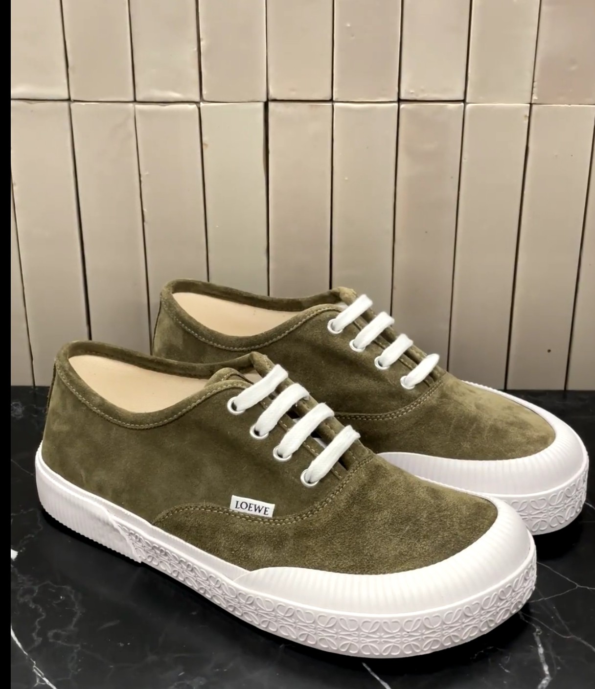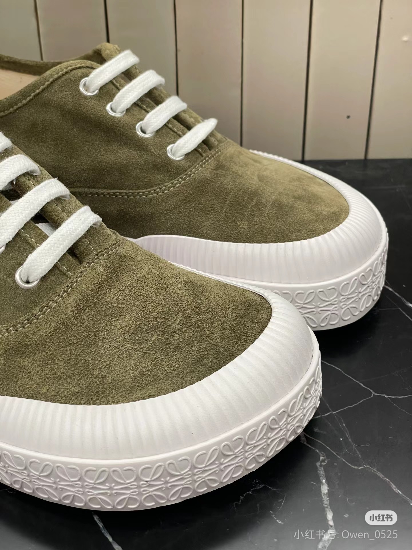 這款鞋子是AAAAA 1:1 質量(非常棒). 使用了和原版一模一樣的材料. 商標部分也保持了和Loewe一樣. 圖片拍攝是實物鞋子拍攝, 您所收到的實物保證和我們圖片一模一樣.