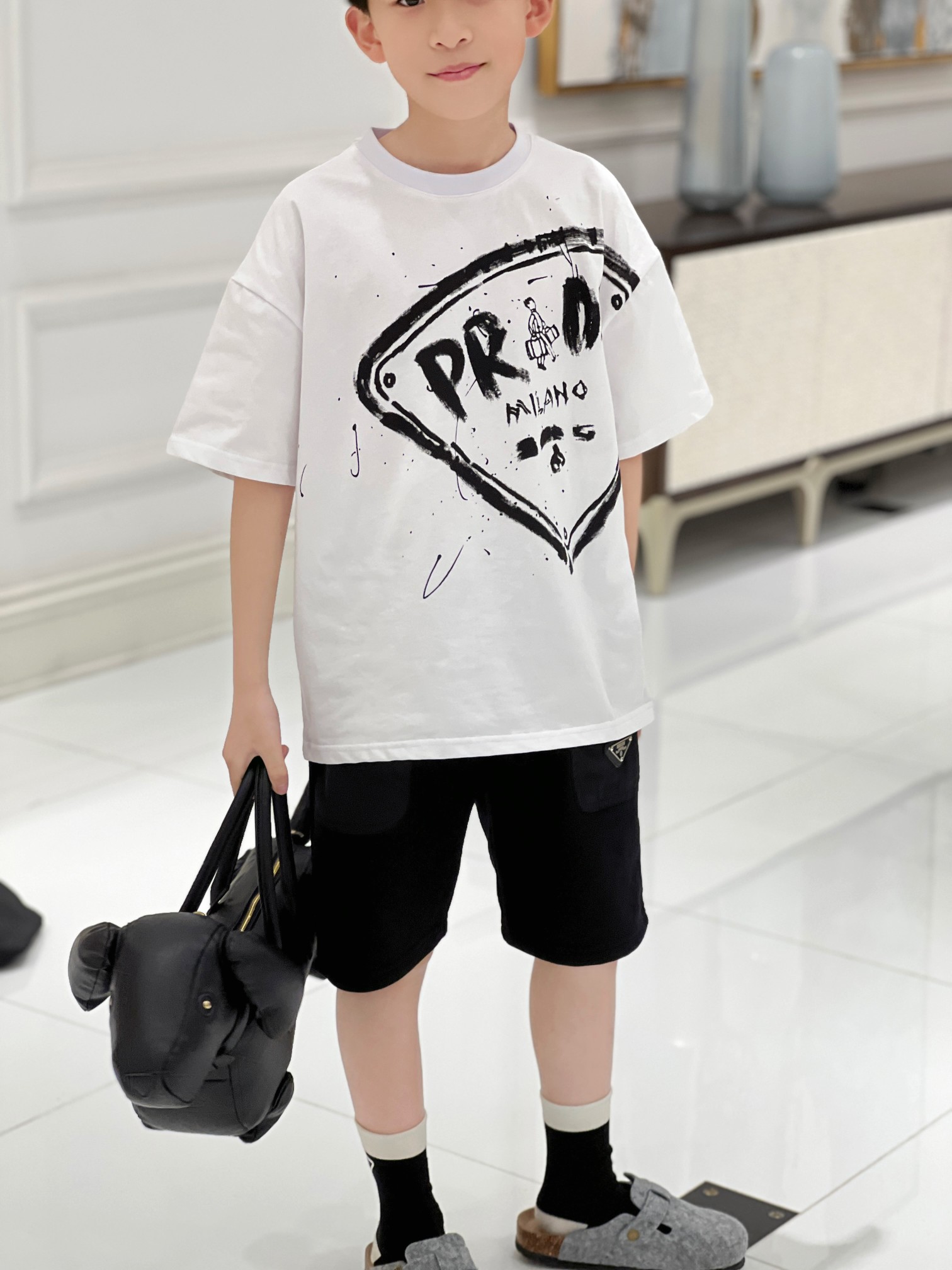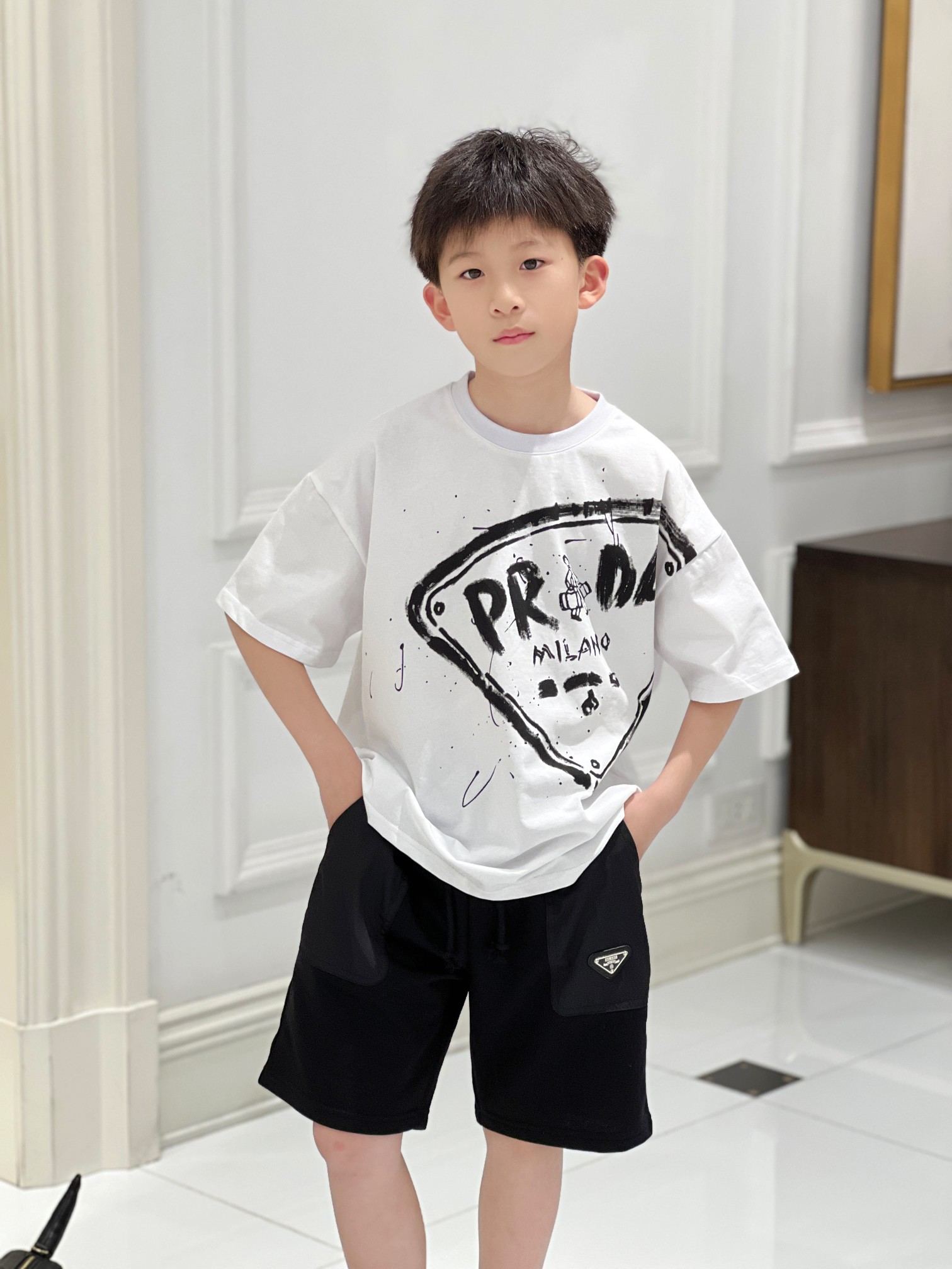 這款children's clothes是AAAAA 1:1 質量(非常棒). 使用了和原版一模一樣的材料. 商標部分也保持了和普拉達/Prada一樣. 圖片拍攝是實物children's clothes拍攝, 您所收到的實物保證和我們圖片一模一樣.