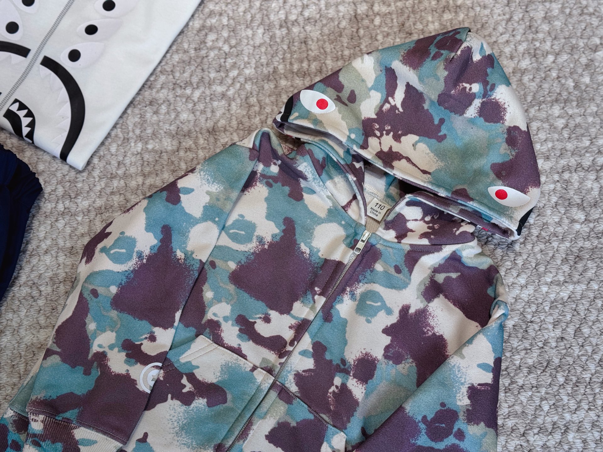 這款children's clothes是AAAAA 1:1 質量(非常棒). 使用了和原版一模一樣的材料. 商標部分也保持了和Bape一樣. 圖片拍攝是實物children's clothes拍攝, 您所收到的實物保證和我們圖片一模一樣.