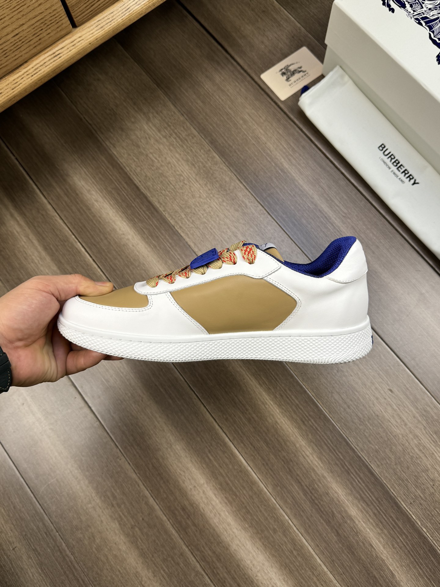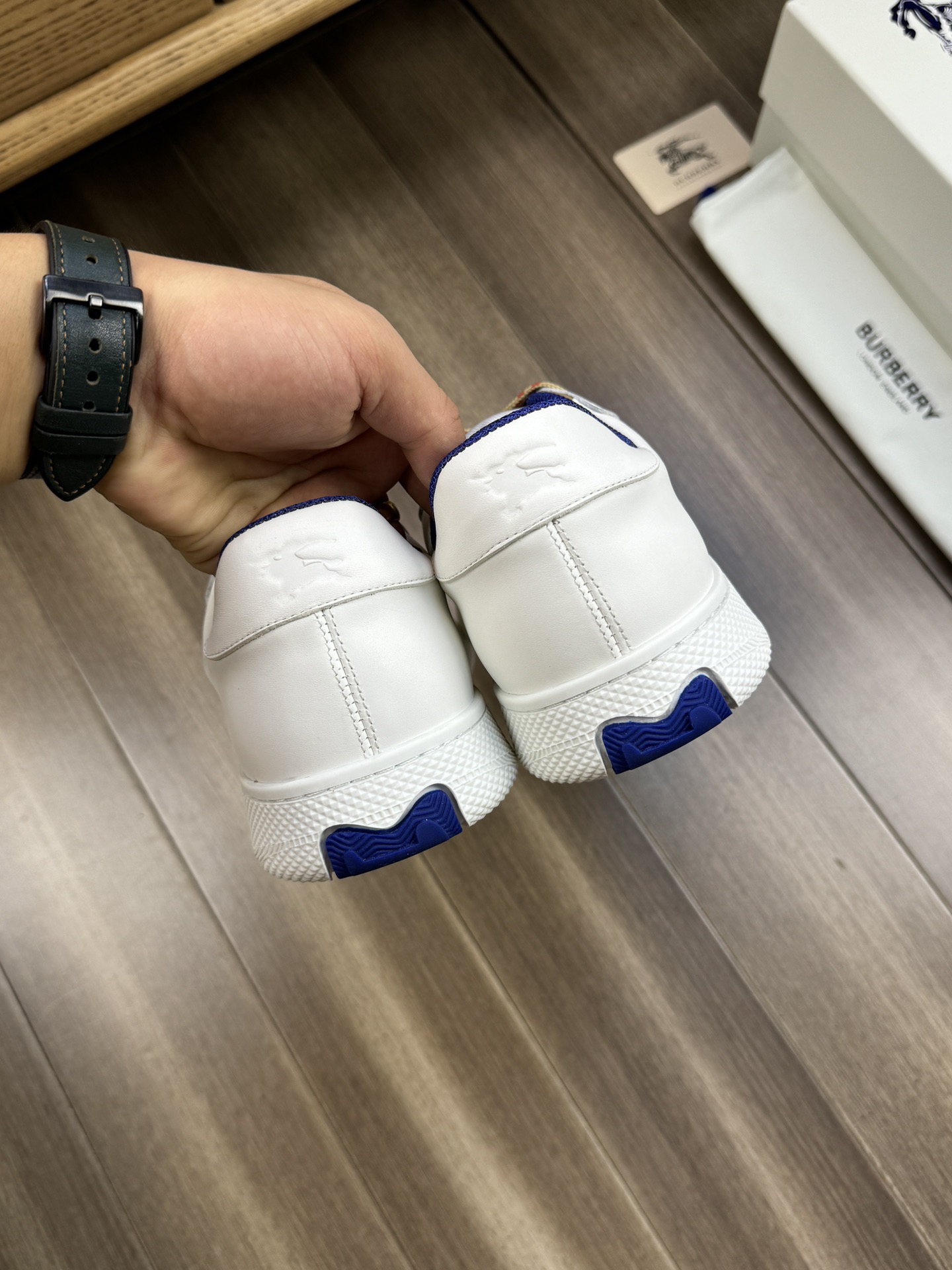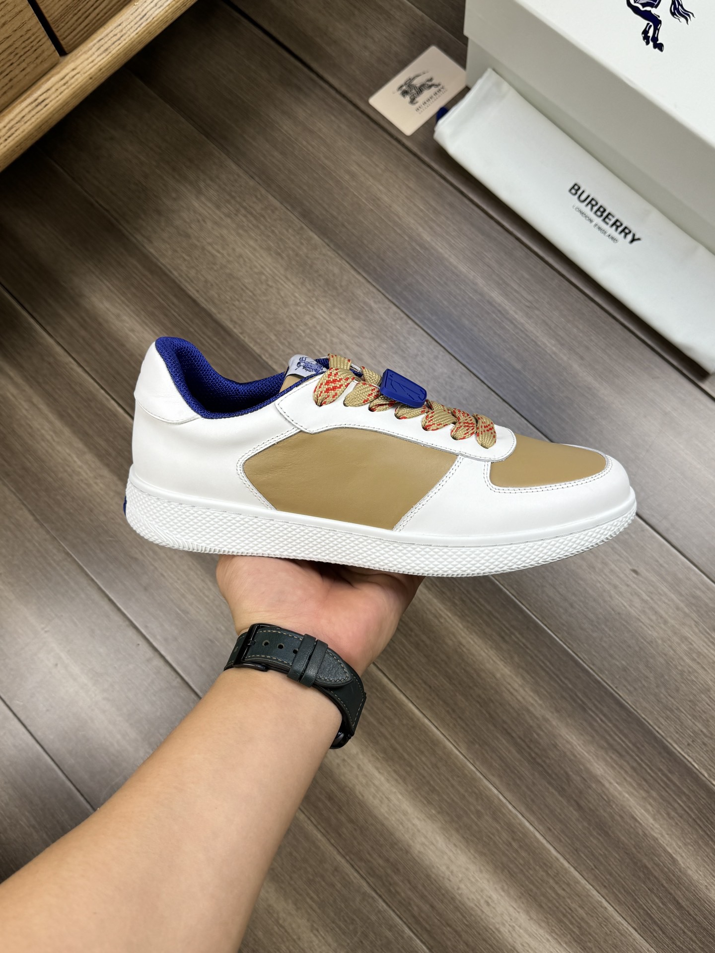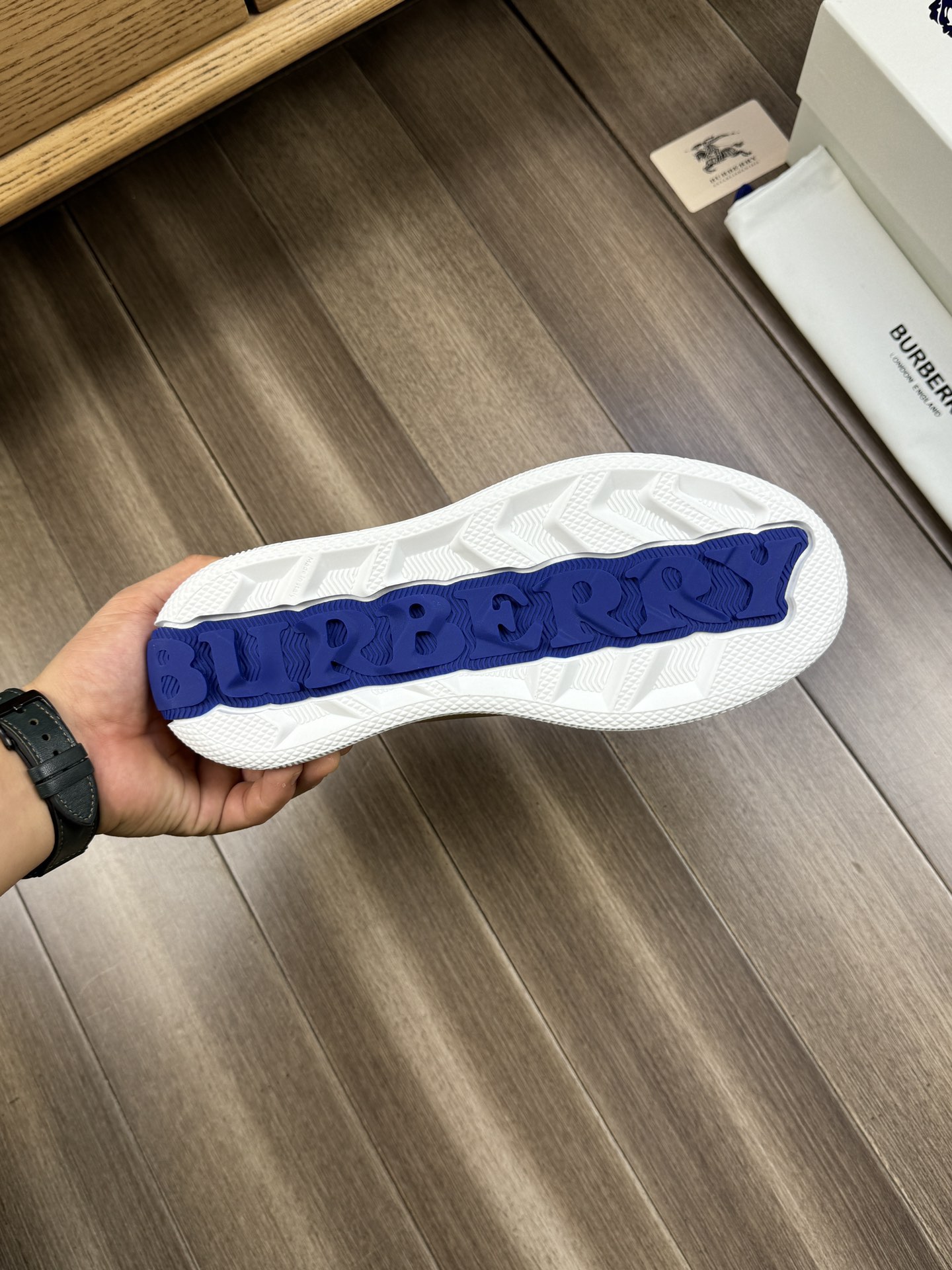這款鞋子是AAAAA 1:1 質量(非常棒). 使用了和原版一模一樣的材料. 商標部分也保持了和巴寶莉/Burberry一樣. 圖片拍攝是實物鞋子拍攝, 您所收到的實物保證和我們圖片一模一樣.