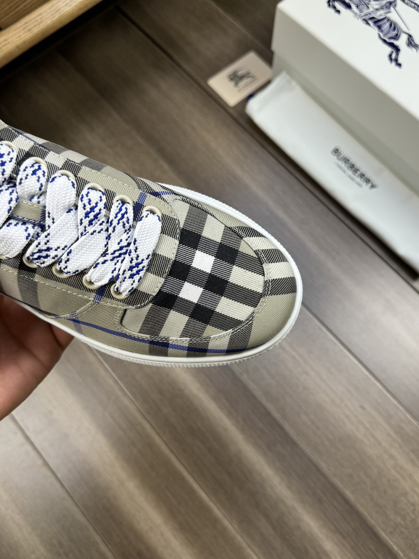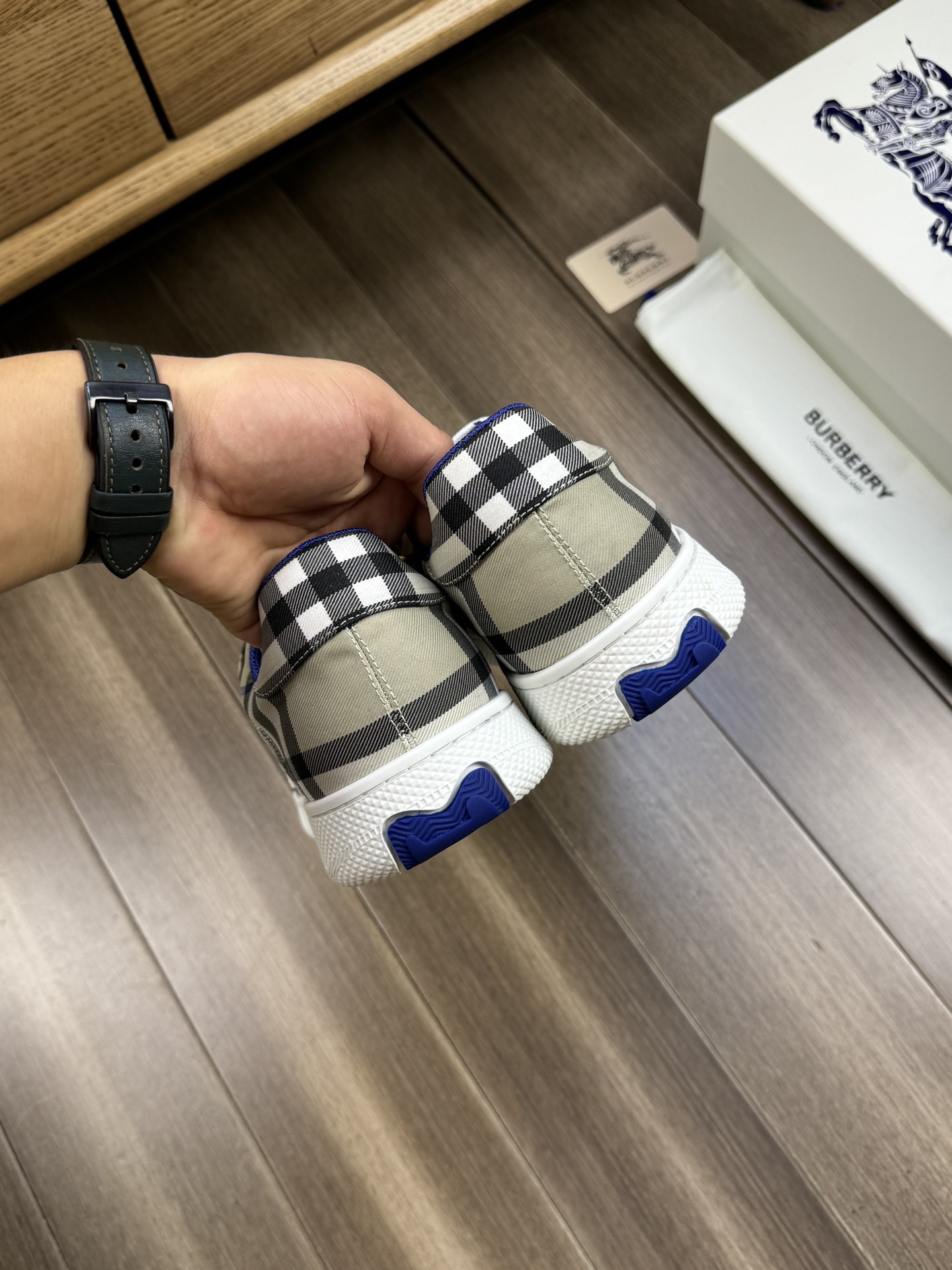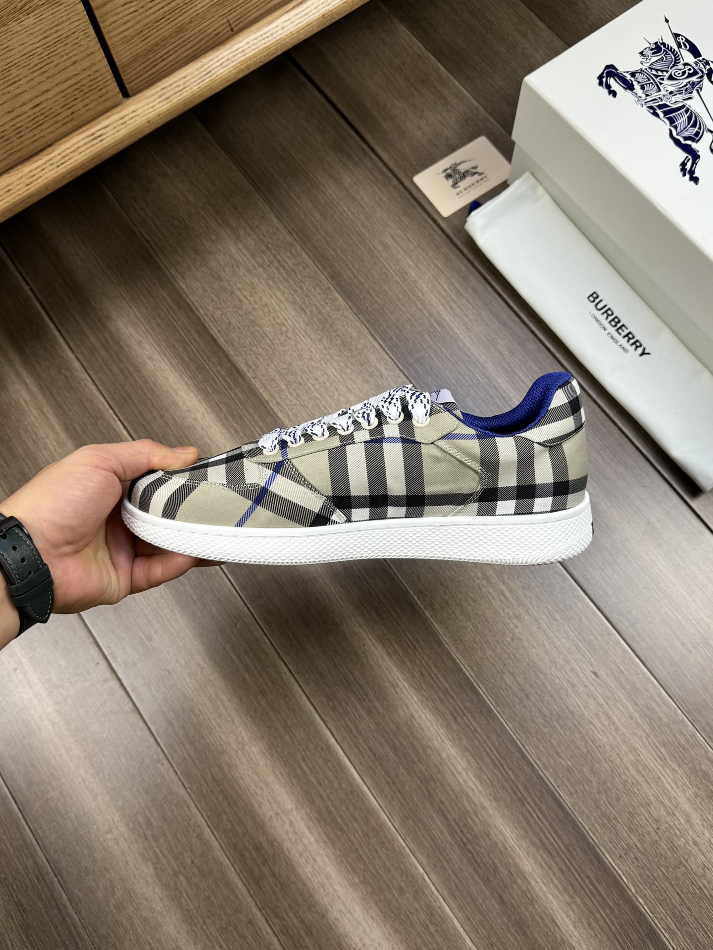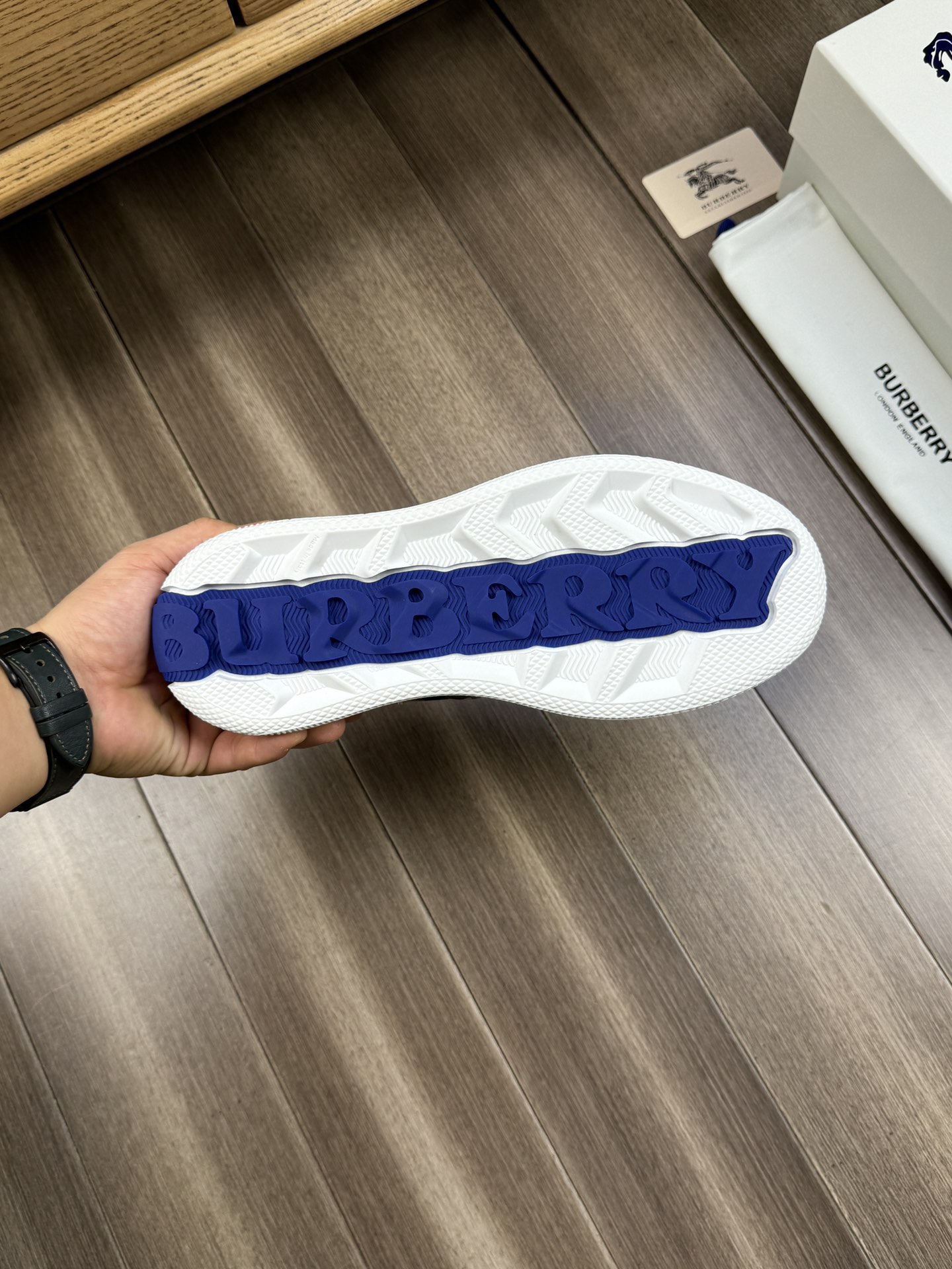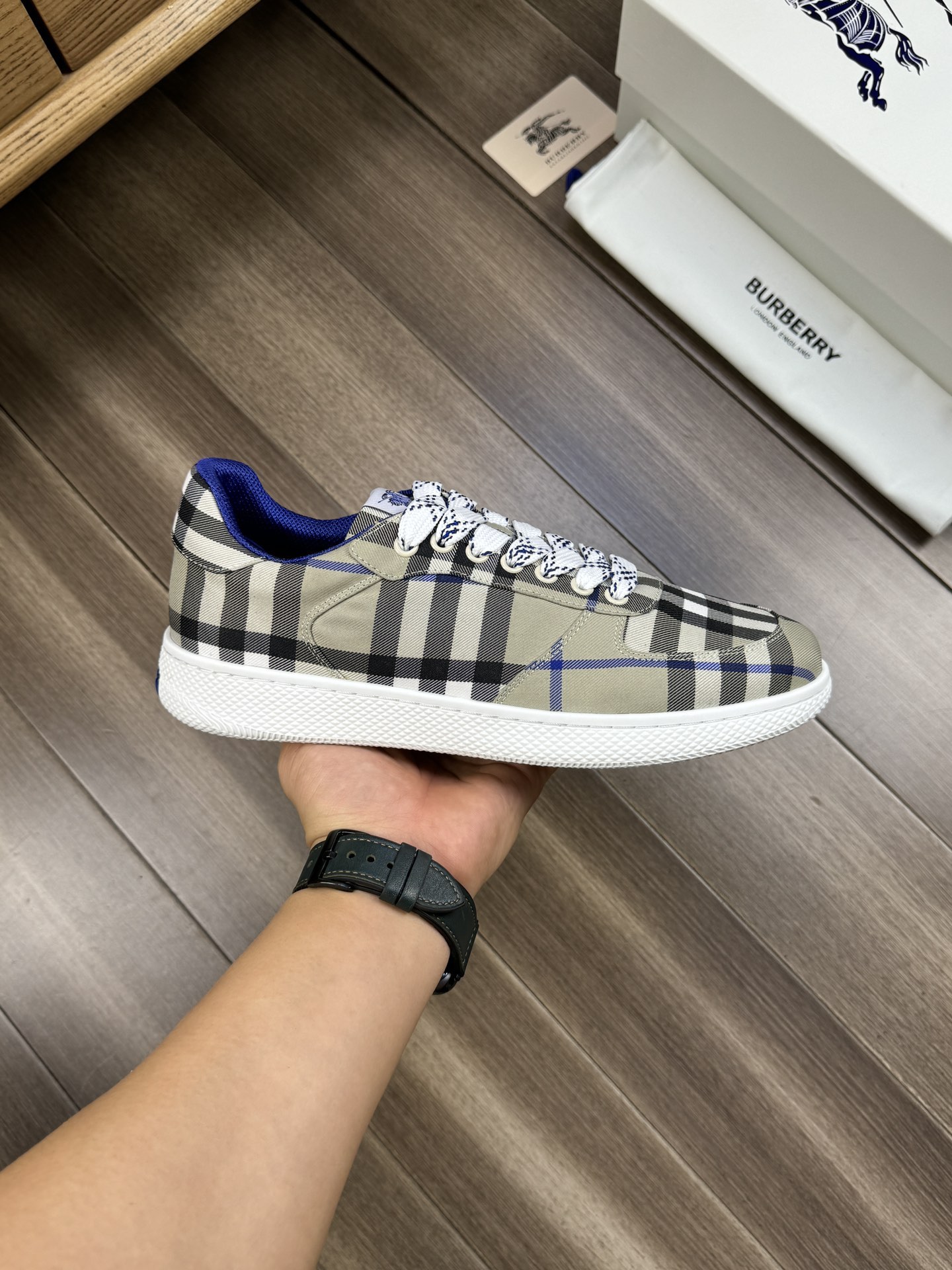 這款鞋子是AAAAA 1:1 質量(非常棒). 使用了和原版一模一樣的材料. 商標部分也保持了和巴寶莉/Burberry一樣. 圖片拍攝是實物鞋子拍攝, 您所收到的實物保證和我們圖片一模一樣.