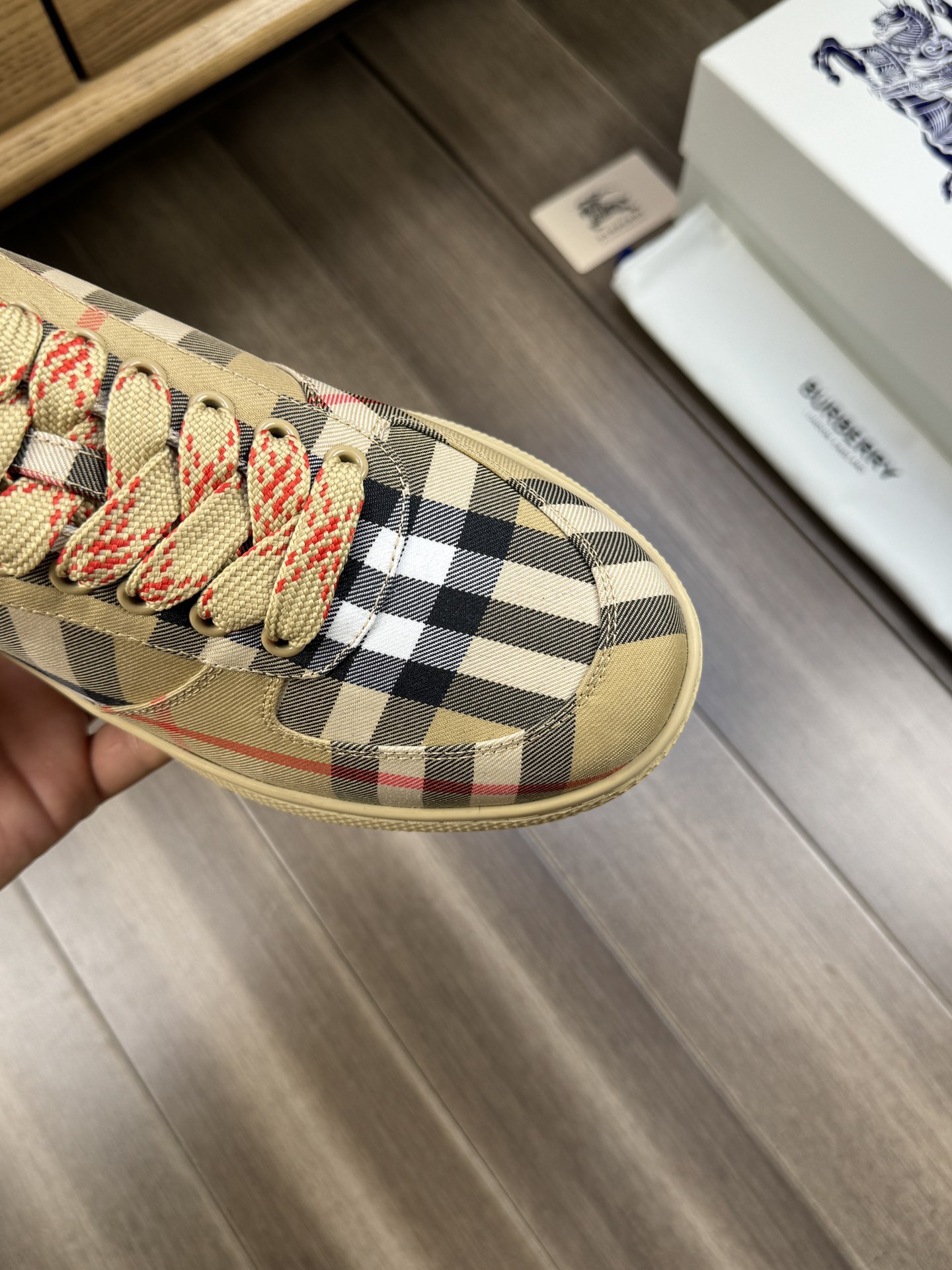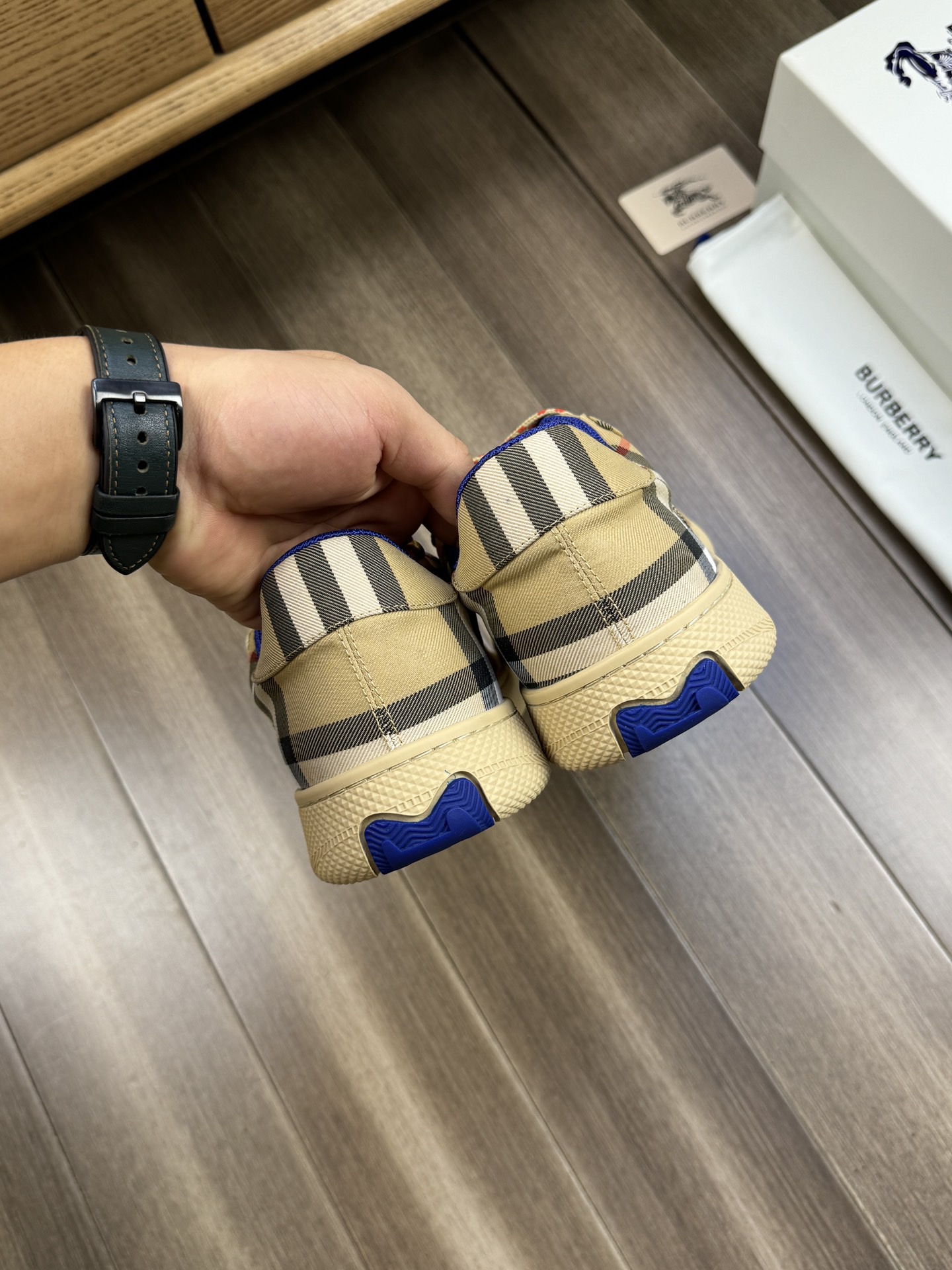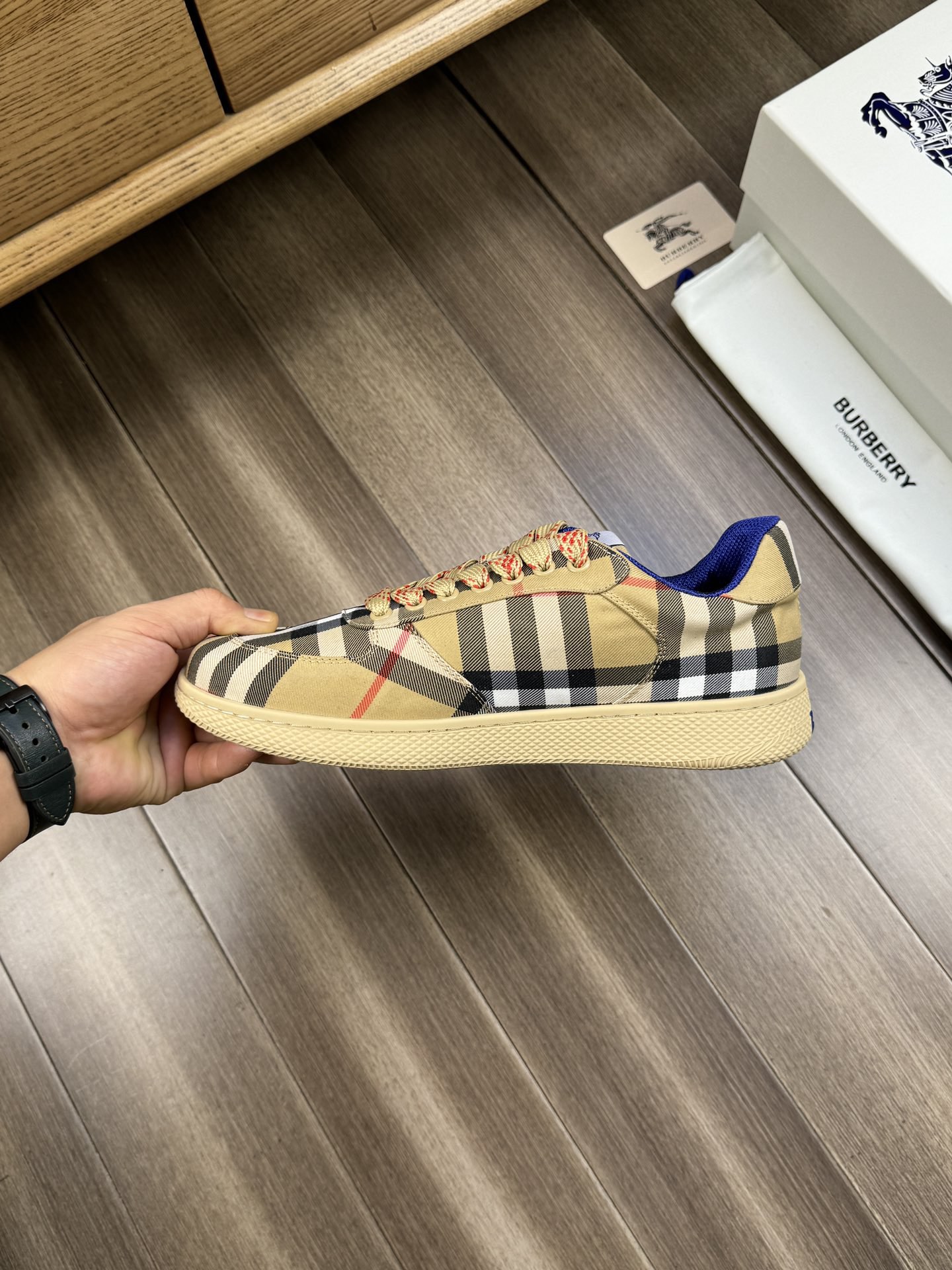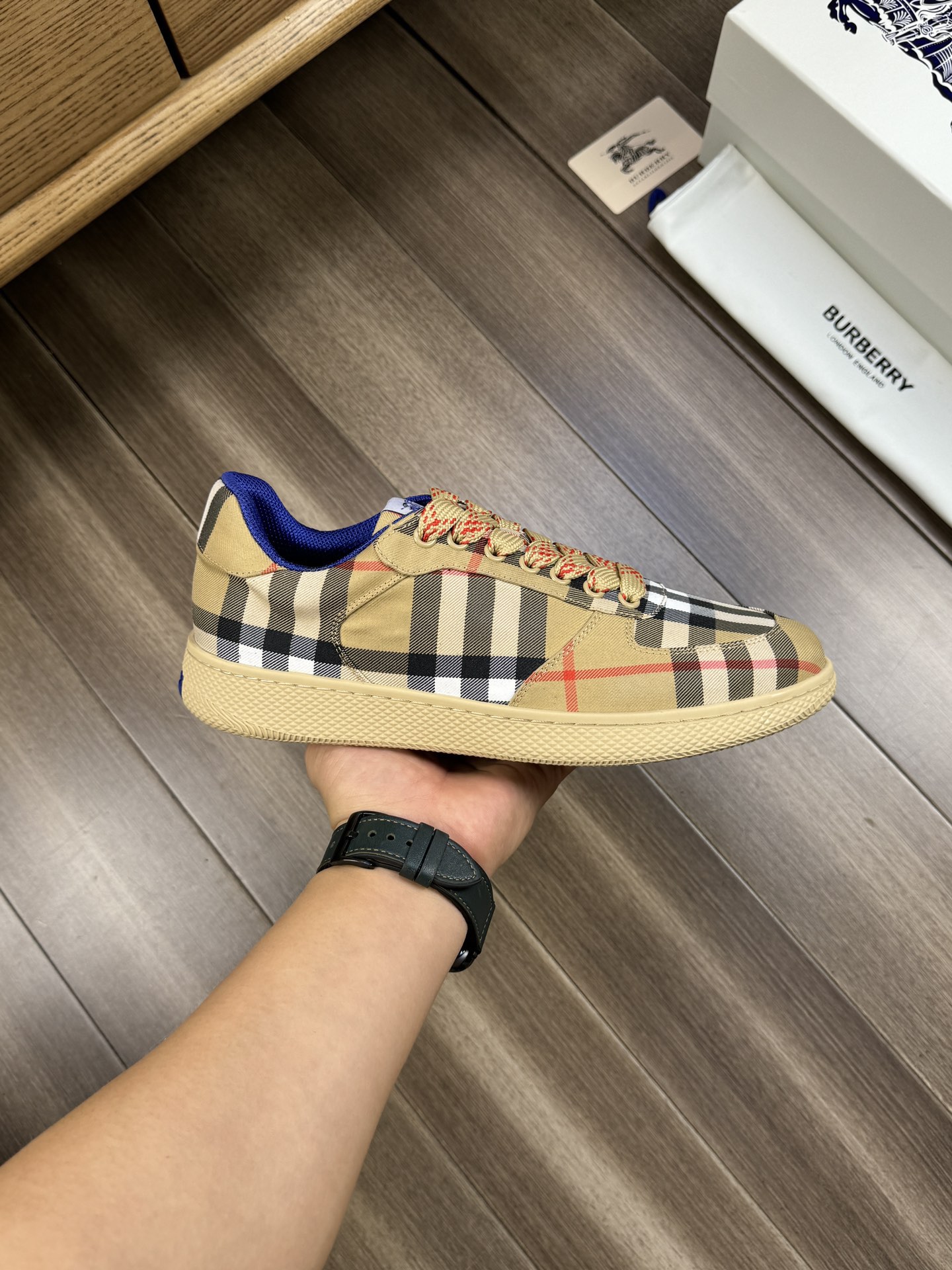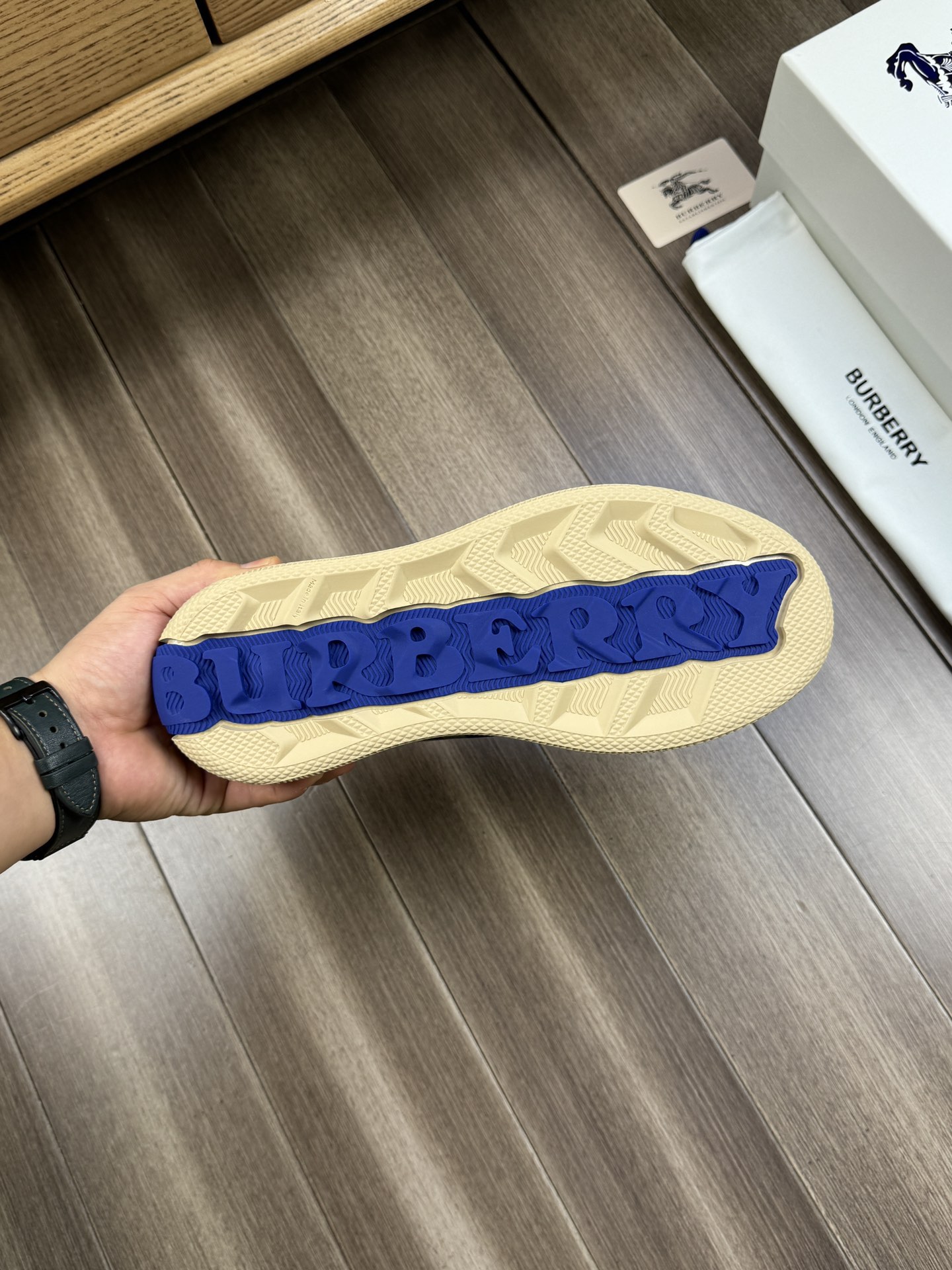 這款鞋子是AAAAA 1:1 質量(非常棒). 使用了和原版一模一樣的材料. 商標部分也保持了和巴寶莉/Burberry一樣. 圖片拍攝是實物鞋子拍攝, 您所收到的實物保證和我們圖片一模一樣.
