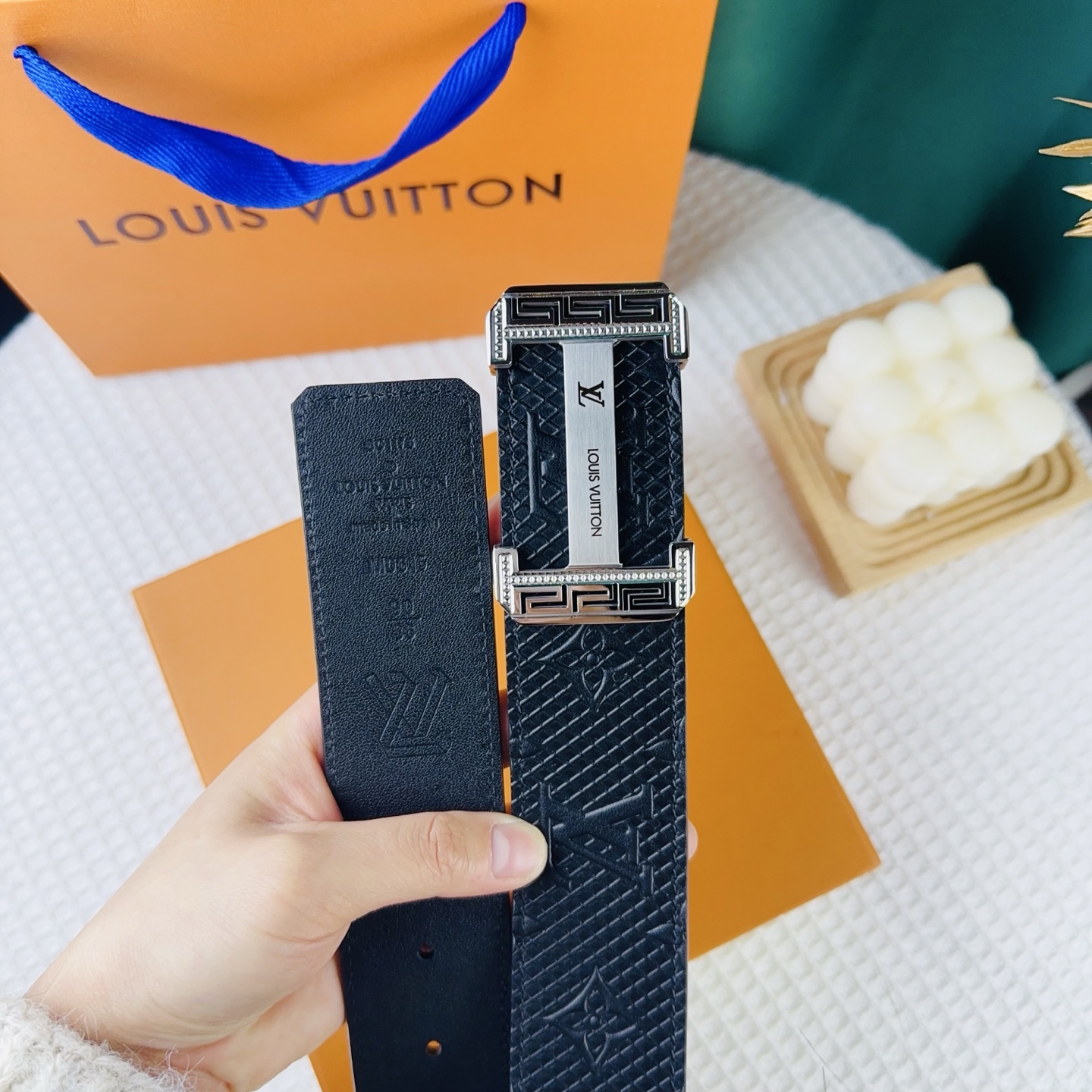 這款皮帶是AAAAA 1:1 質量(非常棒). 使用了和原版一模一樣的材料. 商標部分也保持了和路易威登/Louis Vuitton一樣. 圖片拍攝是實物皮帶拍攝, 您所收到的實物保證和我們圖片一模一樣.