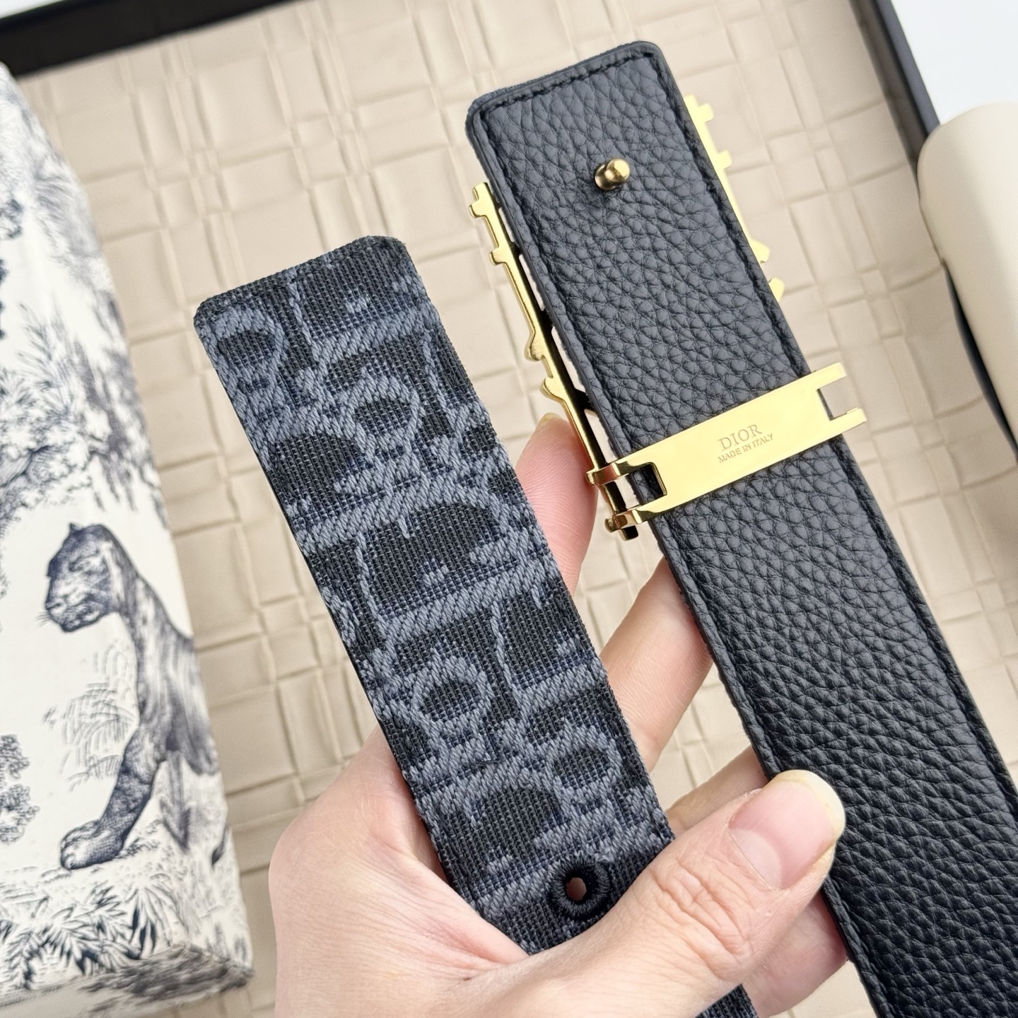 這款皮帶是AAAAA 1:1 質量(非常棒). 使用了和原版一模一樣的材料. 商標部分也保持了和迪奧/Dior一樣. 圖片拍攝是實物皮帶拍攝, 您所收到的實物保證和我們圖片一模一樣.