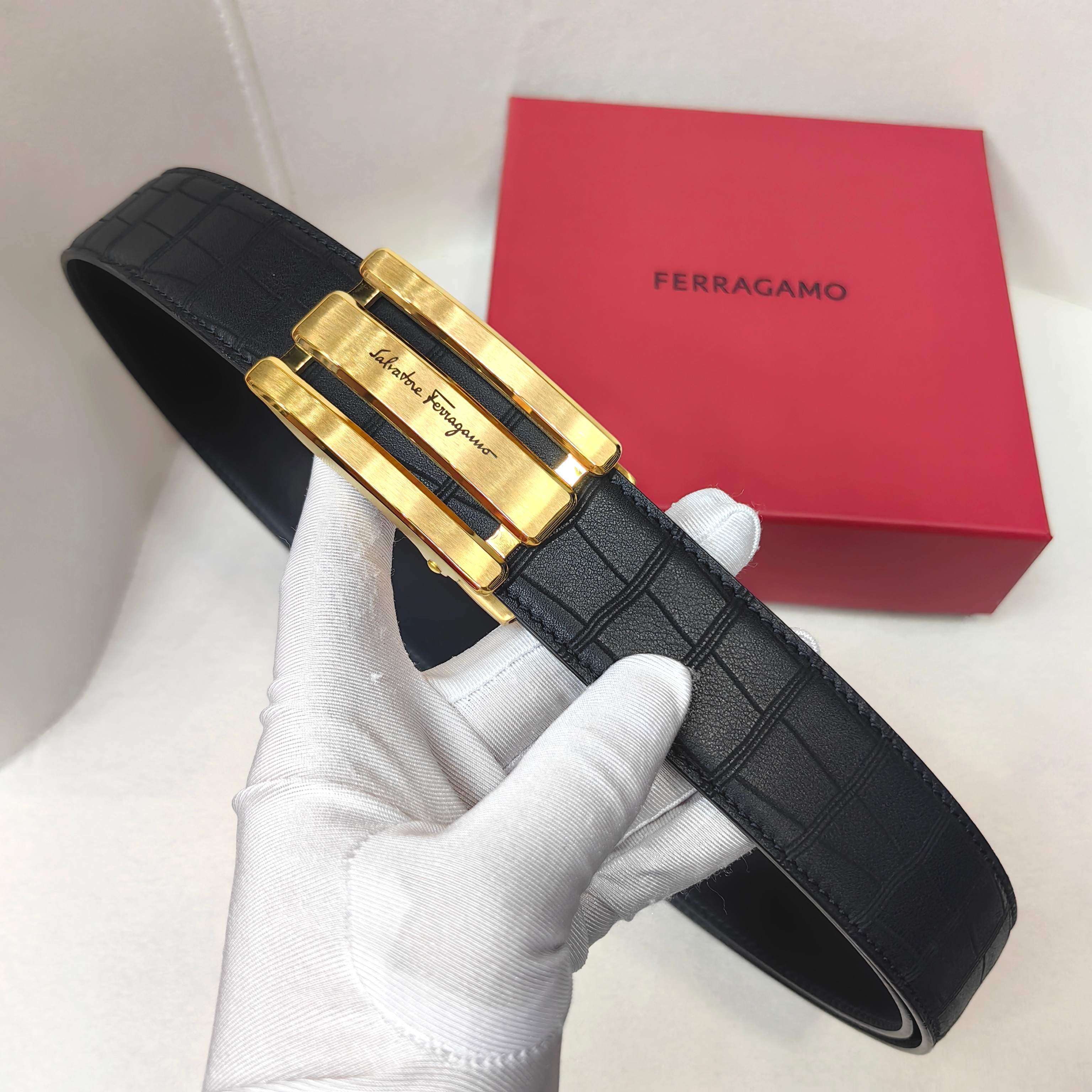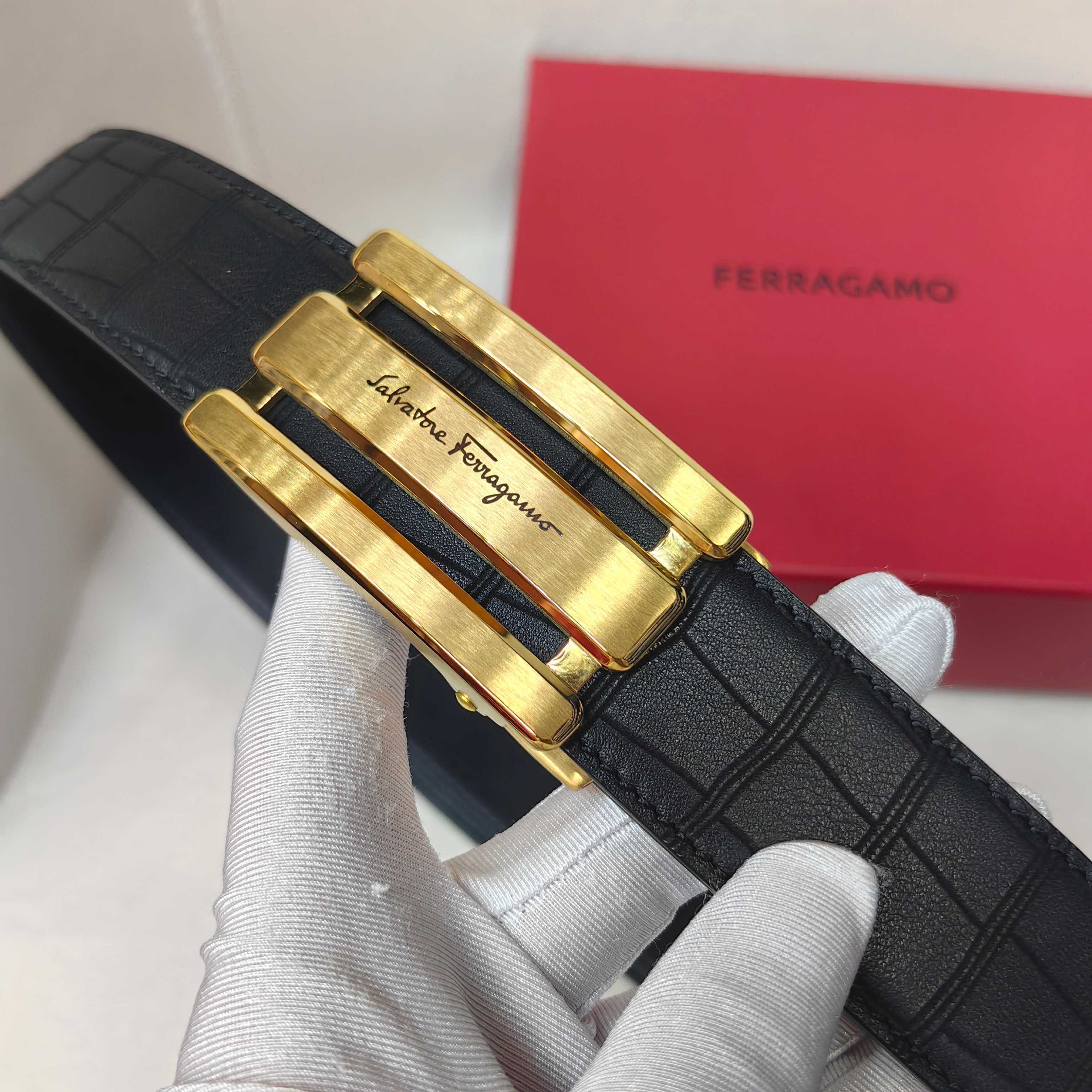 這款皮帶是AAAAA 1:1 質量(非常棒). 使用了和原版一模一樣的材料. 商標部分也保持了和菲拉格慕/Salvatore Ferragamo一樣. 圖片拍攝是實物皮帶拍攝, 您所收到的實物保證和我們圖片一模一樣.