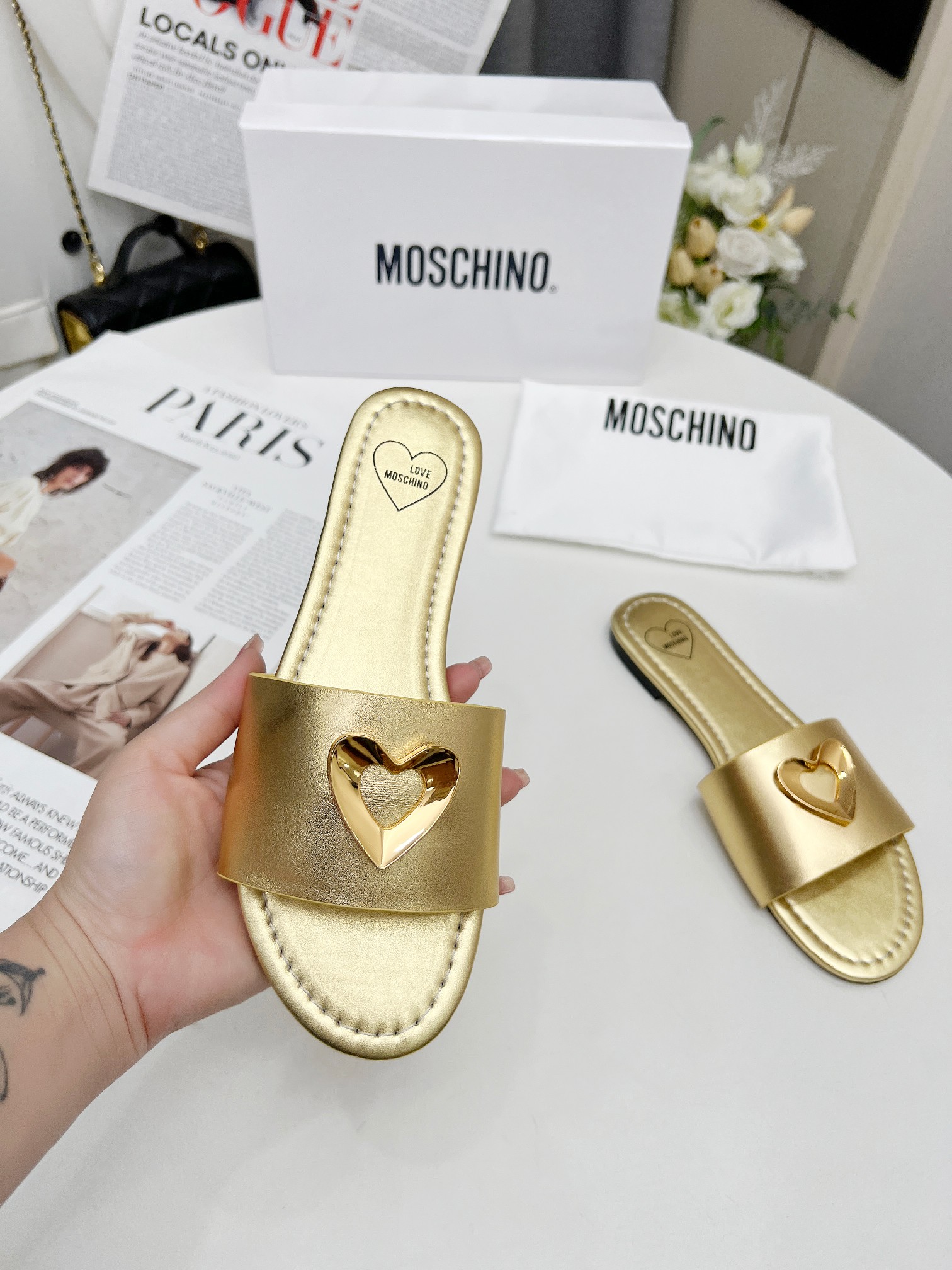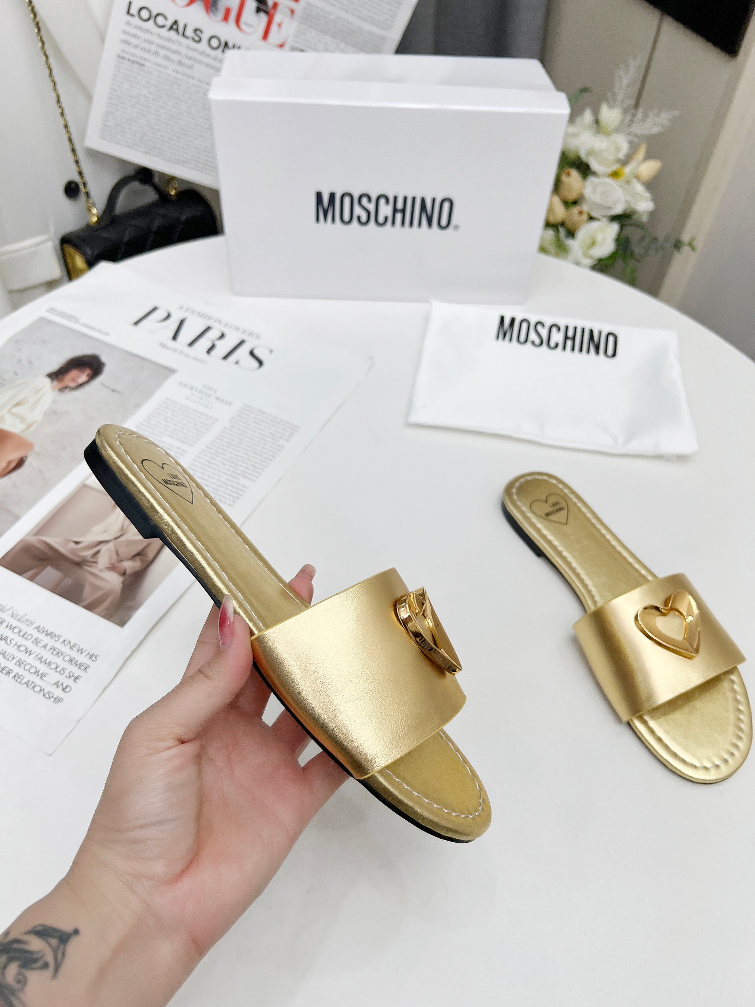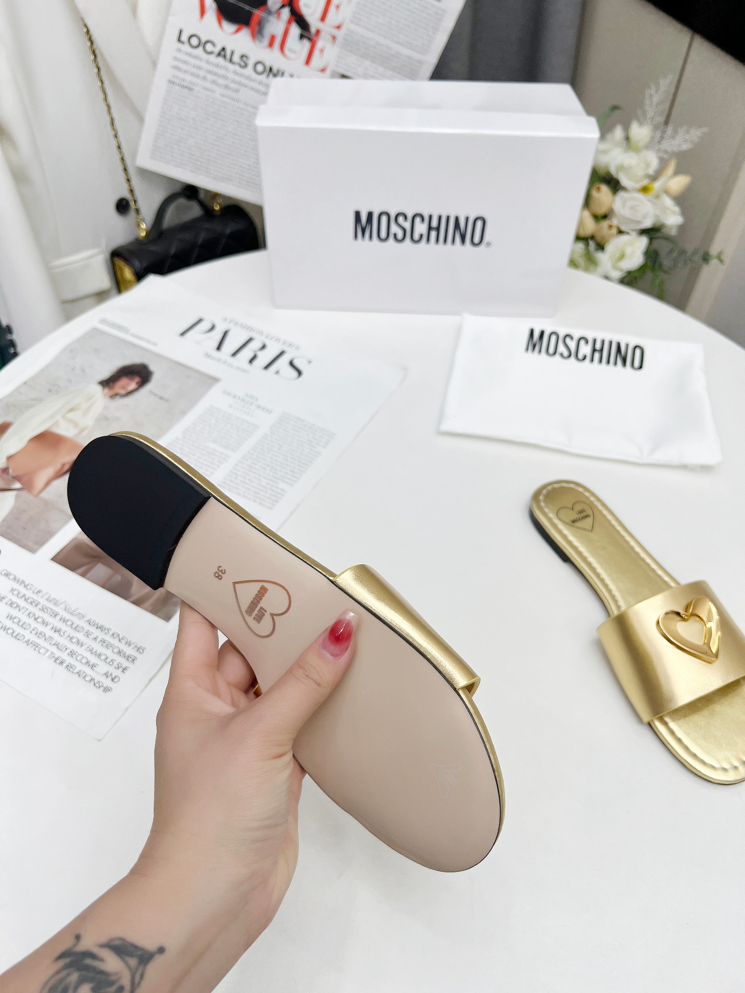 這款鞋子是AAAAA 1:1 質量(非常棒). 使用了和原版一模一樣的材料. 商標部分也保持了和莫斯基諾/Moschino一樣. 圖片拍攝是實物鞋子拍攝, 您所收到的實物保證和我們圖片一模一樣.