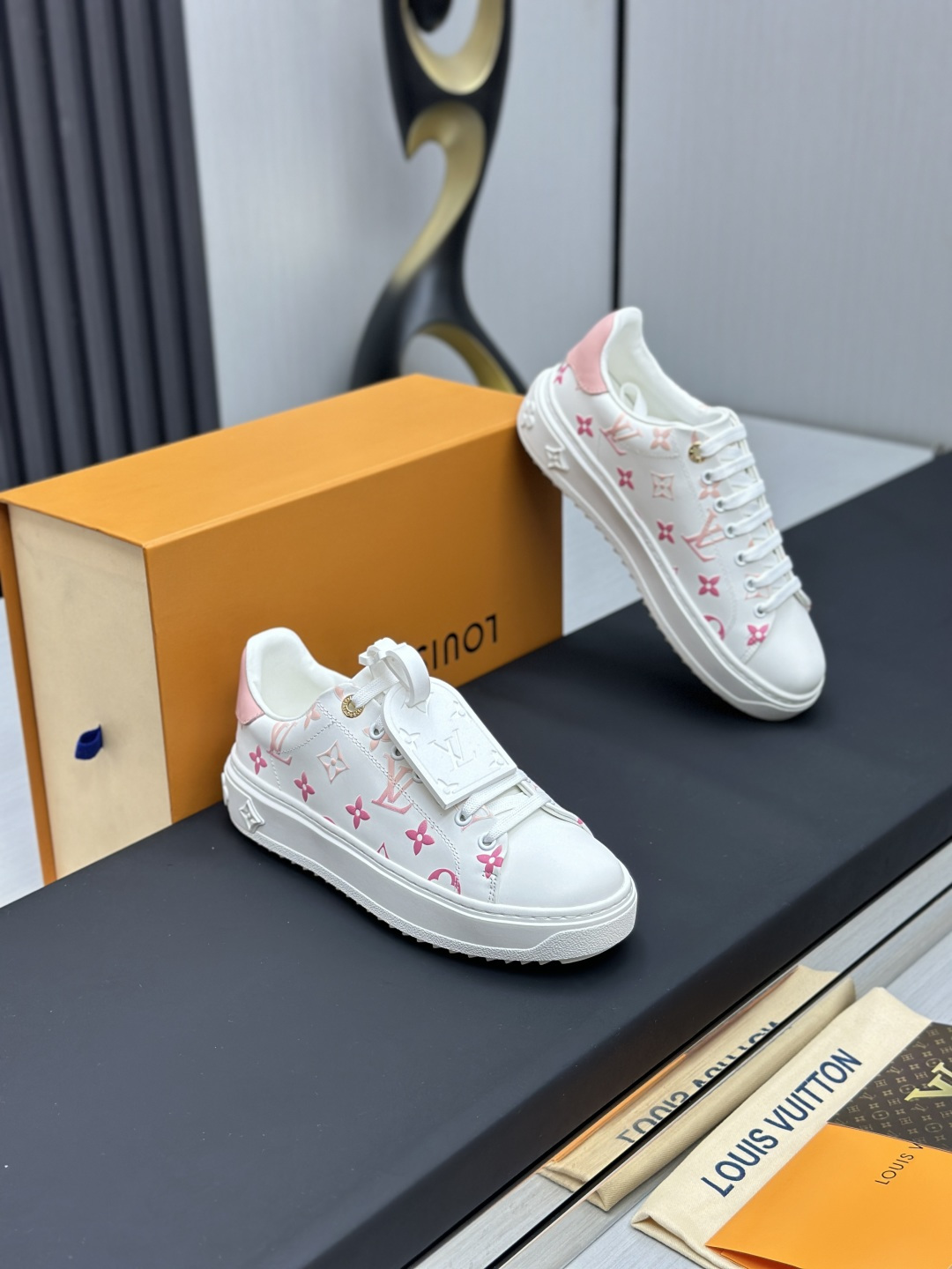 這款鞋子是AAAAA 1:1 質量(非常棒). 使用了和原版一模一樣的材料. 商標部分也保持了和路易威登/Louis Vuitton一樣. 圖片拍攝是實物鞋子拍攝, 您所收到的實物保證和我們圖片一模一樣.